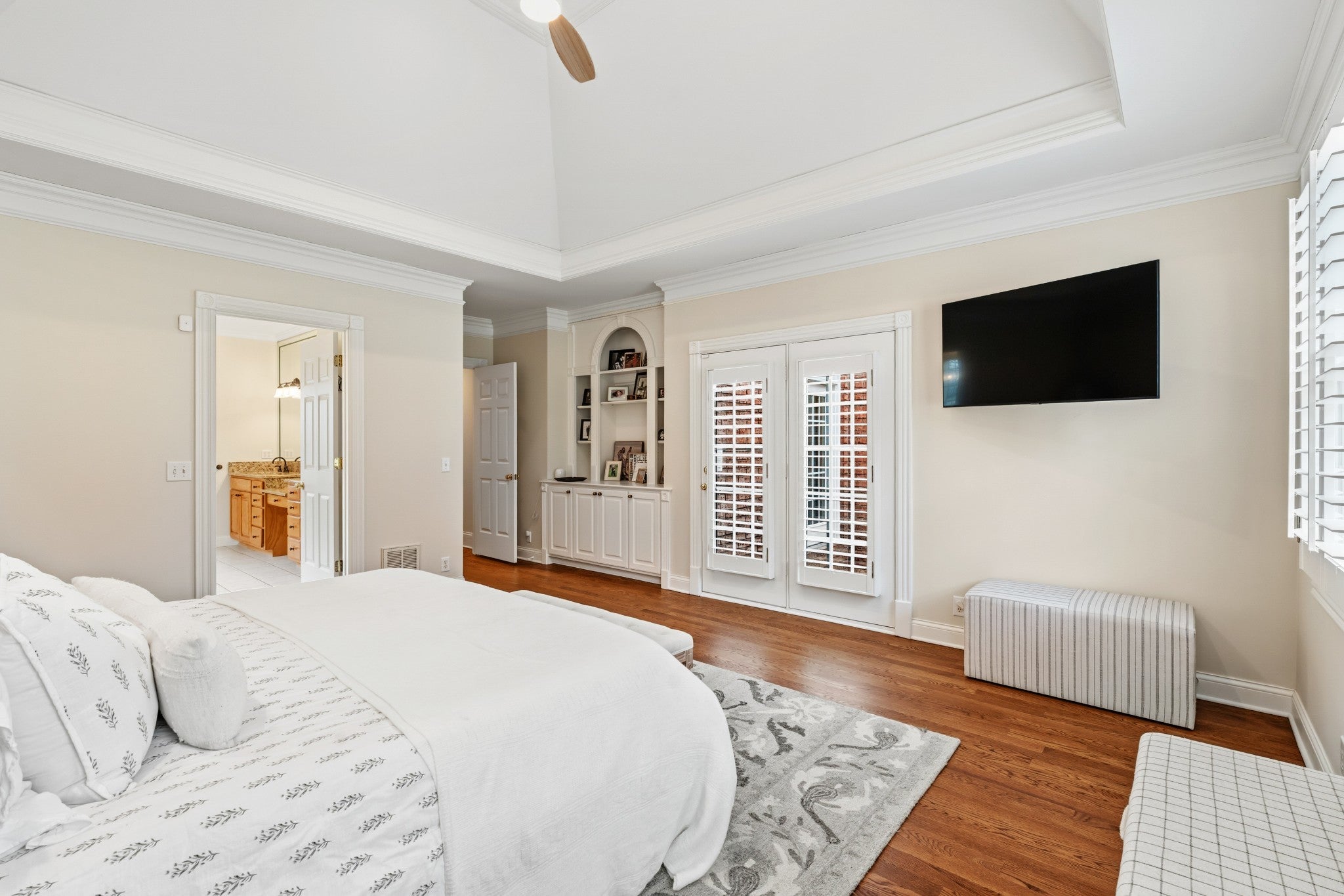 Welcome to 116 Gardengate Dr, located in the highly desired Gardens at Old Natchez subdivision in Franklin, Tennessee! Recently refreshed and meticulously maintained, this stunning 2 story, all-brick home shines inside and out with new front doors, fresh paint throughout, beautifully refinished hardwoods, and brand-new carpet — completely move-in ready. Step inside the gracious two-story foyer and feel the openness unfold. Hardwood floors guide you into the heart of the home — a granite center-island kitchen that seamlessly opens to a sun-drenched two-story den with fireplace, creating the perfect everyday living and entertaining space. The coffered ceiling in the dining room adds architectural character and elevated charm. The main-level owner’s suite offers a true retreat with a trey ceiling, large walk-in closet, and spa-style bath featuring a separate shower and Jacuzzi tub. With three separate living areas, a spacious upstairs bonus room, and two staircases, this home was designed for both connection and flexibility. A dedicated office with skylights fills the space with natural light, while the separate laundry room adds everyday convenience. The three-car garage offers only two steps into the home for easy access. Thoughtful upgrades continue with central vacuum, security cameras, and abundant storage throughout, including a walk-in attic with future expansion potential. Out back, enjoy effortless entertaining around the firepit or host gatherings on the patio complete with a natural gas hookup for your grill. All of this sits in an ultra-convenient location within the neighborhood — steps away from the clubhouse and pool/ amenities, yet perfectly positioned for comfort and privacy. This is the one that checks the boxes — and then builds a few more.