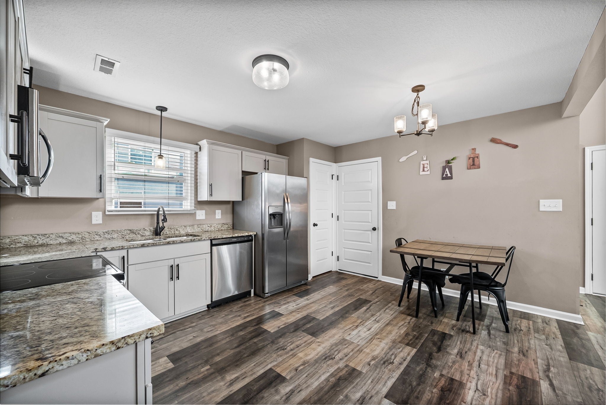 - Electric Oven, Electric Range, Dishwasher, Disposal, Microwave, Refrigerator, Stainless Steel Appliance(s)