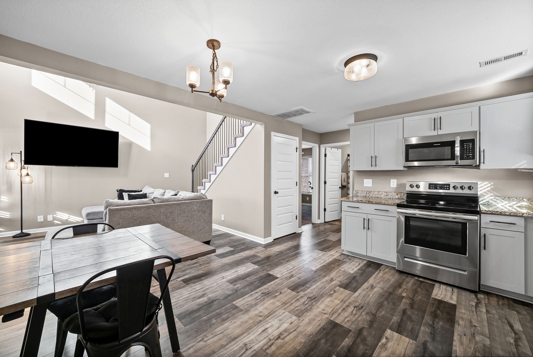 Seller offering buyer concessions! Welcome to this well maintained 3 bedroom, 2.5 bathroom home built in 2020 located in the Old Mill Station community. The main level features an open living room and kitchen layout with granite countertops, plenty of cabinet space, and great flow for everyday living and entertaining. One bedroom is conveniently located on the main level, offering flexibility for guests or a home office. Upstairs you will find two additional bedrooms and a full bathroom. This home also includes a one car garage and modern finishes throughout. Enjoy the afternoons and evenings on the back deck. Conveniently located near Fort Campbell, shopping, dining, and everyday amenities. Move in ready and a great opportunity for homeowners or investors.