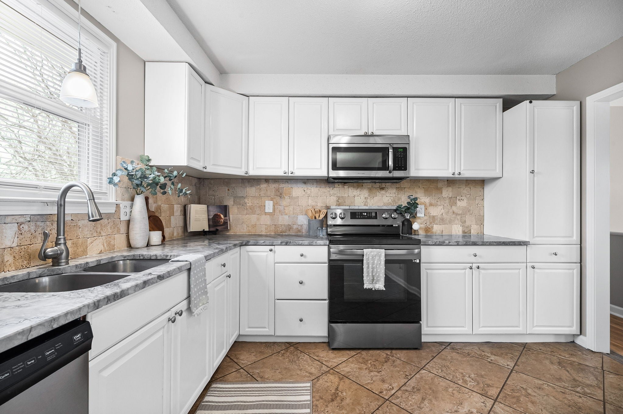 - Electric Oven, Cooktop, Dishwasher, Microwave, Refrigerator