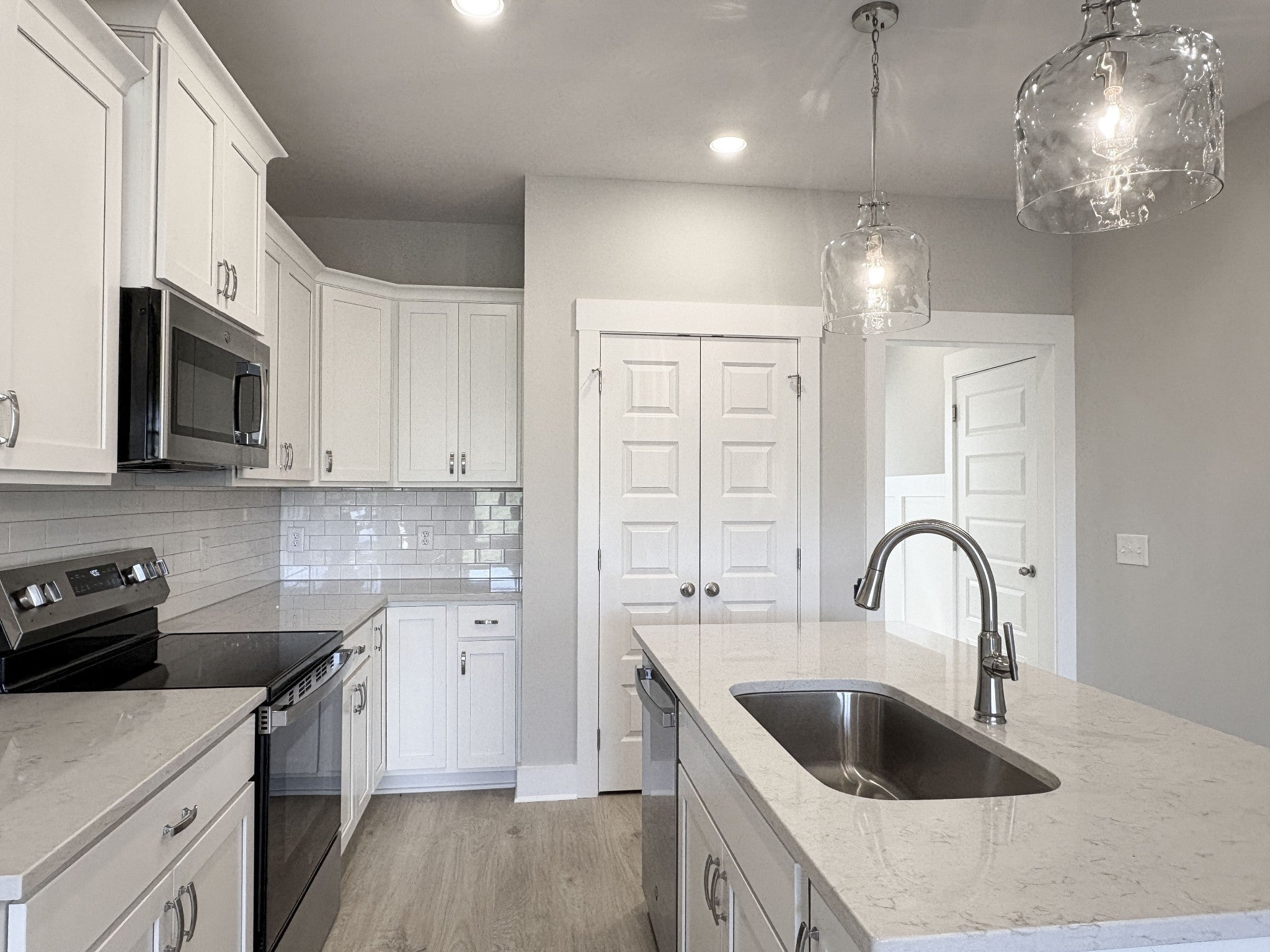 - Electric Range, Dishwasher, Disposal, Microwave