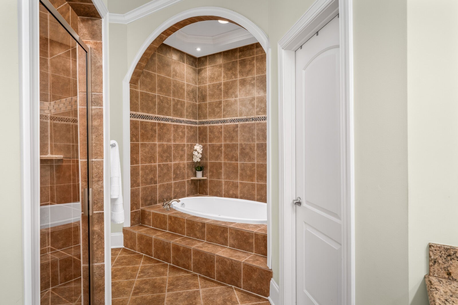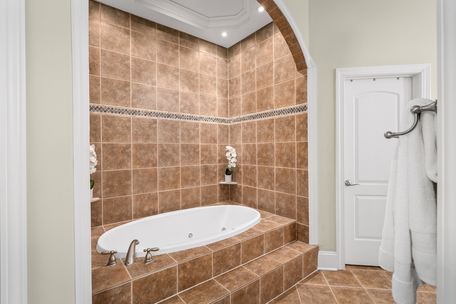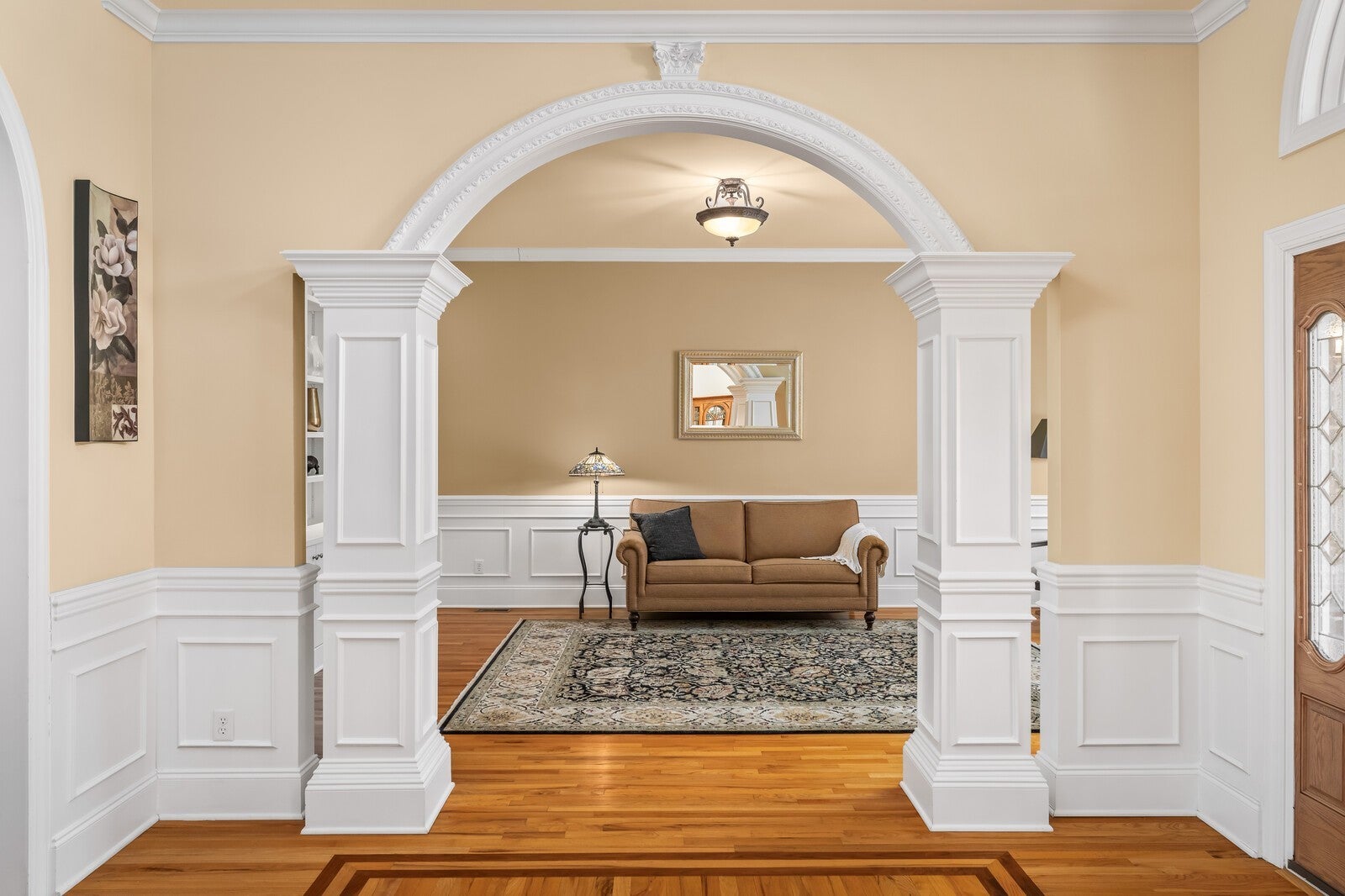 Cleveland Hall offers a lifestyle rooted in Middle Tennessee history and surrounded by premier recreation. This exclusive neighborhood overlooks Hermitage Golf Course, Tennessee’s top-rated public course known for its unique "General’s Retreat" and the free-range sheep that roam the fairways. For an even more elevated experience, the nearby Old Hickory Country Club and Old Hickory Lake provide private golf, social memberships, and easy access to boating and water sports. This 1.25-story brick residence presents a three-gable Craftsman silhouette with a circular drive and side-entry three-car garage, complete with EV charging and a dedicated RV pad with 220V power. The interior begins with a grand foyer flanked by a den with built-in bookshelves and a formal dining room with 20-foot ceilings. The main level centers on a living room with a fireplace, deep tray ceilings, and plantation shutters that open to the back porch. The kitchen features an island cooktop, maple cabinetry, and a second full-sized dining room surrounded by backyard views. The primary suite offers tray ceilings and a bathroom with a whirlpool tub inset into a tiled archway, a separate tiled, walk-in multi-head shower, and independent vanities and closets. A separate guest or in-law suite with a full bath is located on the opposite side of the home. The upper levels provide flexible space without the footprint of a full second story. A large, vaulted bonus room includes a built-in entertainment center, while a separate wing houses two additional bedrooms, a full bath, and a private flex room. Practical additions include hardwood oak floors, an intercom system, central vac, and a laundry room with a wash tub. The backyard featuring a recessed porch leading to an extended patio sits below a wooded hillside. As seen in the photos, the low-traffic short-line rail offshoot is tucked behind a thicket at roof level, remaining out of sight and inaccessible from the lawn. Tour today!