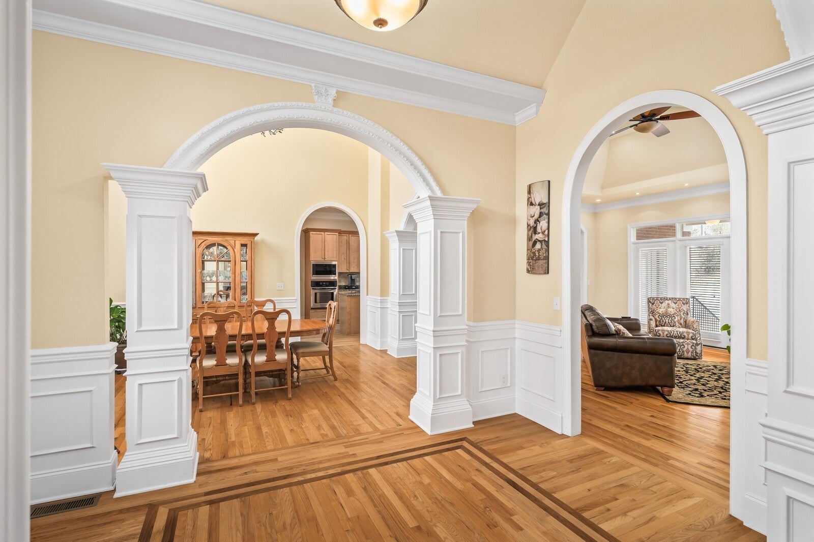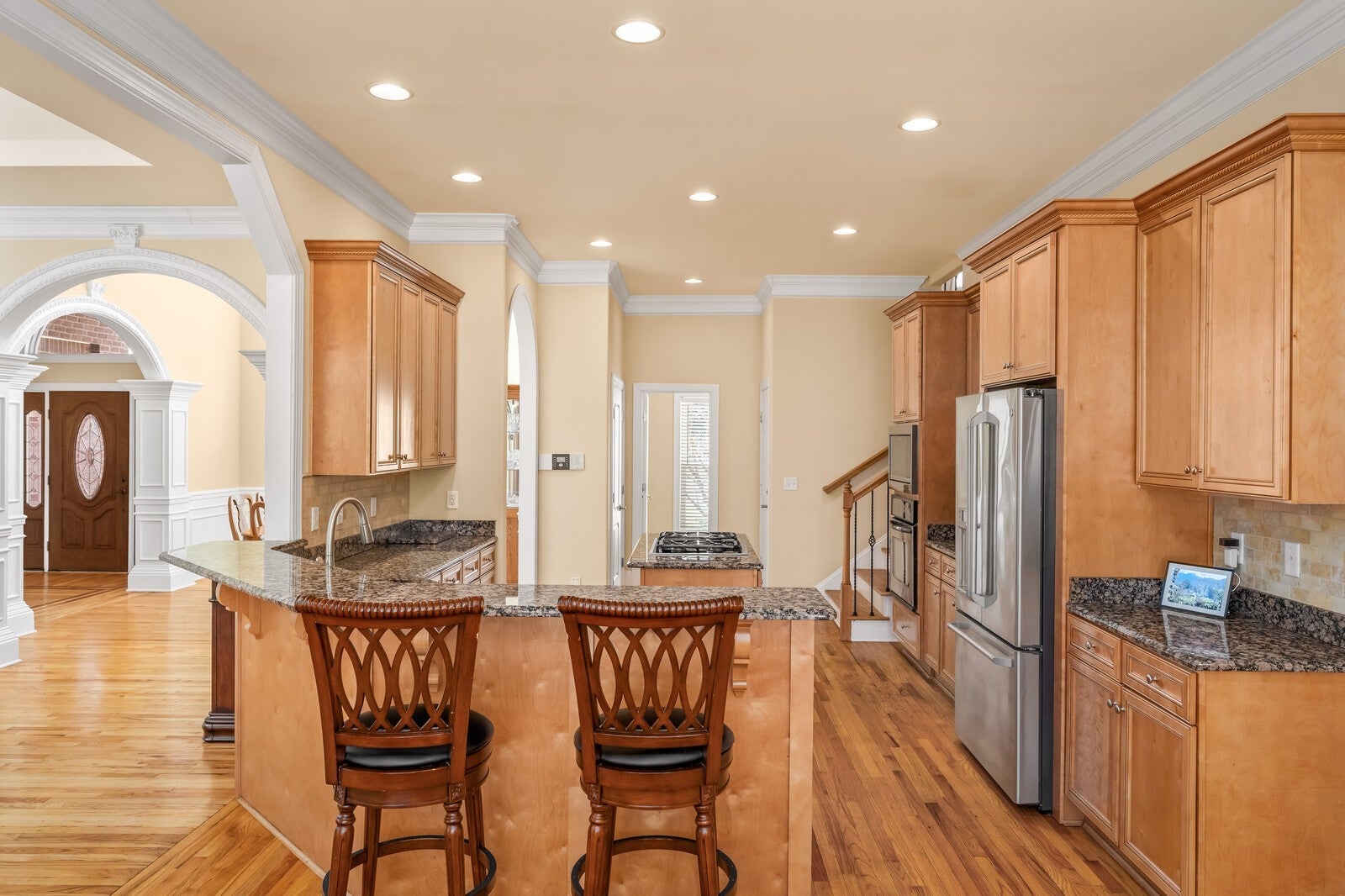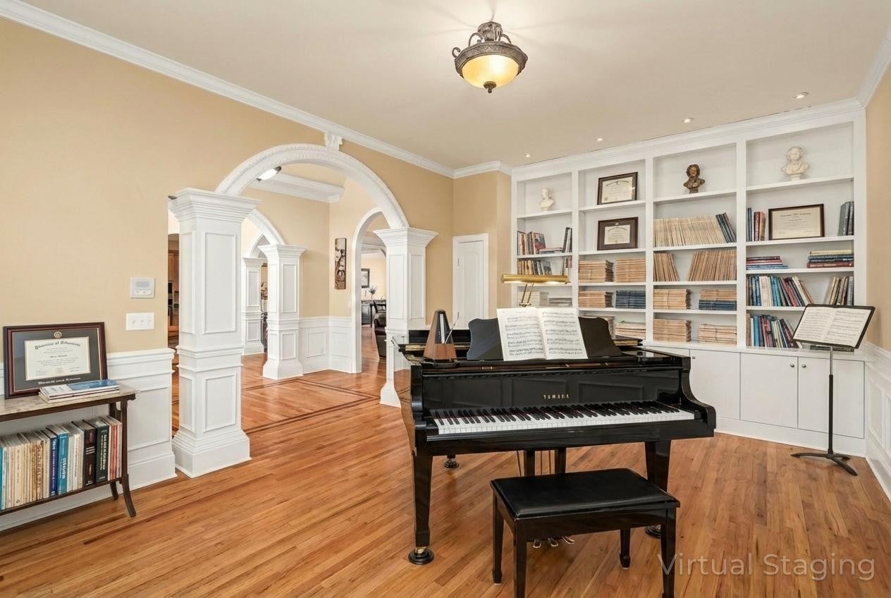 - Bookcases, Built-in Features, Ceiling Fan(s), Central Vacuum, Entrance Foyer, Extra Closets, High Ceilings, In-Law Floorplan, Walk-In Closet(s), Kitchen Island