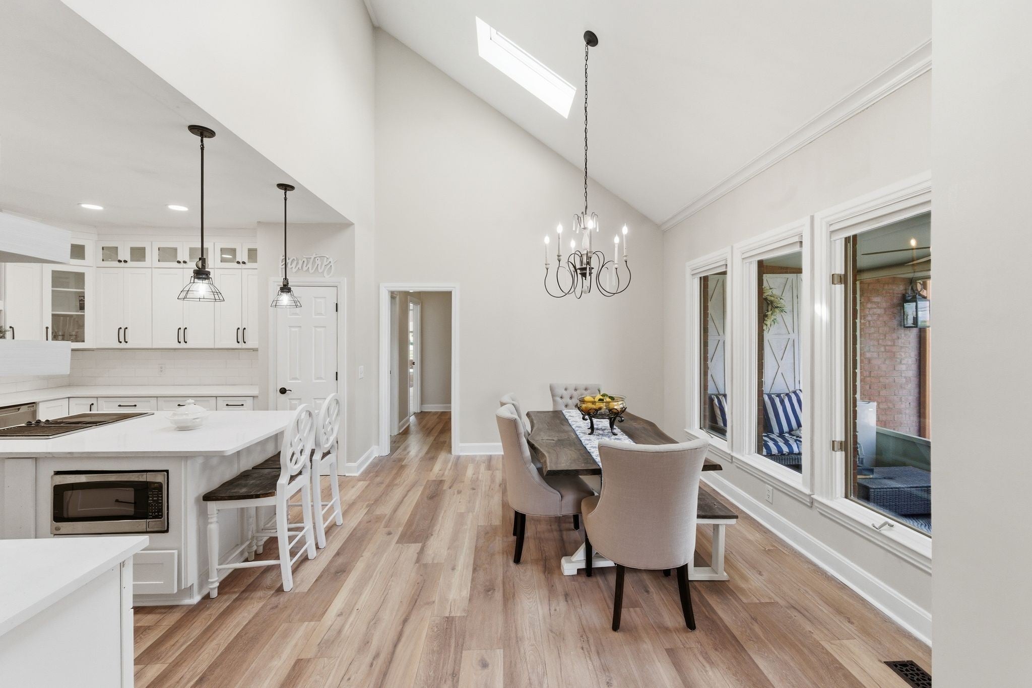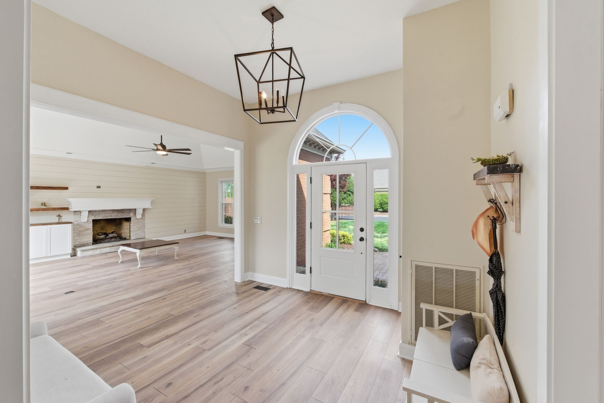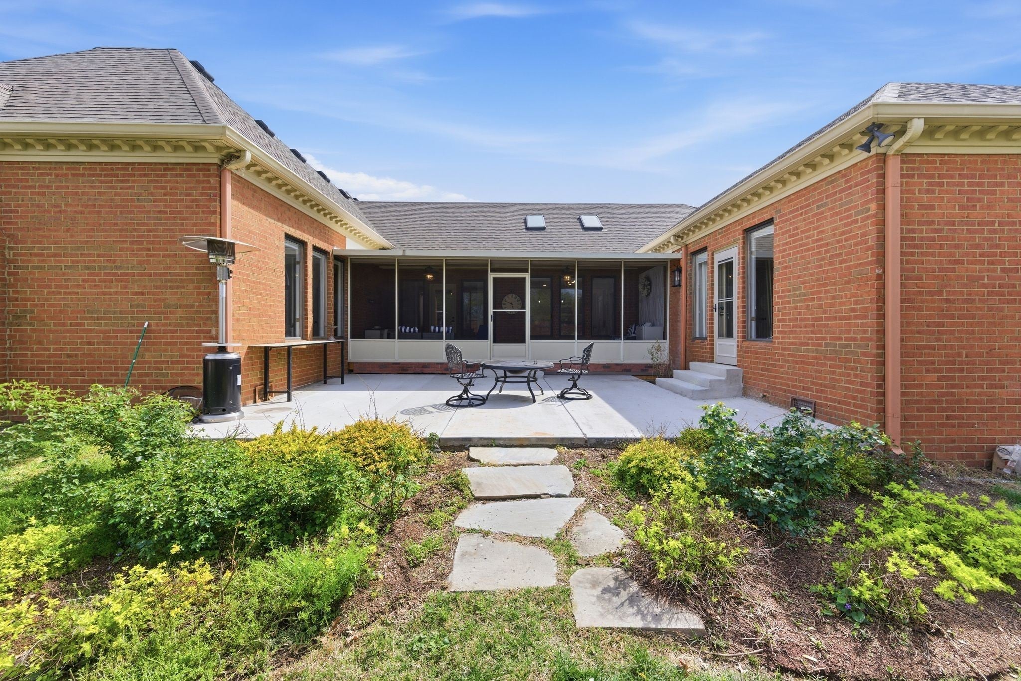 Welcome to effortless, one level living in the gated community of Hazel Path-where security, convenience and style come together! This completely renovated one-story home will be in pristine, turn-key condition upon completion. Every detail has been thoughtfully updated, starting with a. stunning brand new kitchen featuring elegant quartz countertops, custom lighting and new cabinets that make both everyday living and entertaining a dream. The living room is a true focal point with a stylish shiplap accent wall, beautifully updated fireplace with new stonework and luxury vinyl planks. Just beyond, the bright and inviting sunroom showcases new ceramic tile flooring, which makes it a perfect space for morning coffee, a reading nook or entertaining guests! The master bath feels like a private retreat, complete with a custom walk in shower adorned with gorgeous marble! New flooring has been laid and a custom linen closet has also been added. All bedrooms feature brand new plush carpeting and will have a fresh coat of paint as well. The bonus room off the main hallway will have new carpet as well. This space is great for another retreat, office or tv room! Step outside to enjoy the newly poured concrete patio, ideal for grilling, relaxing or hosting friends! The roof has been replaced in 2025 and the bottom layer was scraped off so there's only one layer of brand new roof. See this fabulous renovation today!