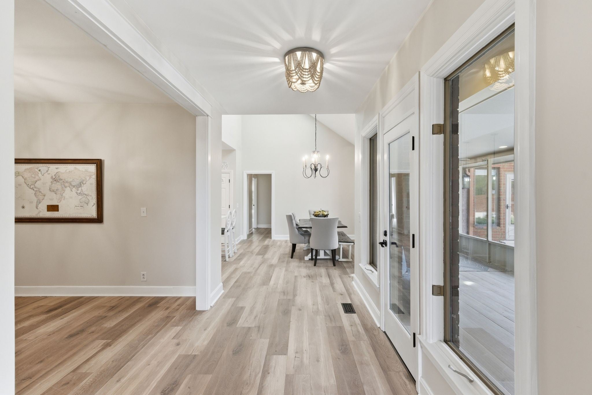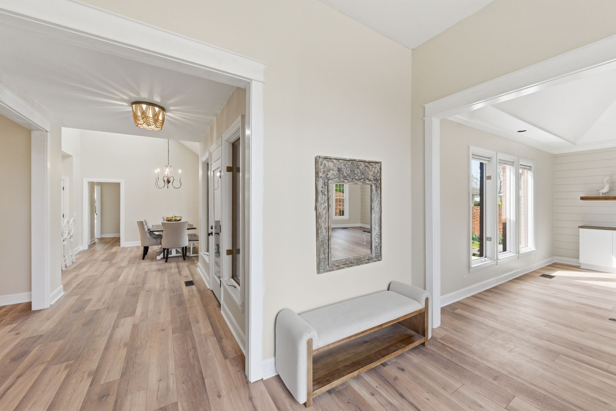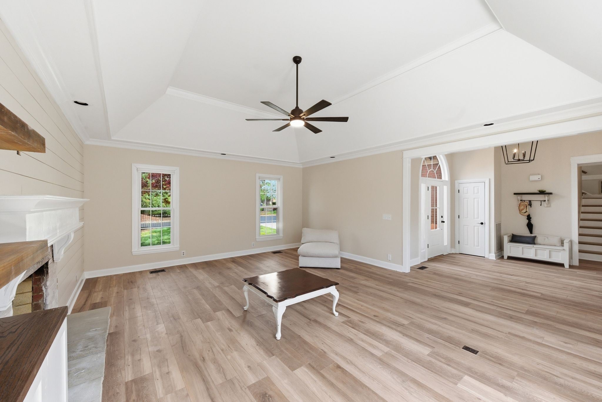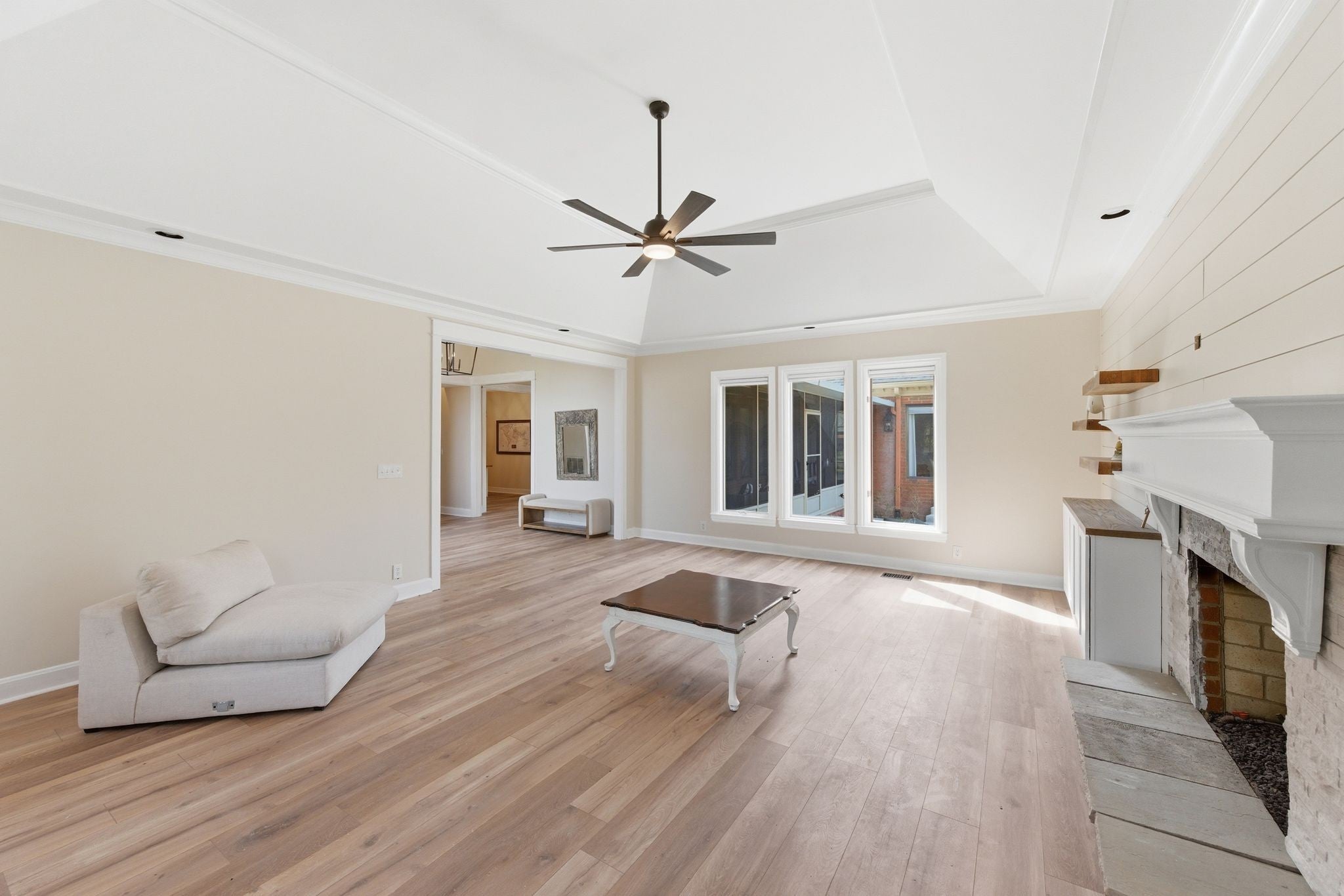Welcome to effortless, one level living in the gated community of Hazel Path-where security, convenience and style come together! This completely renovated one-story home will be in pristine, turn-key condition upon completion. Every detail has been thoughtfully updated, starting with a. stunning brand new kitchen featuring elegant quartz countertops, custom lighting and new cabinets that make both everyday living and entertaining a dream. The living room is a true focal point with a stylish shiplap accent wall, beautifully updated fireplace with new stonework and luxury vinyl planks. Just beyond, the bright and inviting sunroom showcases new ceramic tile flooring, which makes it a perfect space for morning coffee, a reading nook or entertaining guests! The master bath feels like a private retreat, complete with a custom walk in shower adorned with gorgeous marble! New flooring has been laid and a custom linen closet has also been added. All bedrooms feature brand new plush carpeting and will have a fresh coat of paint as well. The bonus room off the main hallway will have new carpet as well. This space is great for another retreat, office or tv room! Step outside to enjoy the newly poured concrete patio, ideal for grilling, relaxing or hosting friends! The roof has been replaced in 2025 and the bottom layer was scraped off so there's only one layer of brand new roof. See this fabulous renovation today!