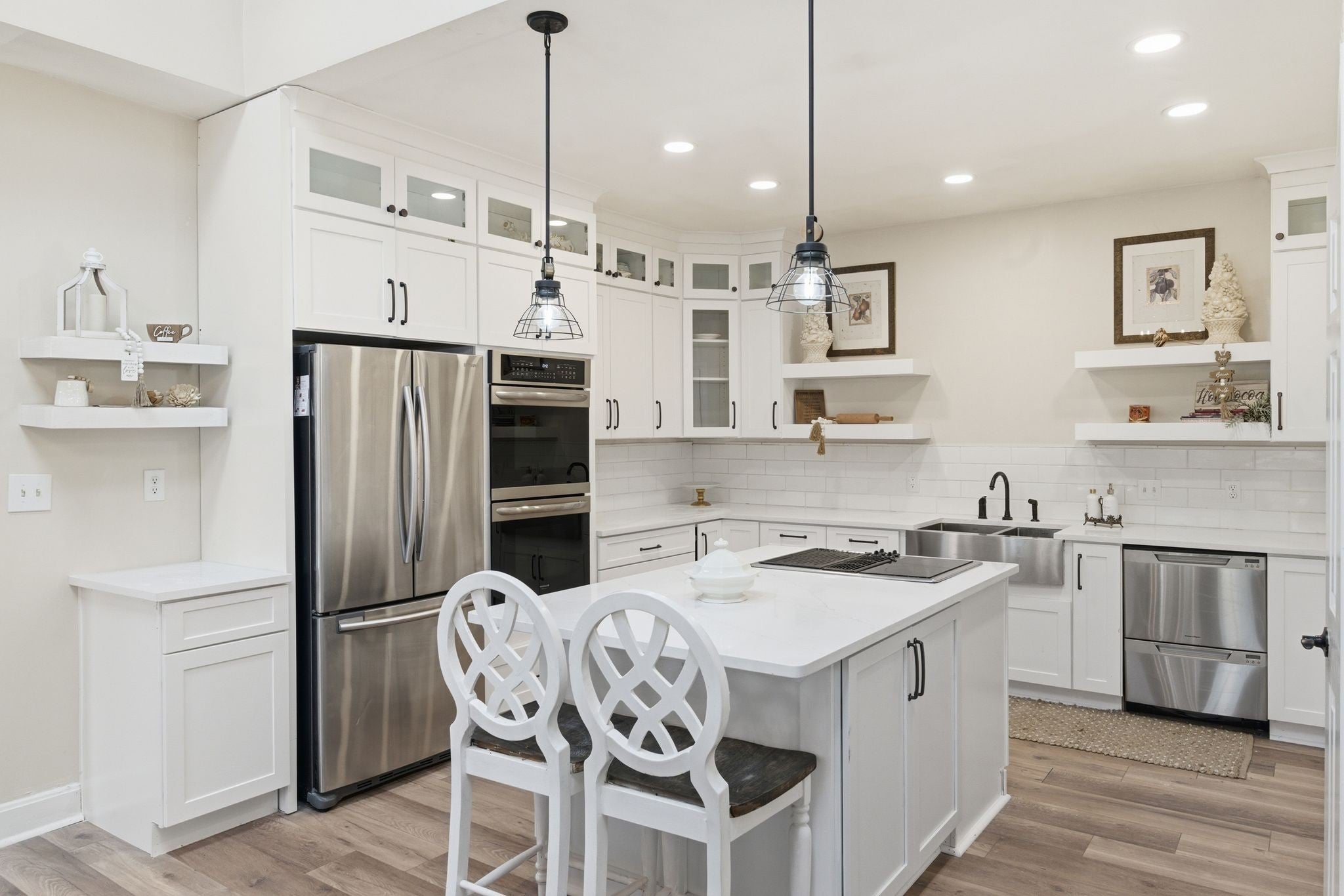 - Built-In Electric Oven, Double Oven, Cooktop, Dishwasher, Microwave, Stainless Steel Appliance(s)