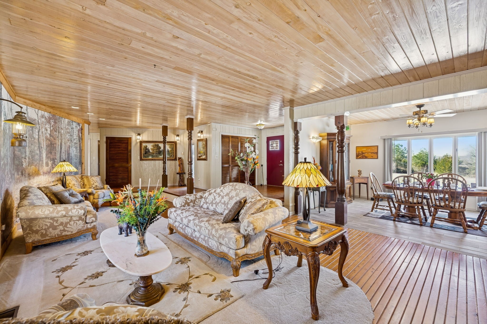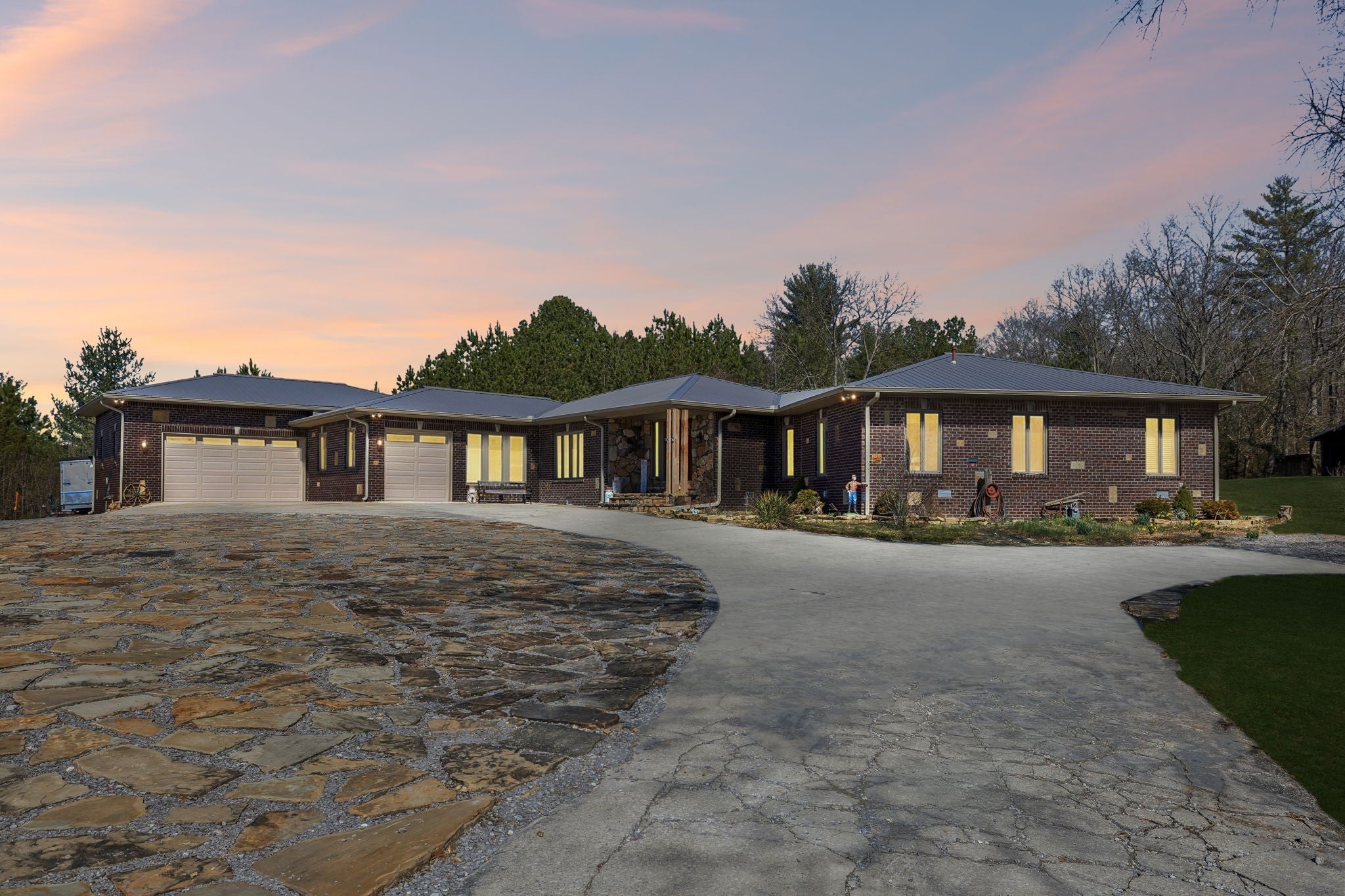 Exceptional one-level living on 18.3 private acres offering space, versatility, and room to grow. This 3-bedroom, 2.5-bath home features approximately 2,800 square feet designed for comfortable everyday living and effortless entertaining. This amazing home has solid flooring throughout with a combination of hardwoods and porcelain tile! There are multiple water heaters to ensure everyone's comfort! Multiple living areas anchored by two fireplaces create warm gathering spaces, while the spacious layout provides flexibility for large families or those who love to host. Generously sized bedrooms and thoughtful separation between living spaces offer both comfort and privacy. The kitchen truly serves as the heart of the home, offering expansive granite countertops, stainless steel appliances, and a farmhouse sink—all designed for gathering and entertaining. With generous prep space and room for conversation, it’s the perfect place to prepare meals after a day spent enjoying the property, whether hosting friends, cooking for a crowd, or bringing in fresh ingredients from the garden that you are going to want! This well equipped space is as beautiful as it is functional utilizing quality appliances and finishes plus there is natural gas for the gas stove! Step outside and discover what truly sets this property apart—18.3 acres of usable land with no HOA restrictions. Whether you envision a mini farm, recreational space, workshop expansion, or simply enjoying peaceful country privacy, the possibilities are endless! Car enthusiasts, hobbyists, or business owners will appreciate the rare 5 garage spaces plus 2 additional carport spaces(one a 2 car, another with a 3 car), and a 16x20 shed with concrete floor, 220 electric, & water, providing abundant storage, workspaces, or equipment coverage. If you’ve been searching for privacy, one-level convenience, and acreage without sacrificing space, this property delivers a unique opportunity that’s increasingly hard to find!