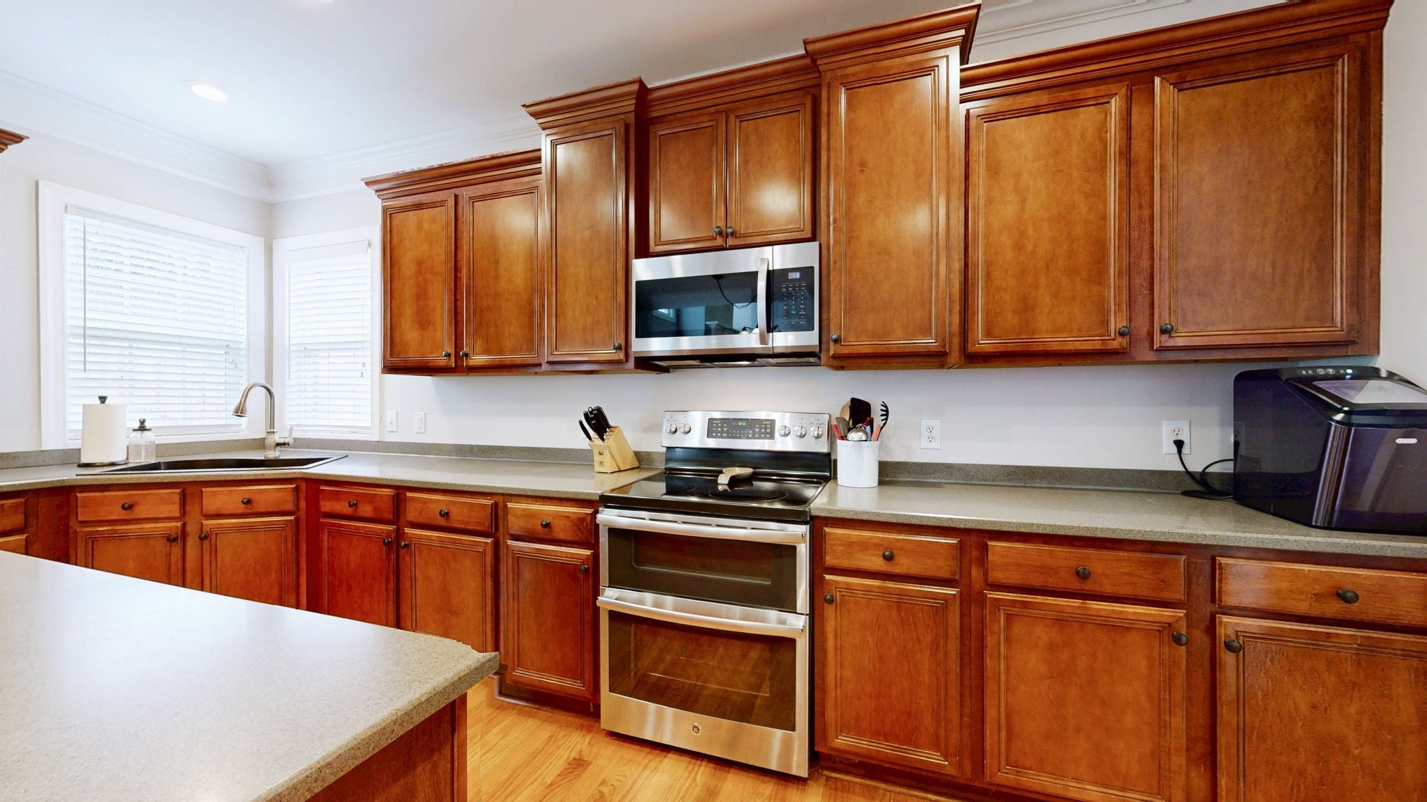 - Electric Oven, Electric Range, Dishwasher, Disposal, Microwave, Stainless Steel Appliance(s)