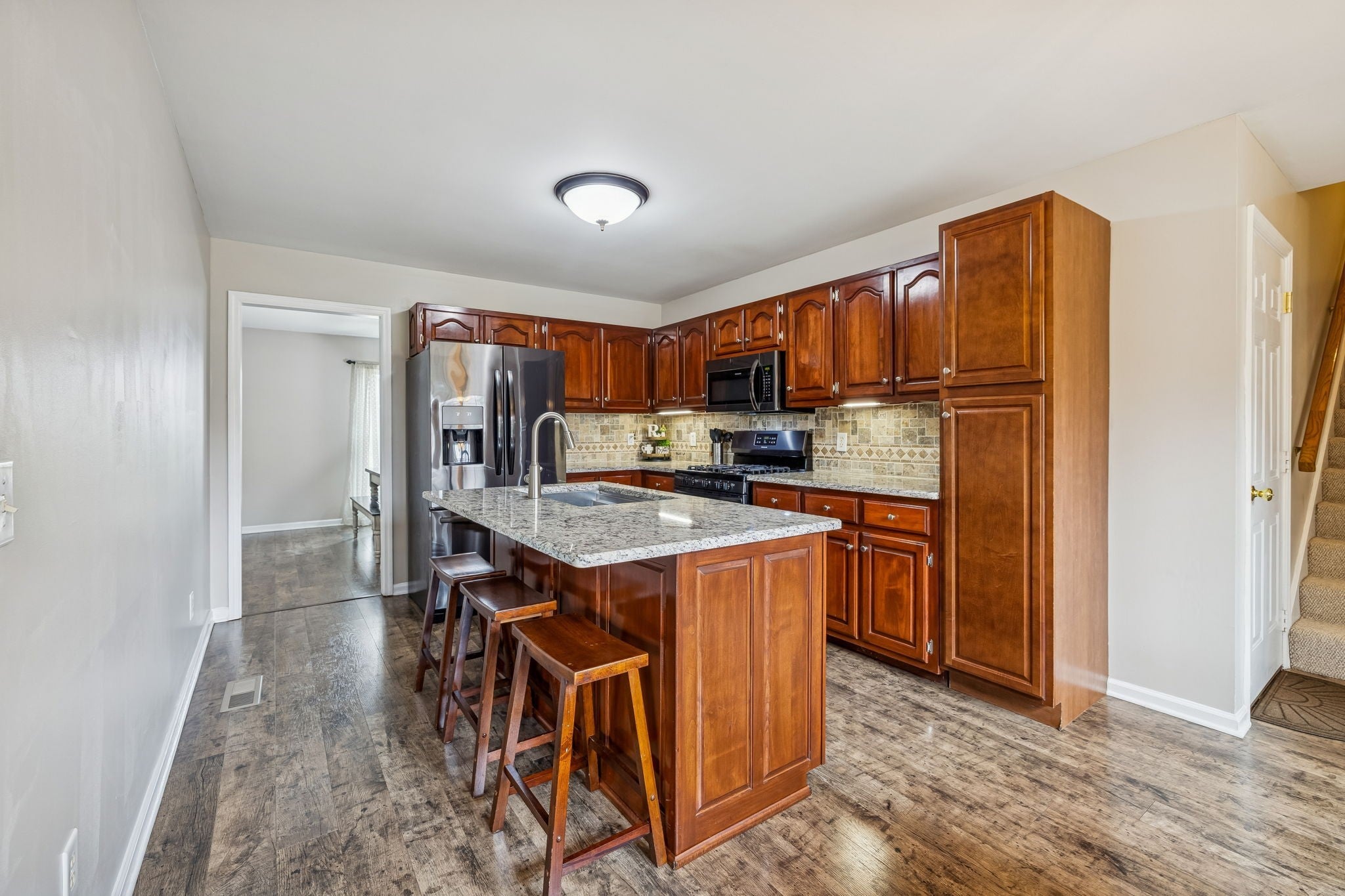 - Gas Oven, Gas Range, Dishwasher, Disposal, Microwave, Refrigerator