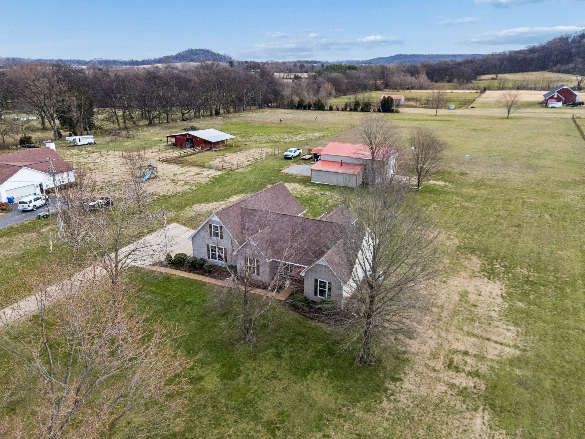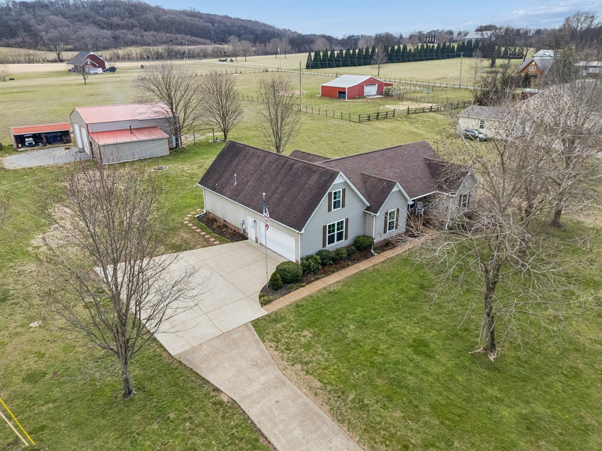 Welcome to your dream mini farm on 5 beautiful acres! This immaculately maintained 3 bedroom, 3 bath home offers the perfect blend of comfort, functionality, and country charm. All bedrooms are conveniently located on the main level, including the spacious primary suite featuring a recently remodeled bathroom with a walk-in shower. The inviting living area offers a cozy gas log fireplace, perfect for relaxing evenings at home, while a wood heater provides additional warmth and efficiency during the colder months. Enjoy peaceful mornings on the classic rocking chair front porch and unwind in the evenings on the large screened-in back porch overlooking your property. Upstairs, you’ll find a versatile bonus room along with a full bathroom featuring a shower-ideal for guests, a media room, home office, or additional living space. The driveway leads to a spacious 42x30 shop with 3 garage doors & large enough for your camper, 30x15 implement shed, & 24x12 storage shed for additional storage and equipment. The home also features a two-car garage for added convenience. With room for horses and plenty of usable acreage, this property is ideal for those wanting space to spread out while still being conveniently located. Just minutes to US-43, the revitalized downtown Mount Pleasant, and only 15 minutes to downtown Columbia— you truly get the best of both worlds: quiet country living with easy access to shopping, dining, and everyday conveniences. Pride of ownership shines throughout this exceptional property!