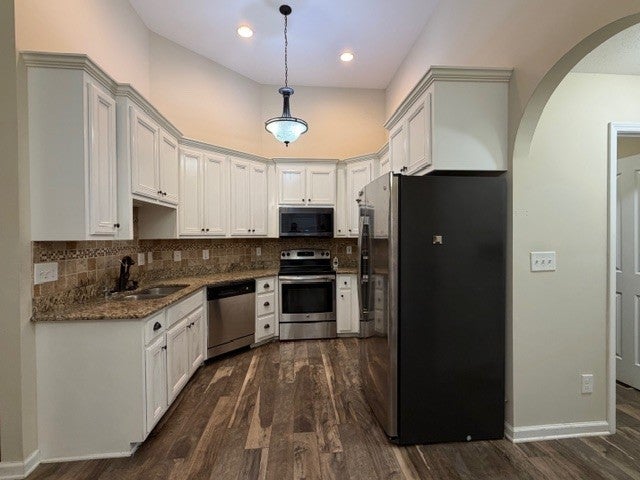 - Electric Oven, Electric Range, Dishwasher, Disposal, Microwave, Refrigerator, Stainless Steel Appliance(s)