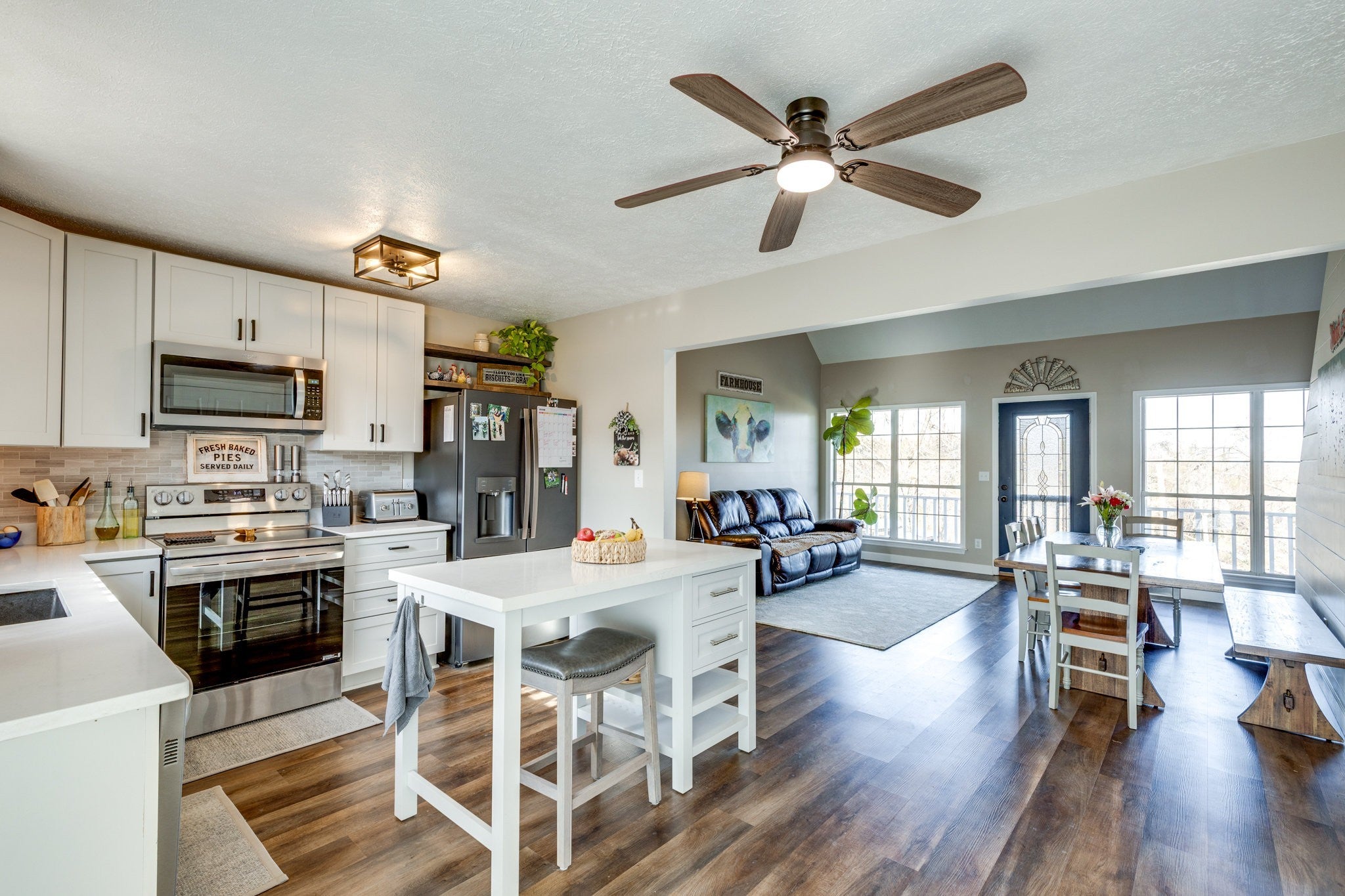 - Electric Range, Dishwasher, Microwave, Stainless Steel Appliance(s)
