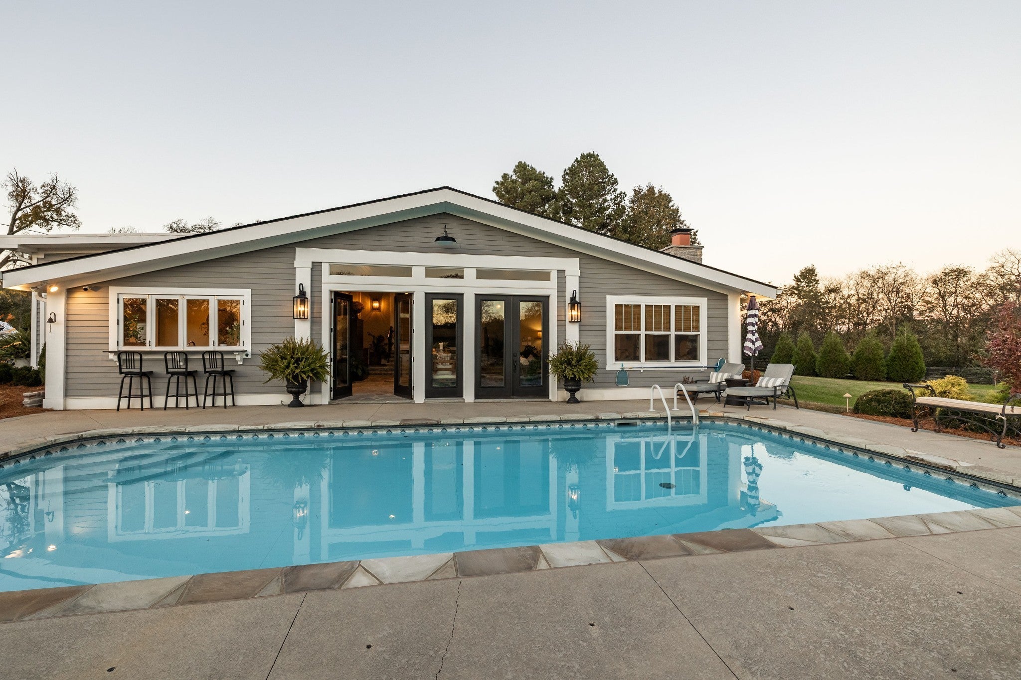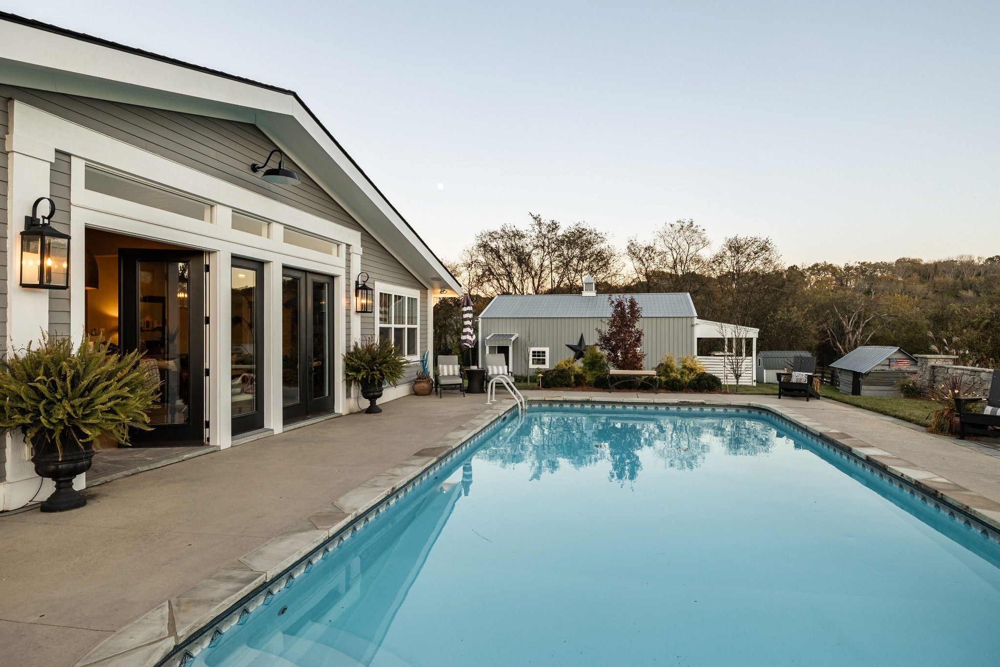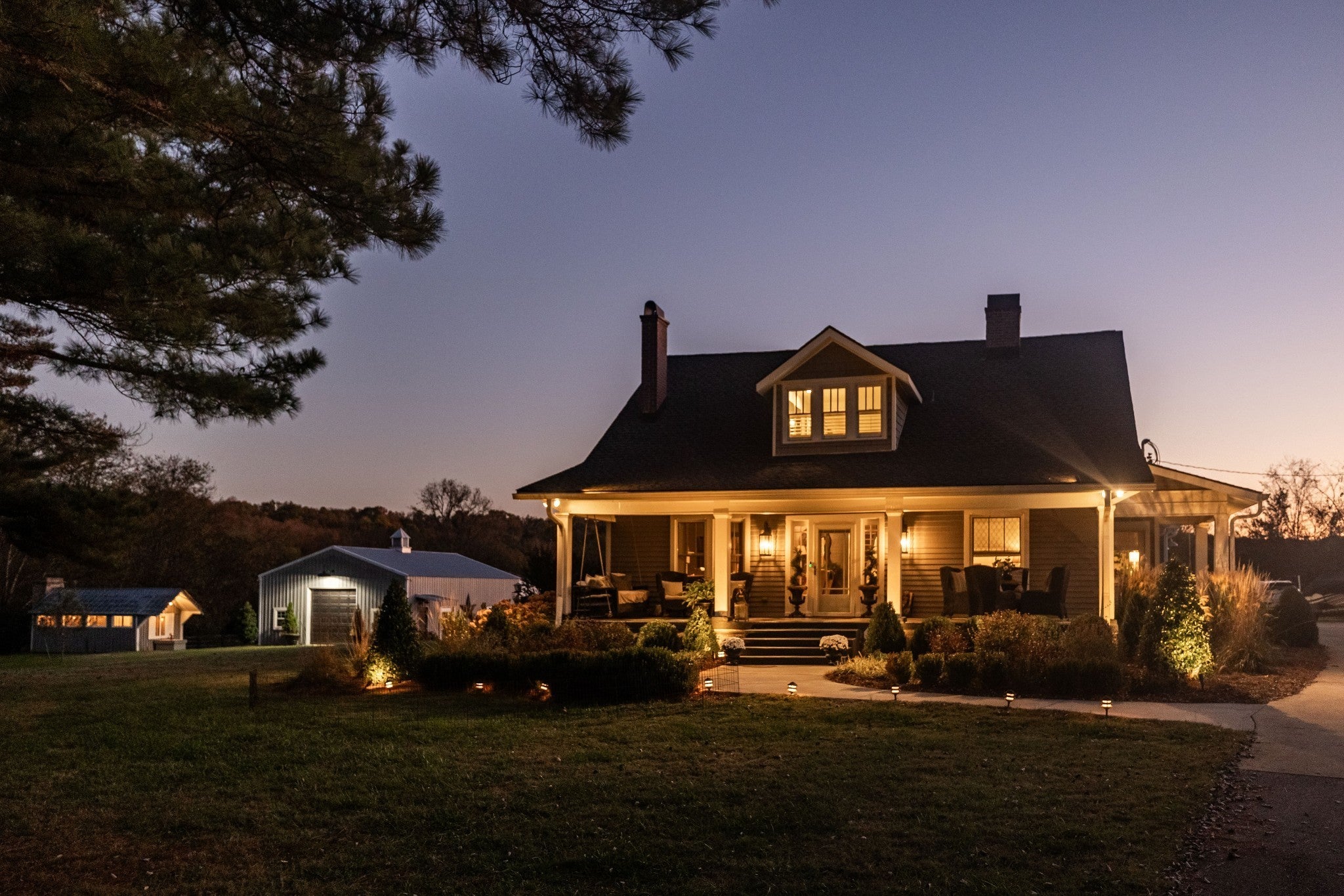 This is the Tennesse dream! Meticulously maintained and beautifully renovated 4400 sq ft farmhouse with separate studio and large garage/barn. Located on 5.25 acres with no HOA, this is the perfect place to live out your homesteading dreams! Land is flat, fully fenced and tree-lined for wonderful privacy. Extensive updates to the home since 2020 include a large great room with bluestone floors, wood burning fireplace, half bath, bar area and inside grill with windows and double French doors opening to the outdoor pool area. It's the perfect space to entertain all of your family and friends. The kitchen has great work space with marble counters, open shelving, standalone island and 64" fridge/freezer. The adjoining dining room has gorgeous built ins and leads into a breathtaking main living space with hand-hewn beams and large fireplace. The first floor primary suite includes a gas fireplace, brand new closets and spa-like bathroom. Den has more built-ins and fireplace and is perfect for a reading area or an office. Upstairs is light and bright with two bedrooms, a bathroom and lots of storage. There's a 3 car garage with epoxy flooring... one of the stalls is being used as a home gym.The stand-alone studio is perfect as an office, recording studio or art studio. There's also an amazing garage/barn perfect to house an RV or to use for any hobby you might have. Enjoy sunsets pool-side looking out over your own private heaven. Grow your own food with large, fenced garden with raised beds and the cutest potting shed. Fully encapsulated crawl space, new roof, new hot water heater, new landsacaping and new walkway. The best part? It's only 15 minutes away from the stores at Berry Farms. This property needs to be experienced and not just seen to understand the care and detail that make this home so incredibly special.