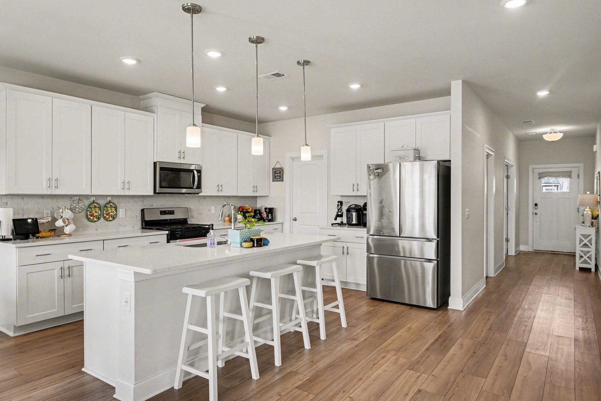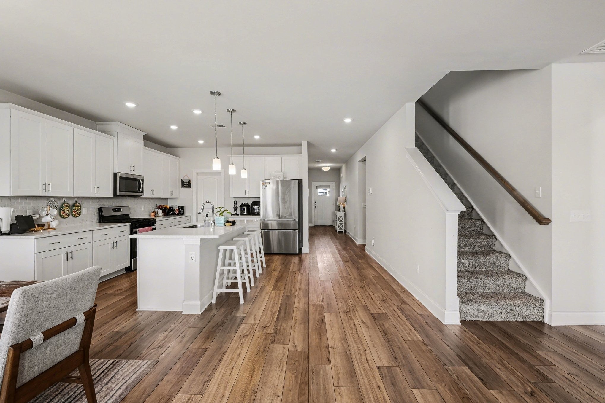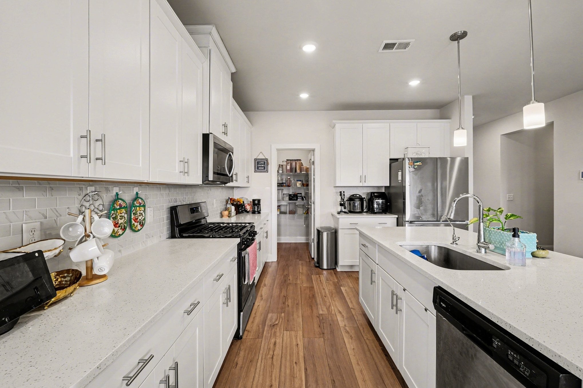 - Electric Oven, Gas Range, Dishwasher, Disposal, Dryer, ENERGY STAR Qualified Appliances, Microwave, Refrigerator, Stainless Steel Appliance(s)