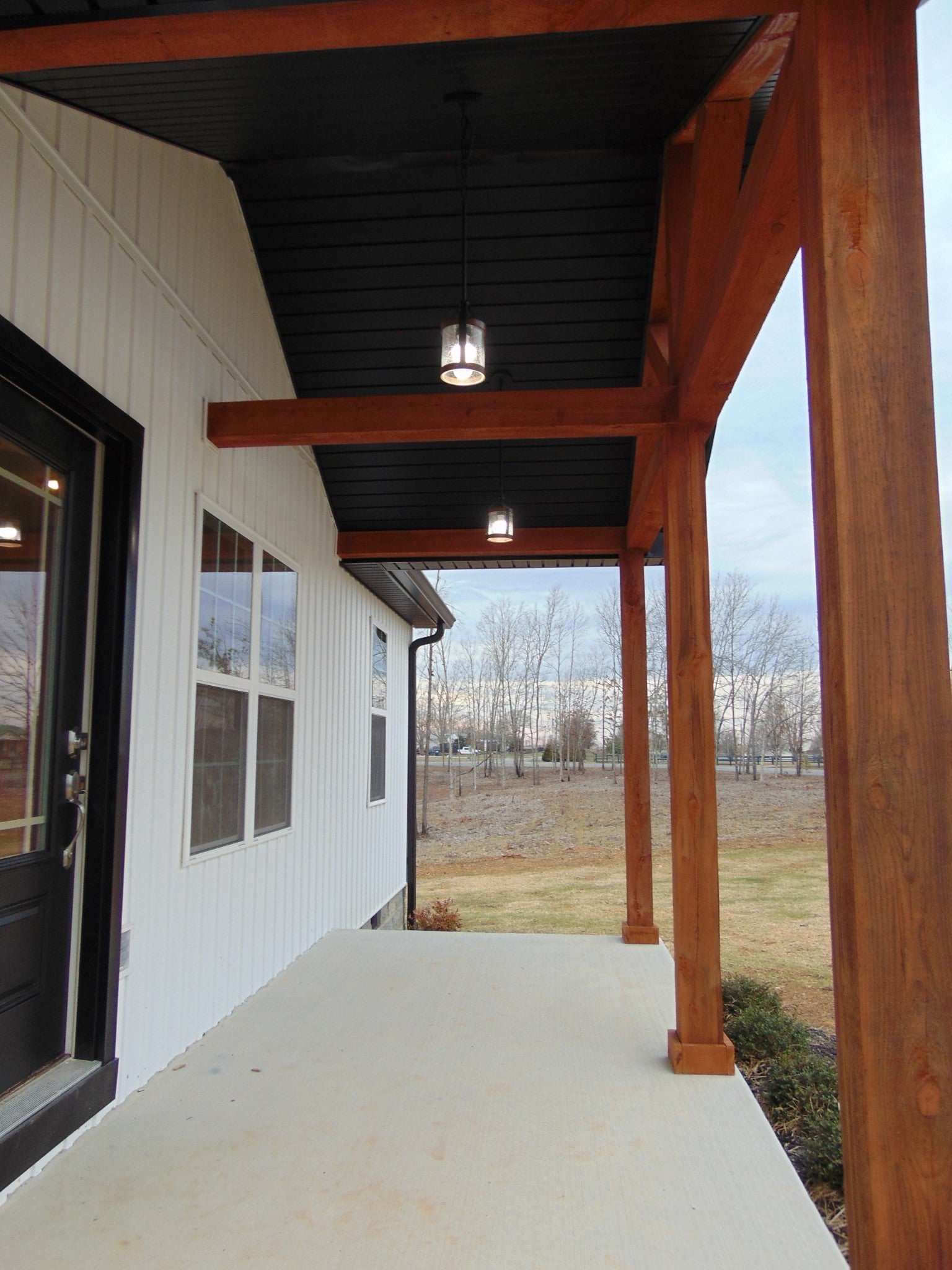 This stunning new construction home boasts exquisite finishes throughout, offering both style and comfort. This 1500 sq ft of thoughtfully designed living space, ideal for those seeking comfort and luxury. Featuring 3 spacious bedrooms and 2 full bathrooms, it offers ample room for families of all sizes. Option selections have been carefully chosen for the private primary suite, which is separated from the other bedrooms, creating a peaceful retreat with an elegant en-suite bathroom with double sink vanity and generous walk-in closet space. At the heart of the home is the expansive open-concept living area, where the kitchen, dining, and living rooms flow seamlessly. The gourmet kitchen boasts elegant black quartz countertops, modern custom made cabinetry, and an oversized island, perfect for everyday meals and entertaining. The 2-car garage provides ample space for vehicles and storage. Home extends to a large 10' x 12' combination of open and covered for year round outdoor living. With a spacious open floor plan, a modern kitchen, and generous living spaces, this home is perfect for farmhouse with a splash of contemporary living. All on a sprawling 5 acre tract of mixture of open and wooded.