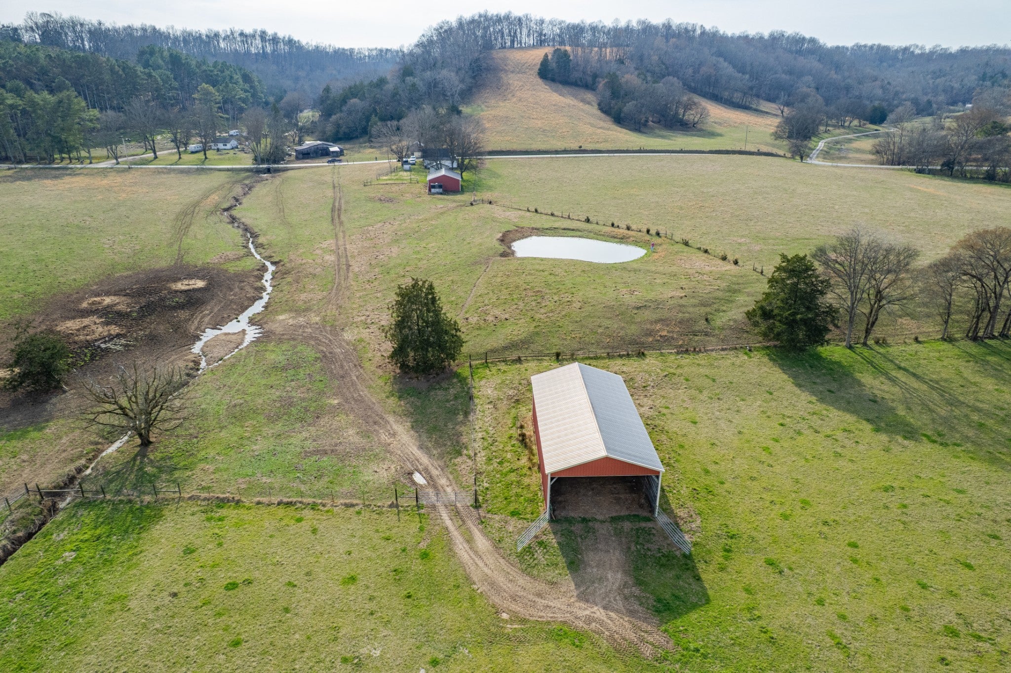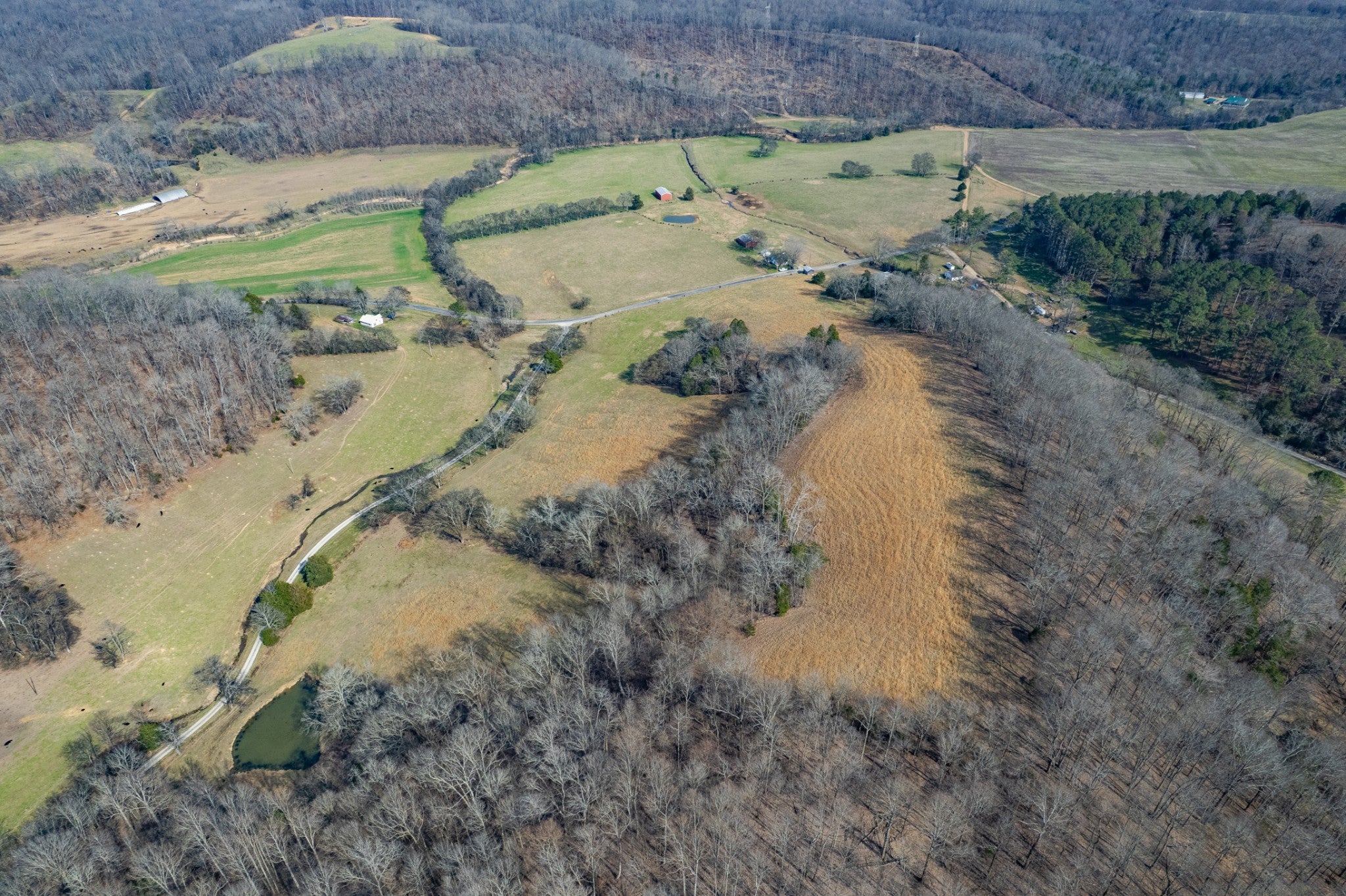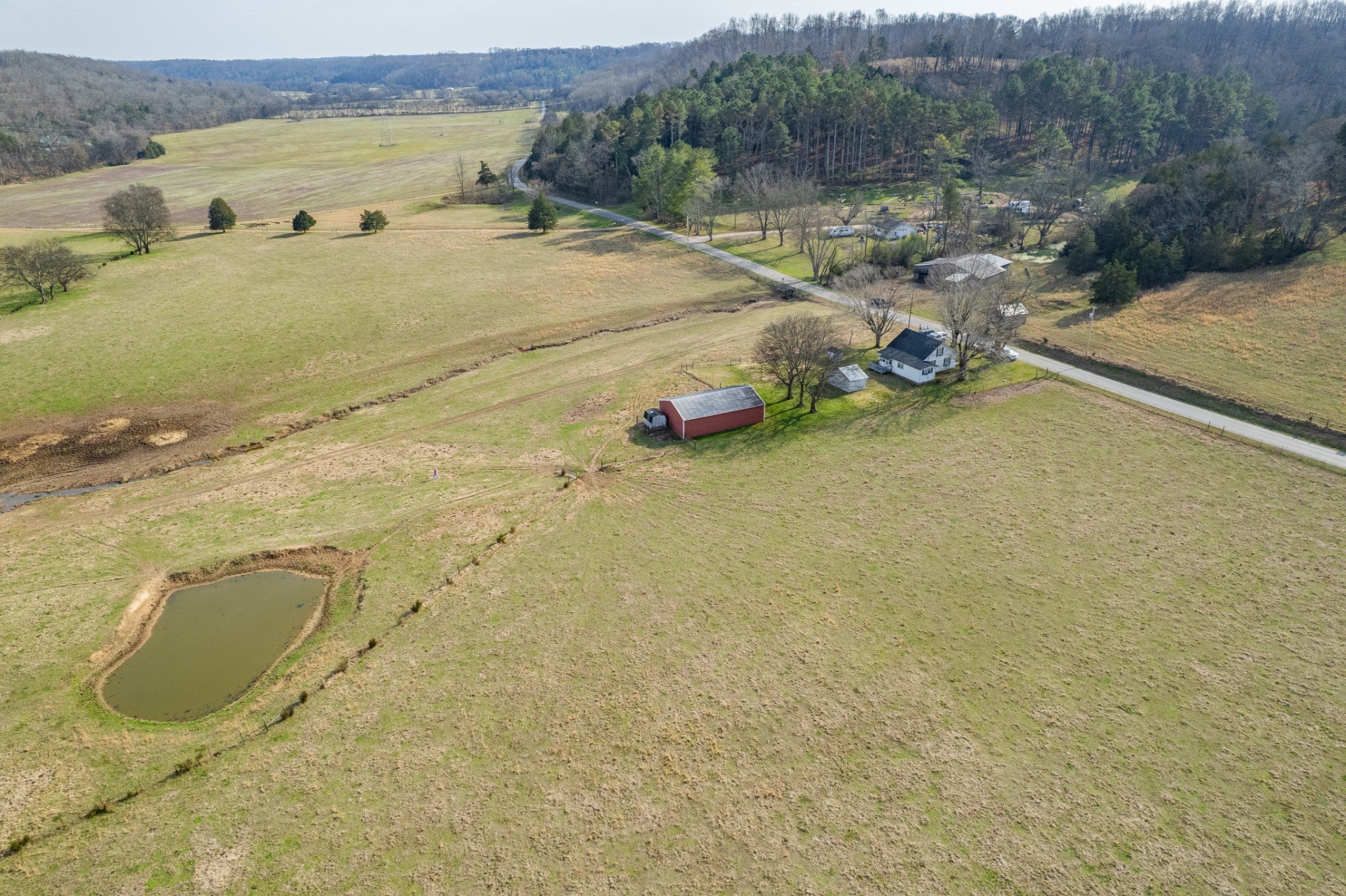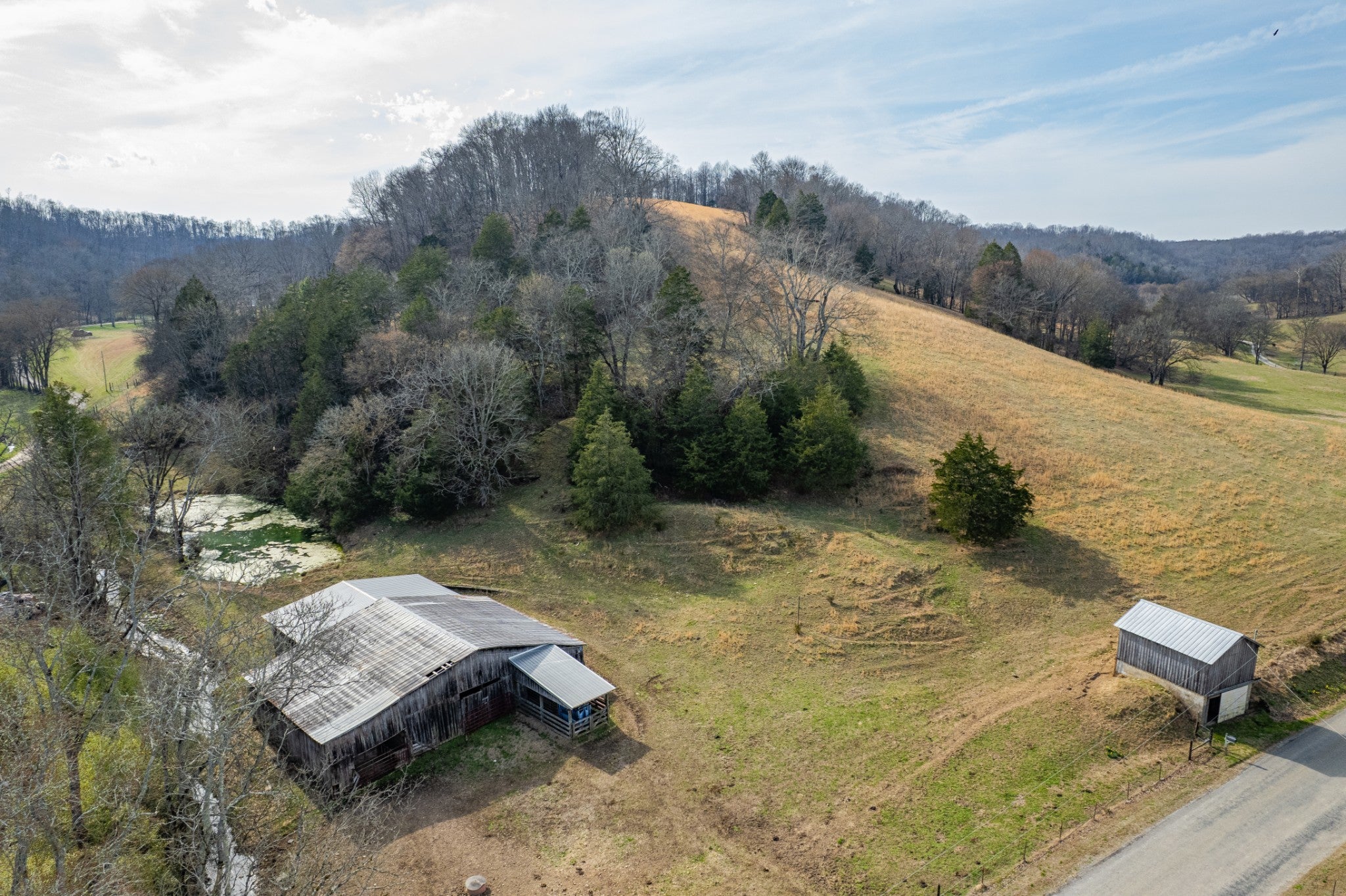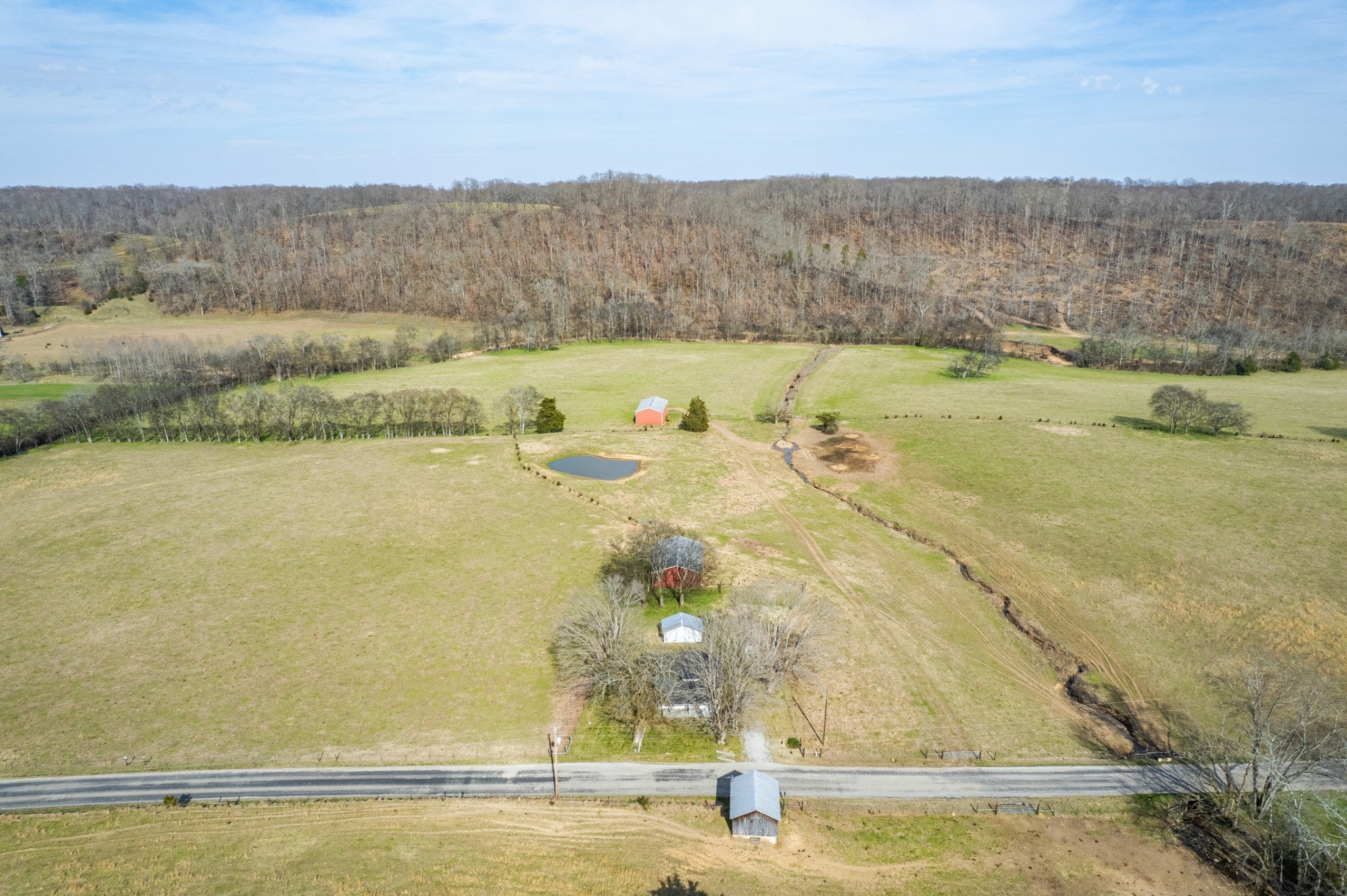 Amazing opportunity to own this nice 78 +/- acre farm with farm home in Giles County. This home is move in ready, 2 bedrooms, 1 bath, & bonus room upstairs. The farm has several acres of level land, rolling hills, wooded, and pasture land. This property is split by a county road. Fully fenced & cross-fenced, pastures are ready for your cattle & horses. There is a cattle pass for cattle to access the property across the road. The property has a spring house, 3 ponds, several outbuildings, & barns. Livestock barn has cattle chute and squeeze gate. The Pole Barn is 40x60 & Farm Shop 30x60. The barns all have electricity run to them. It's conveniently located between Pulaski and Lawrenceburg with easy access to Hwy 64.