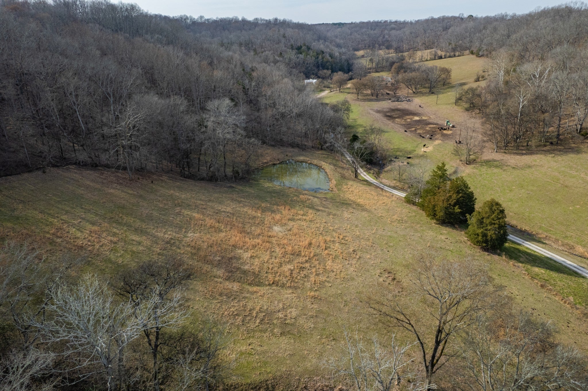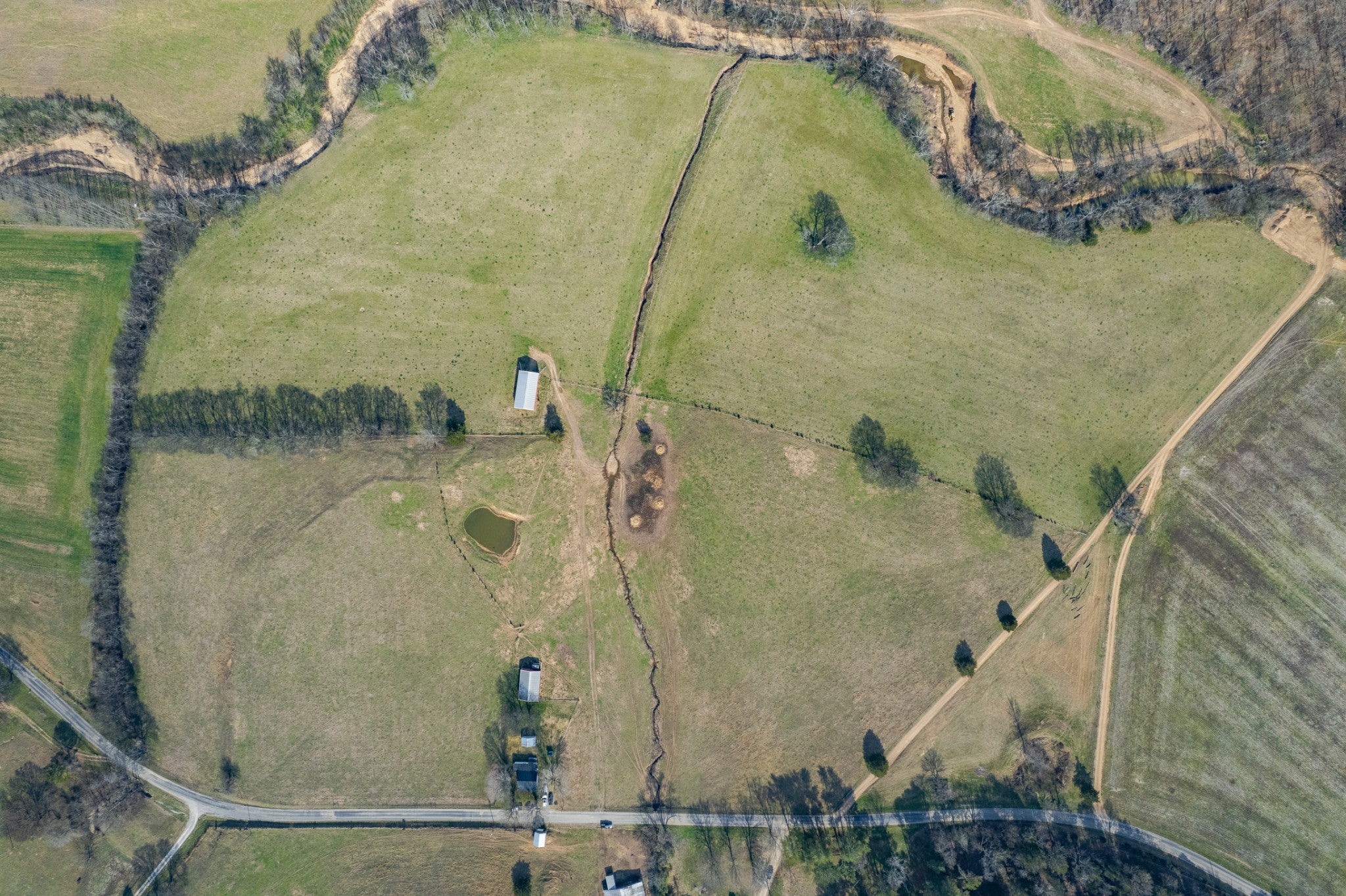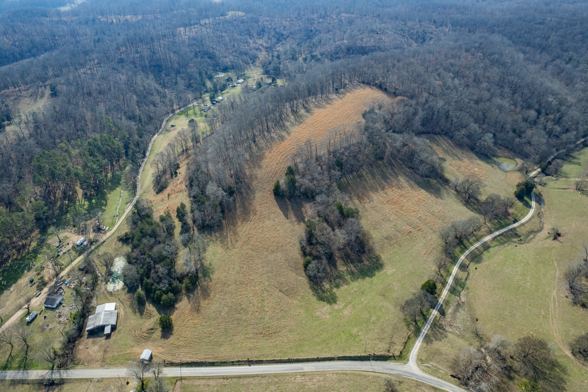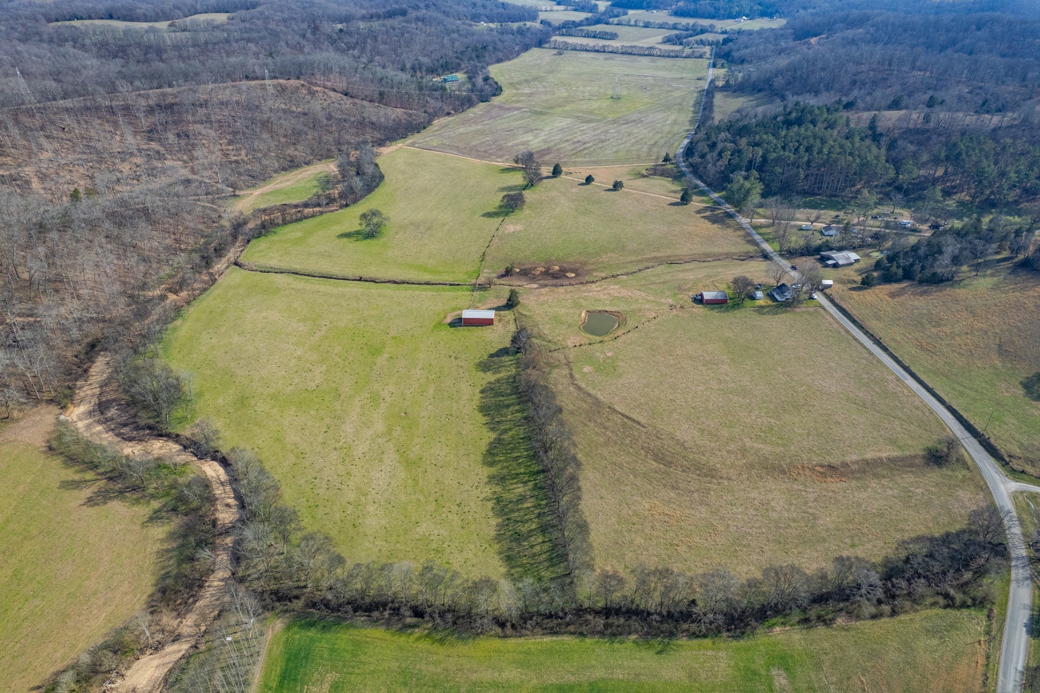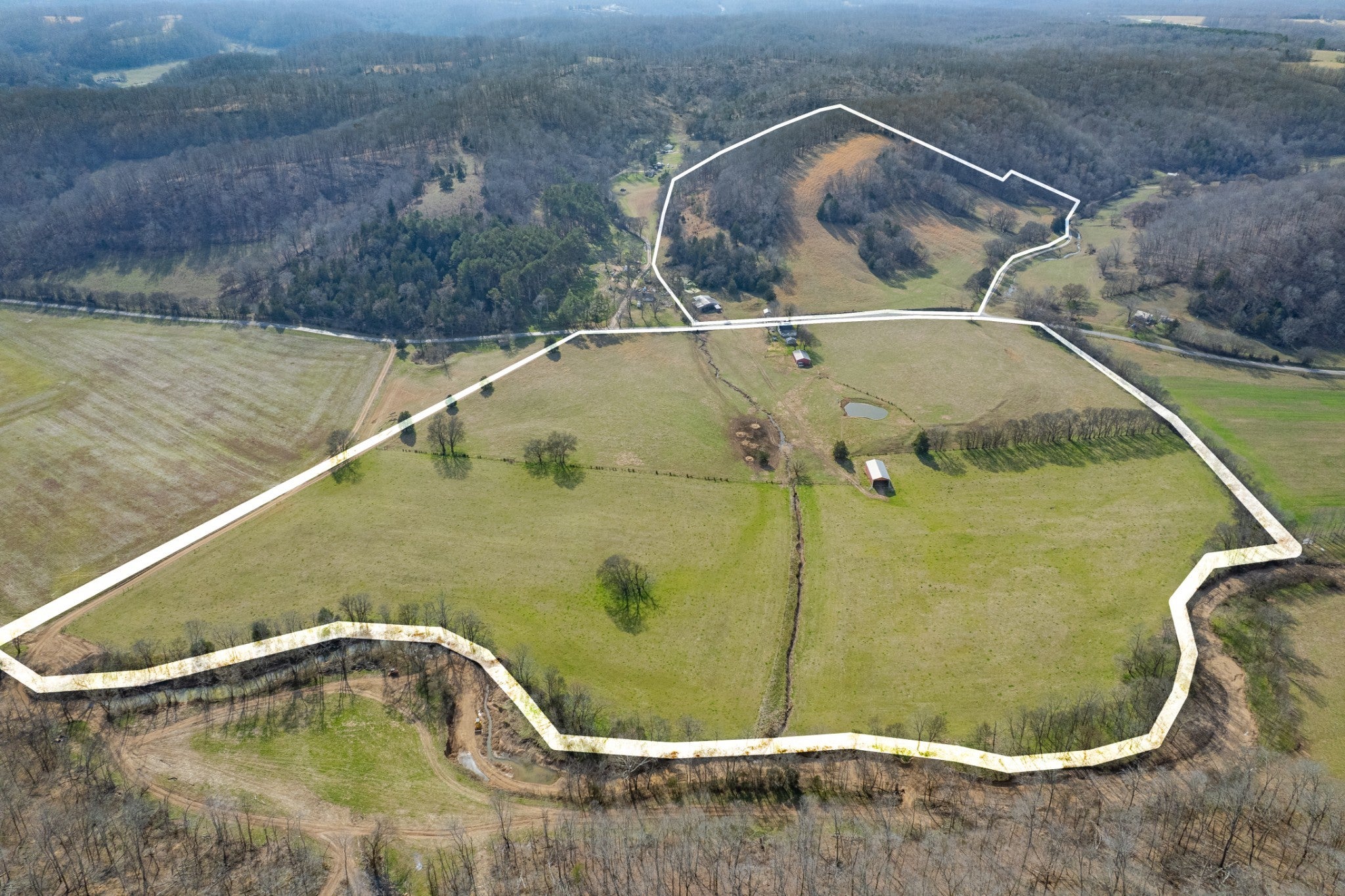Amazing opportunity to own this nice 78 +/- acre farm with farm home in Giles County. This home is move in ready, 2 bedrooms, 1 bath, & bonus room upstairs. The farm has several acres of level land, rolling hills, wooded, and pasture land. This property is split by a county road. Fully fenced & cross-fenced, pastures are ready for your cattle & horses. There is a cattle pass for cattle to access the property across the road. The property has a spring house, 3 ponds, several outbuildings, & barns. Livestock barn has cattle chute and squeeze gate. The Pole Barn is 40x60 & Farm Shop 30x60. The barns all have electricity run to them. It's conveniently located between Pulaski and Lawrenceburg with easy access to Hwy 64.