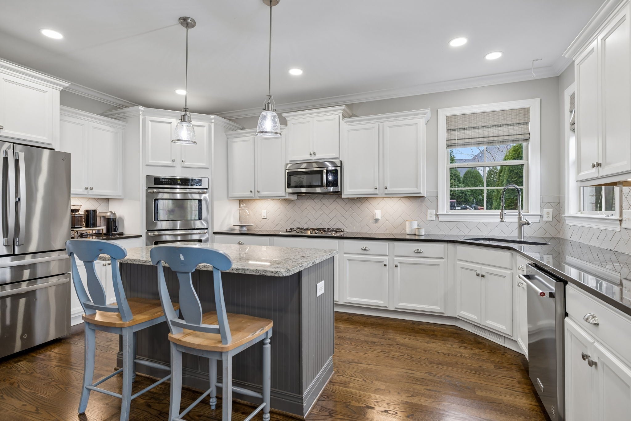 - Built-In Electric Oven, Double Oven, Gas Range, Dishwasher, Disposal, Microwave, Stainless Steel Appliance(s)