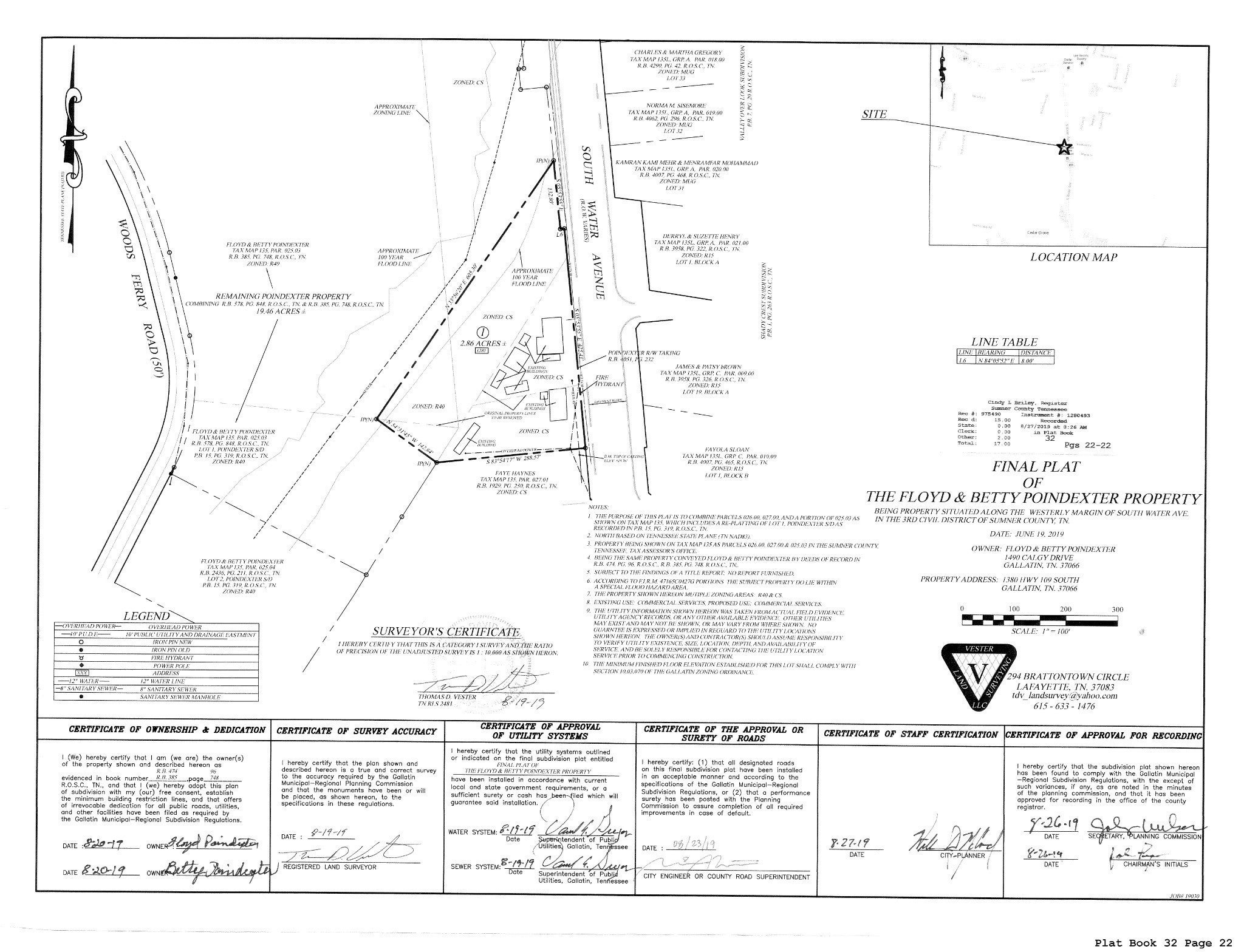 Prime Commercial Location - High Visibility + High Traffic Count. 2.86 Acres of a growing development area on the main North / South corridor.of Highway 109 between the Greater Nashville area of I-40 and Kentucky. Newly developed retail sites and residential development nearby. Zoned Commercial Services with three existing curb cuts. . Call or See media for more information. All utilities at site. Former location of Poindexter's Bait Shop, Call listing agent with any questions or for additional infirmation.
