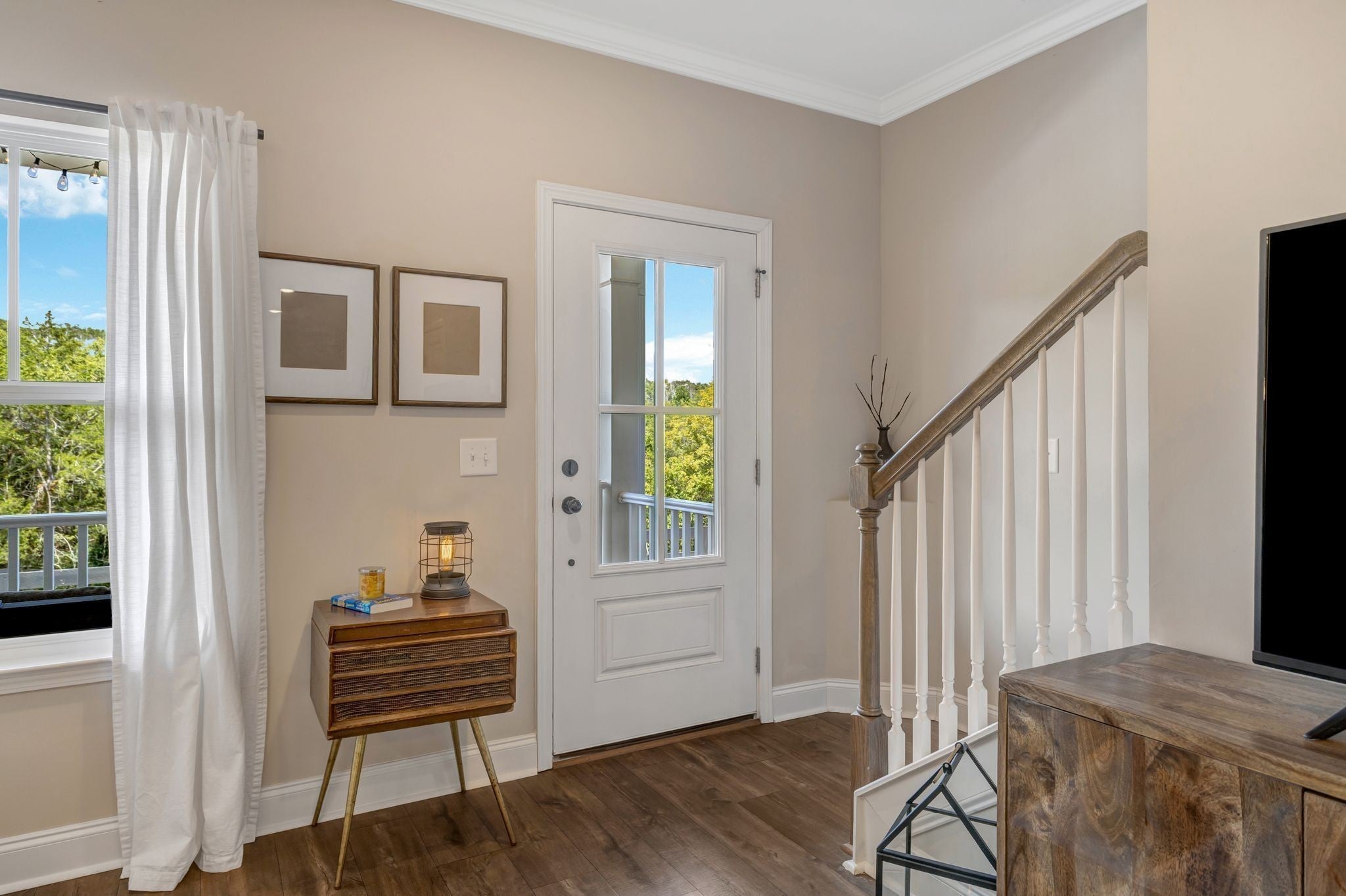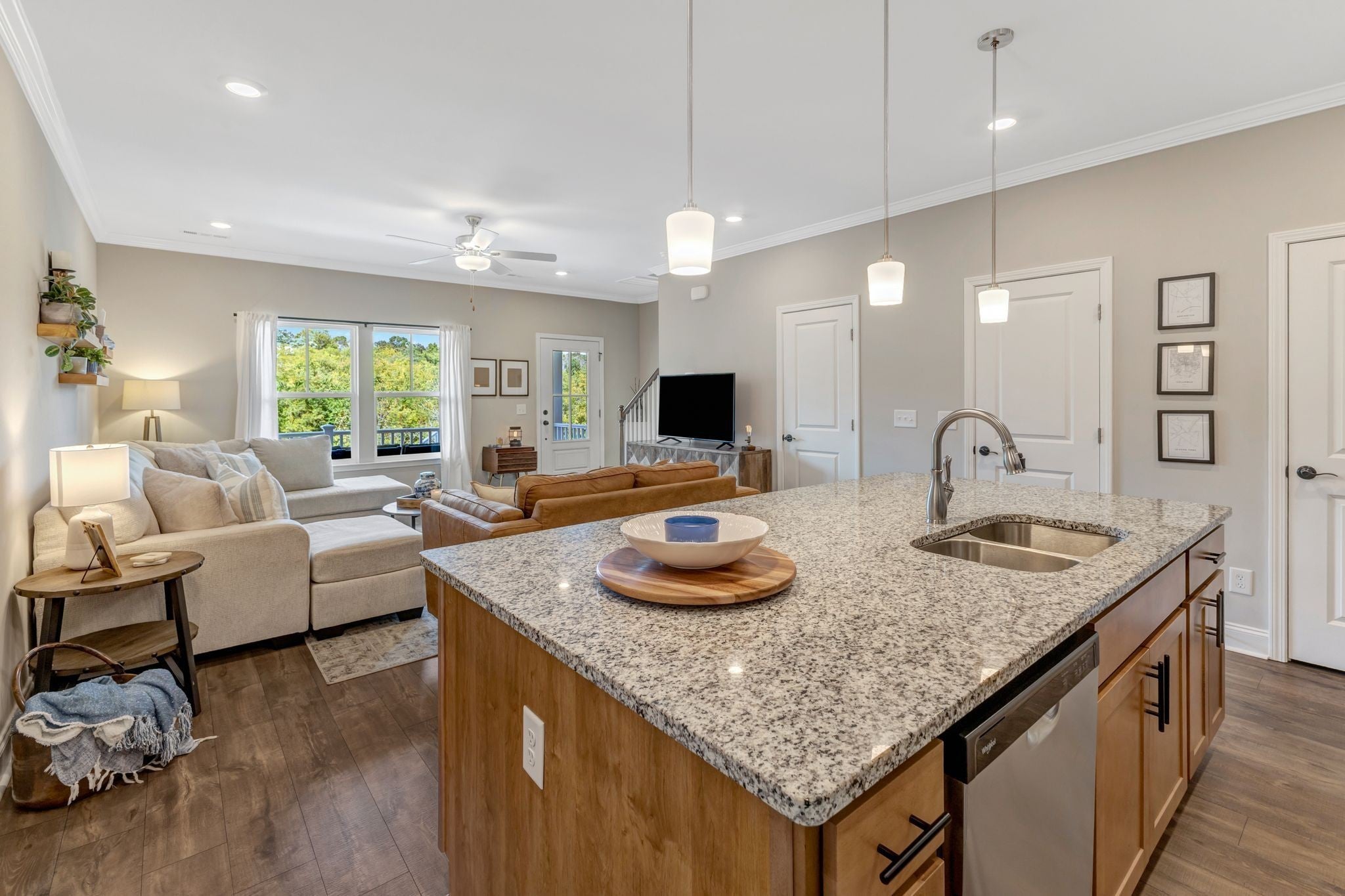 Rare opportunity in Carothers Farms! This move in ready townhome stands out with a hard to find two car attached garage, peaceful tree lined views, and no homes directly in front, offering a level of privacy that is rarely available in the community. Step inside to find thoughtful upgrades beyond builder grade, including designer paint selections and custom accent walls that bring warmth and personality to the space. The open concept main level is centered around a large kitchen island with seating, creating the perfect spot for entertaining or everyday living. Upstairs, the spacious primary suite features a trey ceiling, tiled shower, and two walk in closets, while the secondary bedrooms offer comfortable space for guests, family, or a home office. Additional storage is available with convenient pull down attic access. Start your mornings or unwind in the evenings on the welcoming rocking chair front porch overlooking green space and mature trees. With neighborhood parks and open areas just steps away, you can enjoy the outdoors without the upkeep of a traditional backyard. Located in the charming, storybook style community of Carothers Farms with amenities including a dog park, community garden, playground, pavilion, and pocket parks. Walk to Pilates or grab coffee at Ingrained right in the neighborhood. Conveniently located near Nolensville, I 24, Concord Rd, and Cane Ridge Park, with the future Tennessee Nature Academy planned nearby.