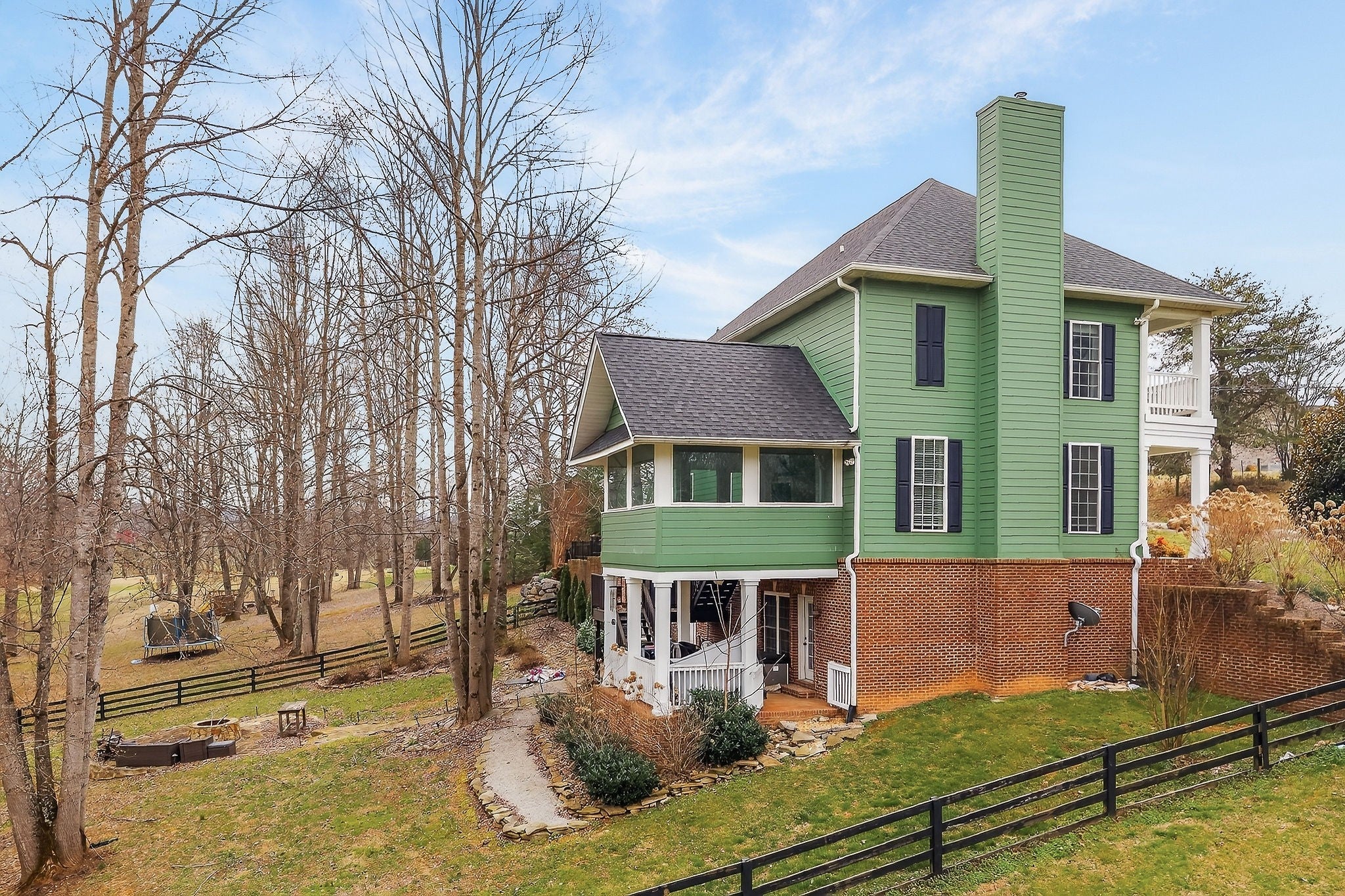 Nestled on 3.43 picturesque acres that join the scenic Falling Water River, this stunning home offers the perfect blend of natural beauty and modern comfort. Enjoy peaceful walks down to the river or take in the serene views from multiple balconies and a spacious sunroom with a charming wood plank ceiling. The main level welcomes you with a bright and open living room that flows seamlessly to the sunroom—ideal for relaxing or entertaining. The kitchen is a chef’s dream, featuring stainless steel appliances, granite countertops, and ample cabinetry. A formal dining room, large laundry area, and a two-car garage add convenience and functionality. Step out back to a covered patio that leads to a beautiful stone fire pit—perfect for cozy evenings under the stars. Upstairs, you’ll find three bedrooms, three full bathrooms, and a versatile bonus room that can serve as an office, playroom, or guest space. Addendum: The lower level offers even more living space with a comfortable den, an additional bedroom and bathroom, and a large workshop for hobbies or storage. The property is thoughtfully designed for outdoor enjoyment, featuring a wooden-fenced play area and a basketball court. With its incredible river access, spacious layout, and inviting outdoor amenities, this home is a rare find that combines comfort, recreation, and natural beauty in one exceptional setting.
