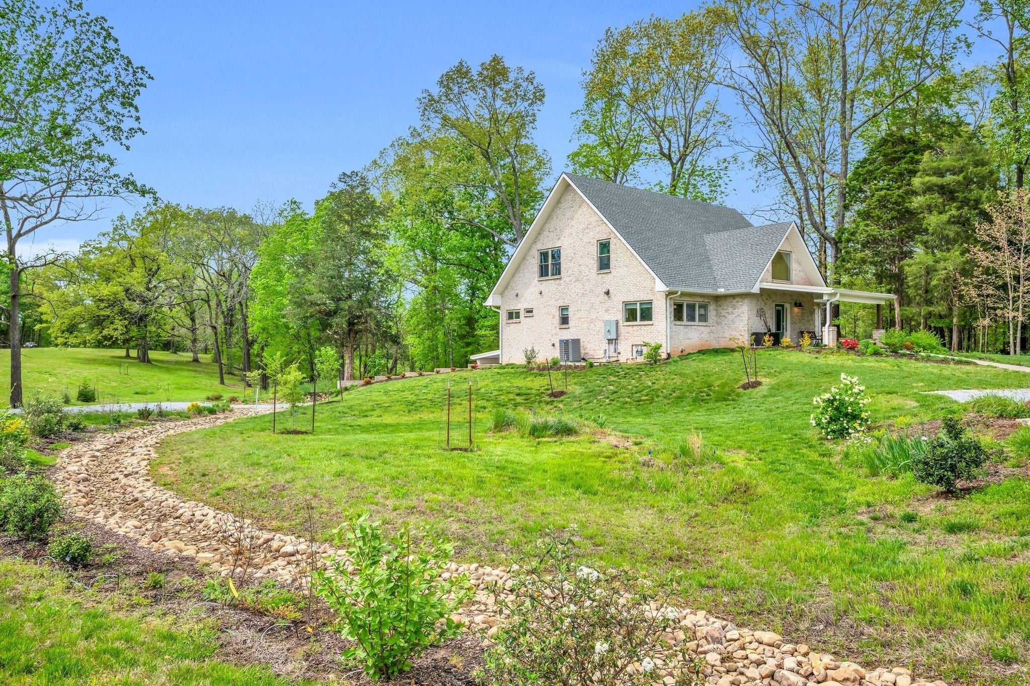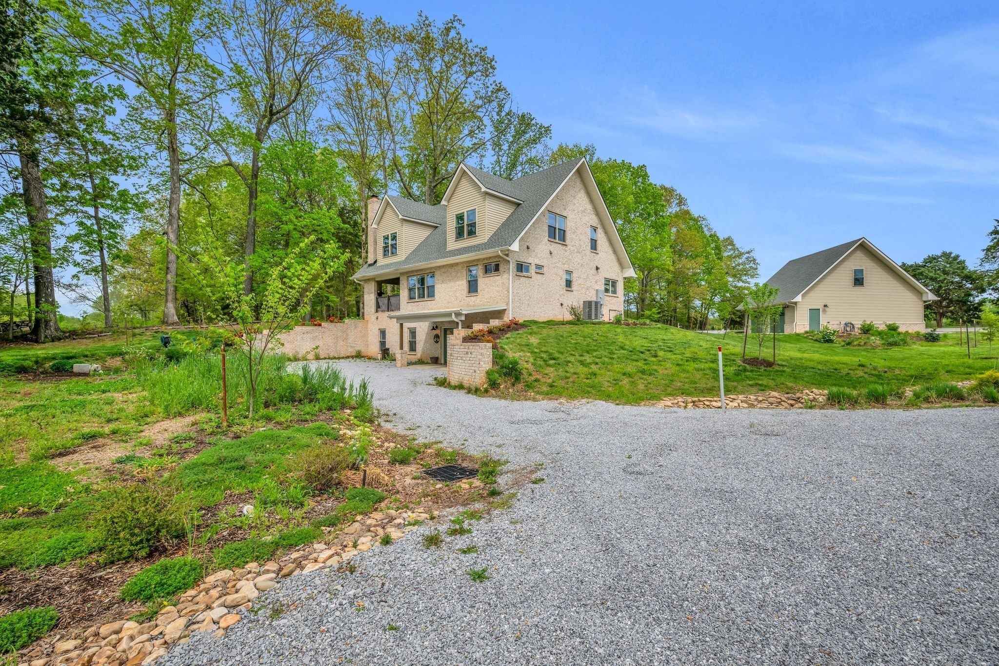 WORK FROM HOME? Designed with modern professionals in mind, this home includes a finished basement with a private, separate entrance and with space perfect for working from home. Here's your chance to own a pristine piece of paradise! Check out this two-story all brick home with a full basement AND a two car detached garage AND separate tool shed. There is an irrigation system for the plants located at the property entrance around the road. Beautiful landscaping includes privacy holly bushes and a stoned lined wet weather creek. A perfect garden spot is located beside the garage. This property comes with underground utilities, natural gas, 3 zoned HVAC system and more. There are 35 Provia windows throughout the house that tilt in and crank out. The kitchen is equipped with Beko appliances, custom cabinets, quartz countertops, an island with sink, and bench seating. The spacious master bedroom offers a peaceful entry out to a door-to-door patio in the back of the house. There are "his and her" closets. The master bath boasts of a spa-like feel with a garden whirlpool tub that is 66" long, double vanities, (65x38) walk-in shower that is handicap accessible, and tile flooring. In addition, this property has various extra amenities such as a large laundry room with sink, covered porch, tankless water heater, water filtration system, mechanical room in basement and air purifier. The owners utilized the finished areas of the basement as a two-bedroom B & B unit. Newly fenced perimeter