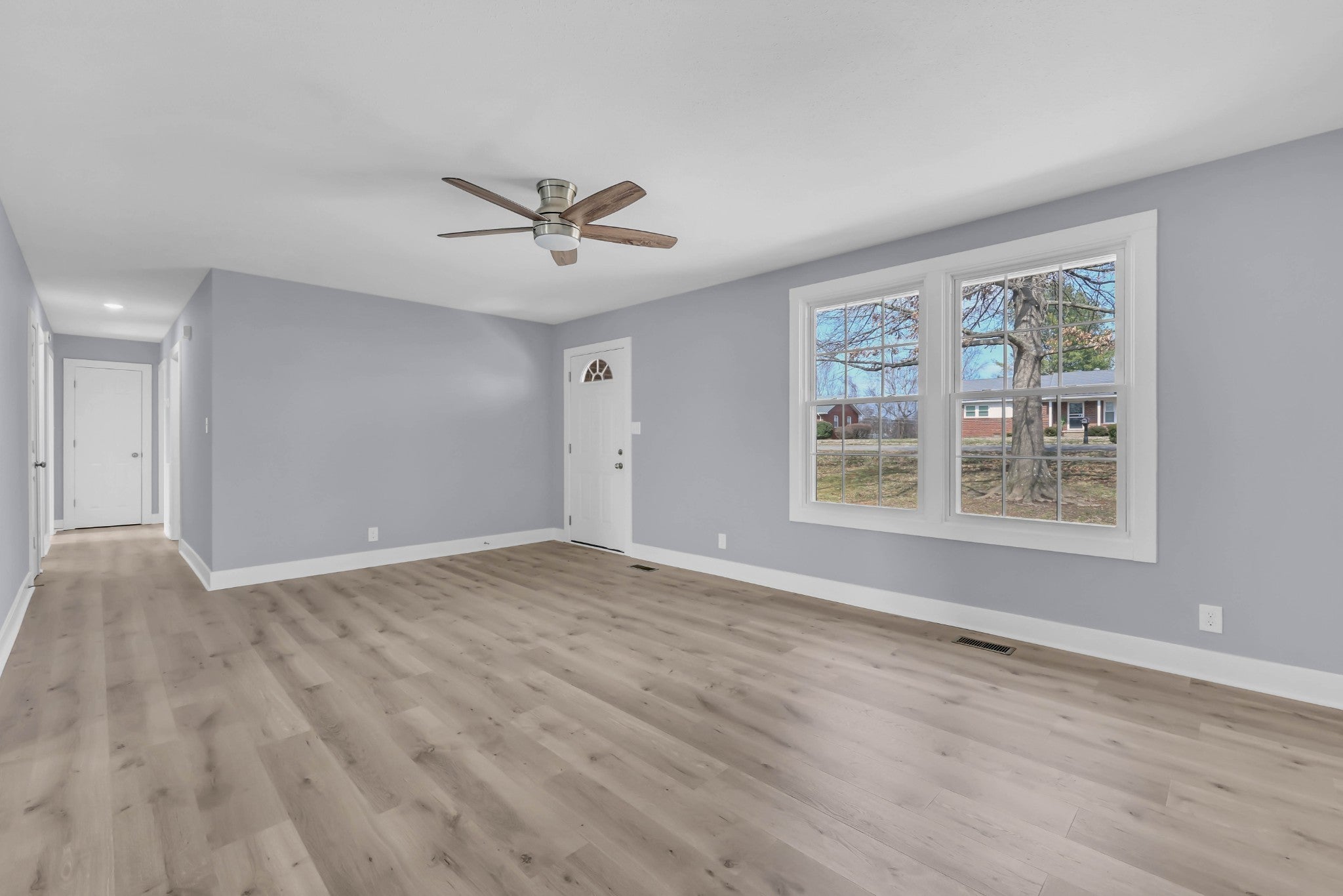 Welcome to a beautifully updated all brick ranch style home with a full basement situated on a spacious lot just minutes from Downtown Clarksville, Austin Peay State University, Fort Campbell, the Industrial Park, and Interstate 24. This move in ready home has been thoughtfully updated throughout and offers the perfect combination of classic construction and modern improvements. The main level features three bedrooms and two full bathrooms along with a comfortable living area filled with natural light. New luxury vinyl plank flooring, fresh paint, updated trim, and new interior doors create a clean and modern feel throughout the home. The kitchen has been completely refreshed with new cabinetry, granite countertops, and stainless appliances, providing a functional and attractive space for everyday living and entertaining. Both bathrooms have also been updated with new tub and shower enclosures, new vanities, toilets, lighting, accessories and plumbing fixtures. One of the standout features of this home is the expansive new deck overlooking the backyard, offering a great space to relax, entertain, or enjoy the surrounding views. The lower level provides exceptional flexibility with a large finished bonus space, a dedicated laundry area, and access to the oversized two car basement garage. The garage offers abundant room for parking, storage, or workshop space. Additional improvements include new lighting and ceiling fans throughout the home, a new HVAC system, new hot water heater, new garage doors, and other areas that were recently updated such as replacement windows and roofing. Outside you will appreciate the large lot and extended driveway that provides plenty of parking and easy access. If you are looking for a fully updated brick home with flexible living space, a large deck, and a convenient location close to everything Clarksville has to offer, this property is a must see.