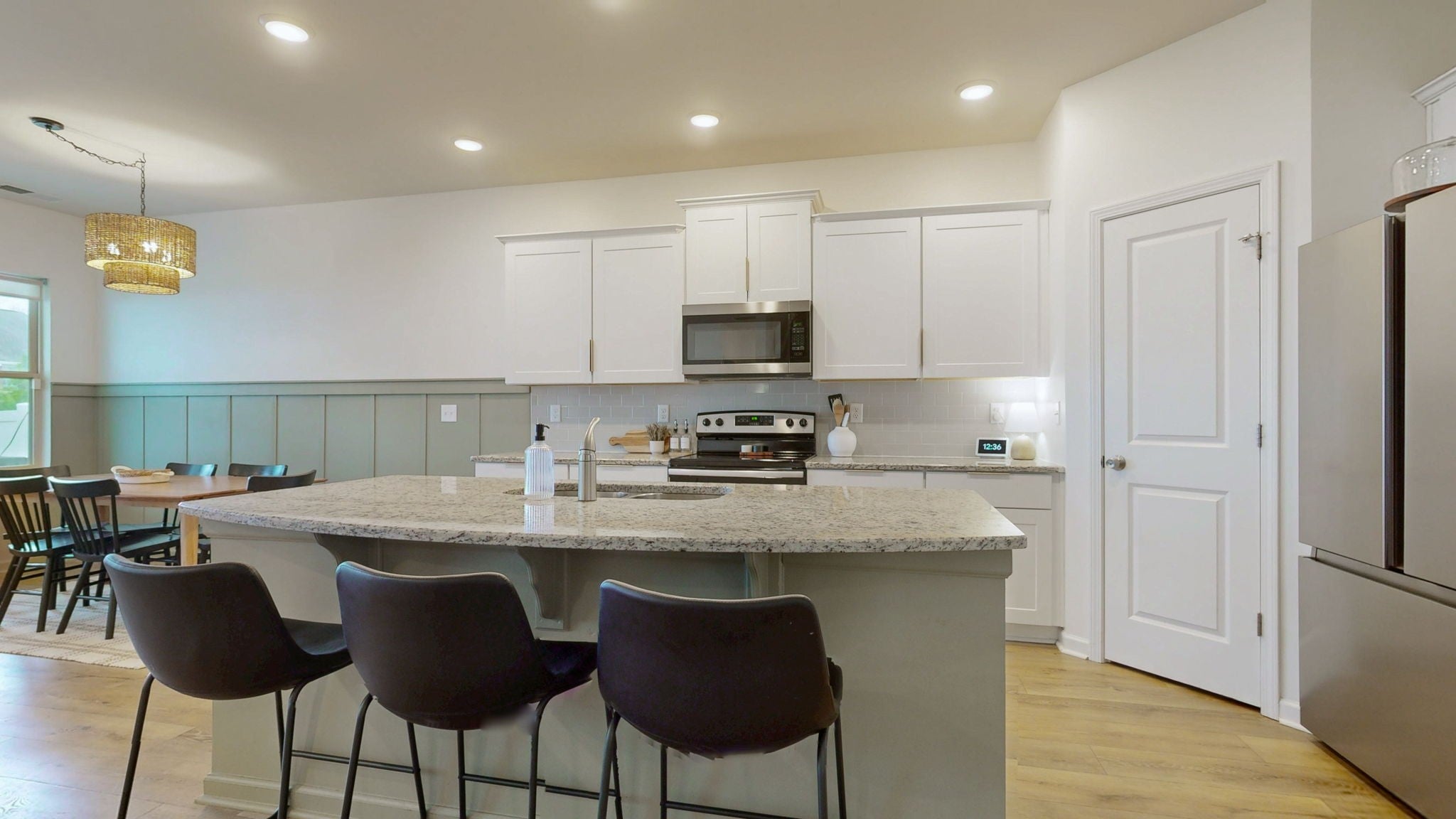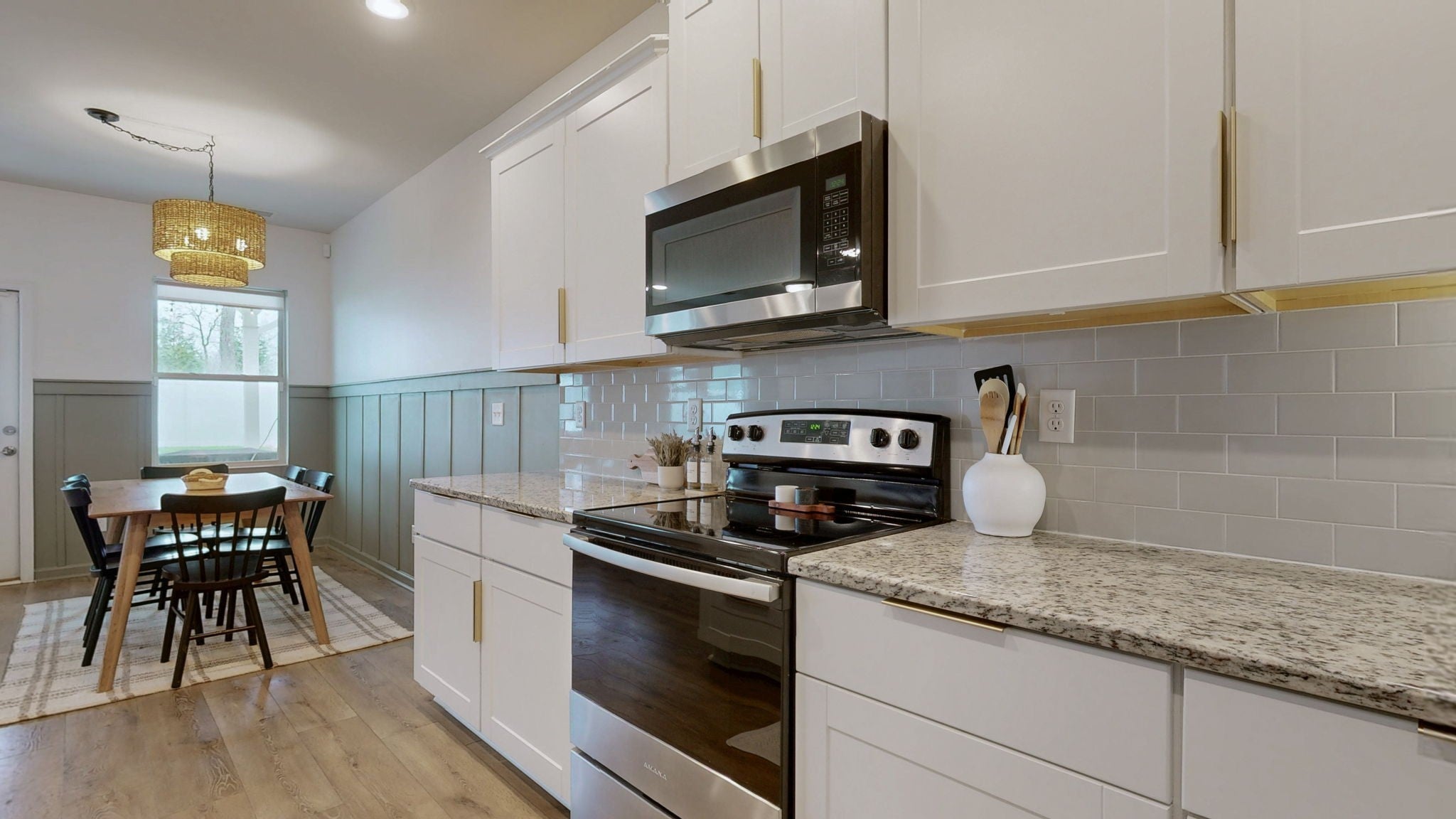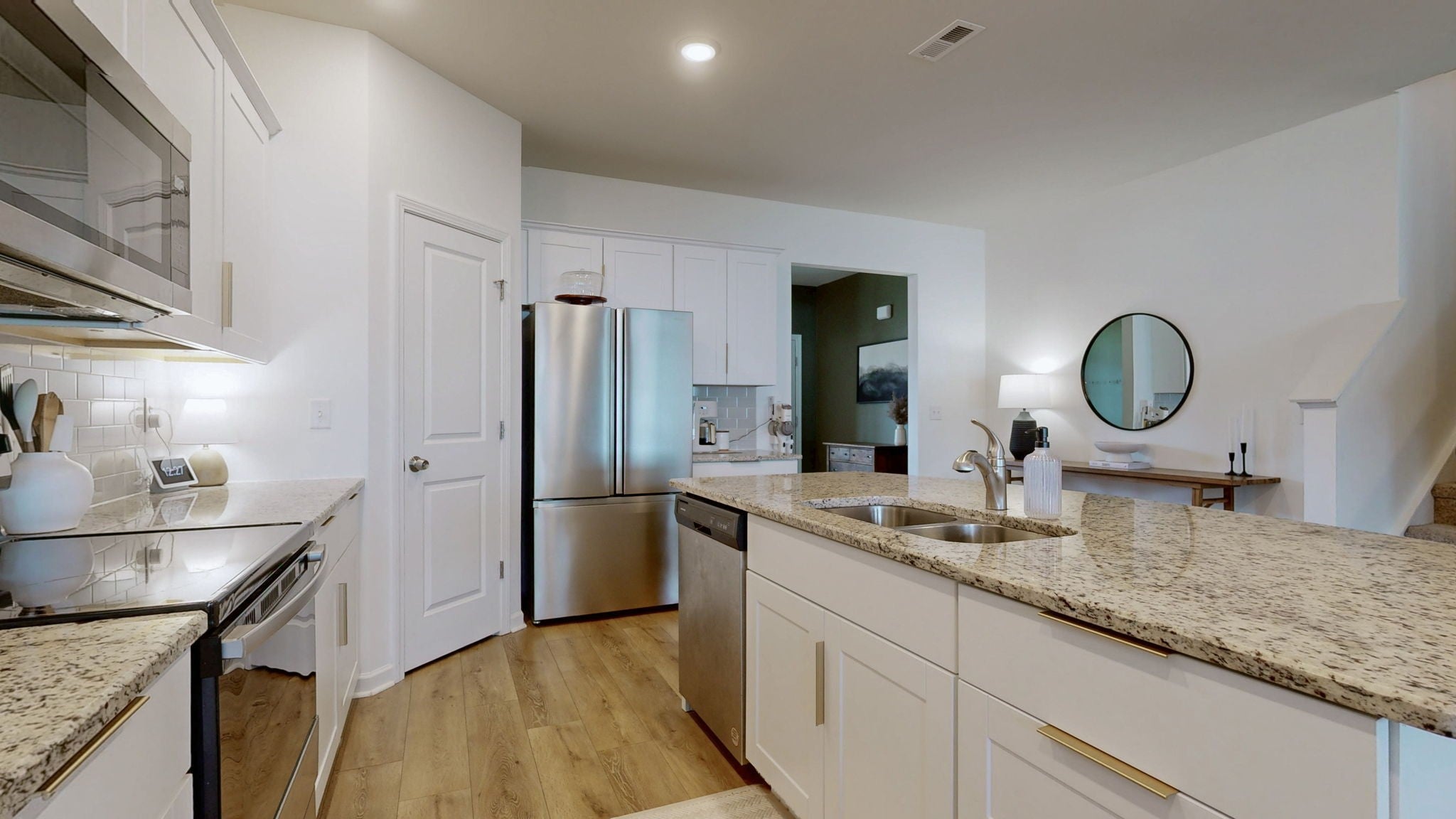 - Built-In Electric Oven, Built-In Electric Range, Dishwasher, Disposal, Microwave, Refrigerator, Stainless Steel Appliance(s)