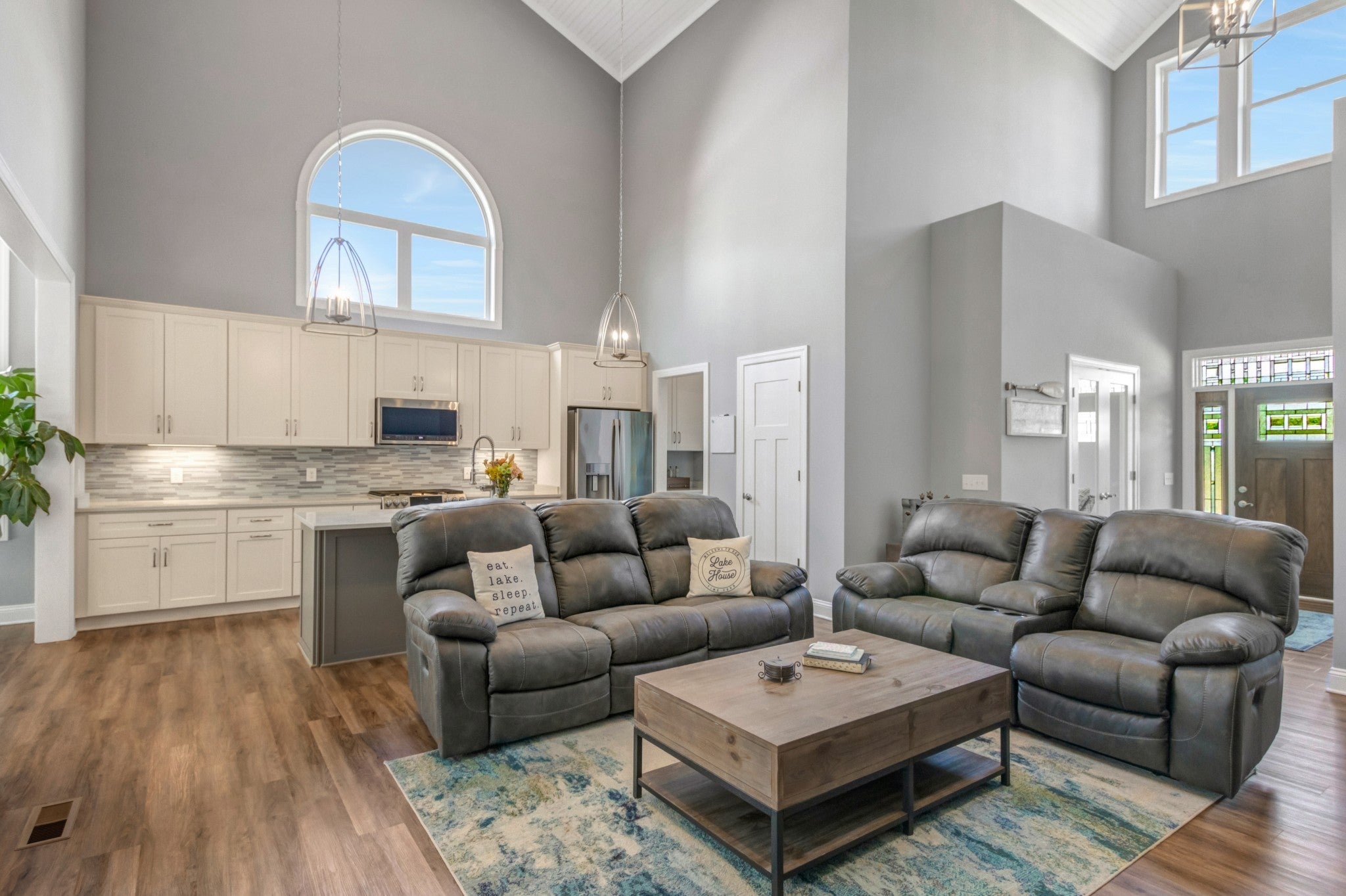 Welcome to your custom-built dream home on the water, with a community boat dock plus a boat slip. Extensive, detailed ceilings. Solid wood cabinetry with quartz tops and tile showers—primary suite on the main level with a large walk-in closet and entry door to the patio. Thoughtfully designed space with 2x6 construction and a large partially finished bonus room. Luxury vinyl plank and tile flooring. Covered porch, screened-in porch, and a large patio. Storage under the patio for lake toys and lawn equipment. Quick walk from the patio to the water, or a two-minute walk to the community boat dock and boat slip on Tim's Ford Lake—pictures taken in August 2025.
