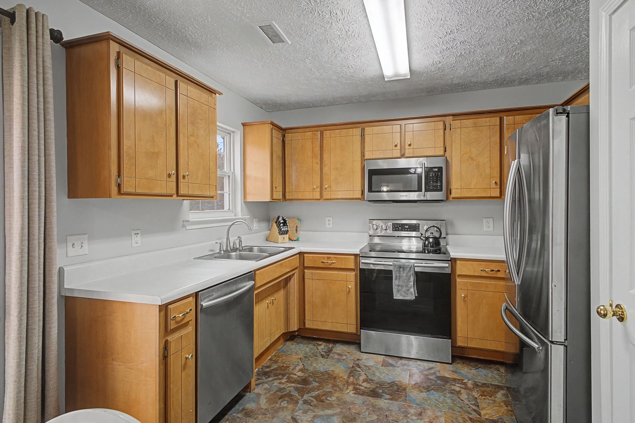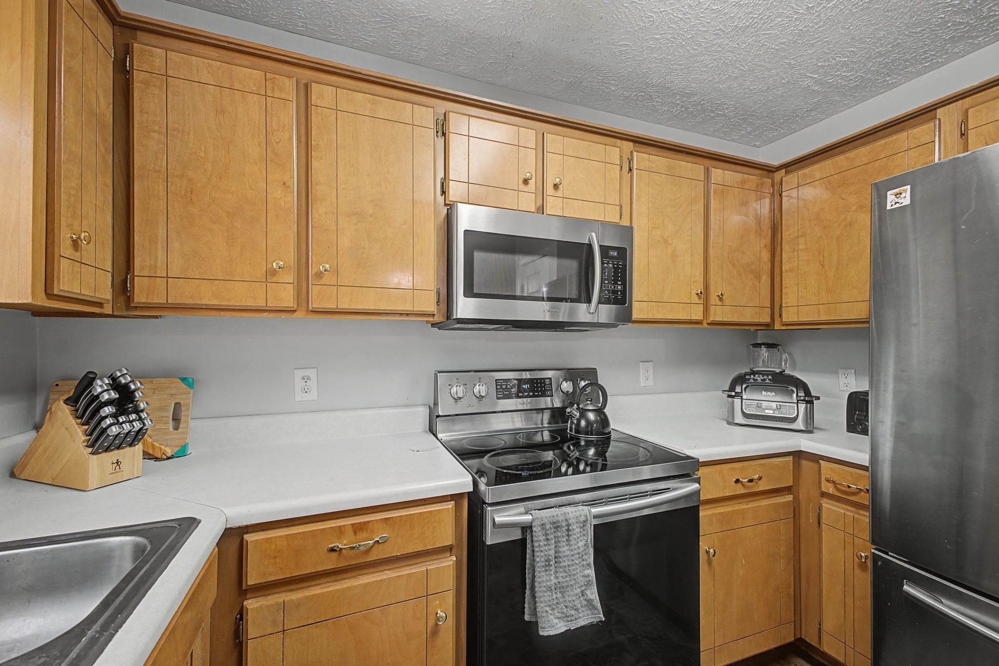 - Electric Oven, Electric Range, Dishwasher, Dryer, Refrigerator, Stainless Steel Appliance(s), Washer