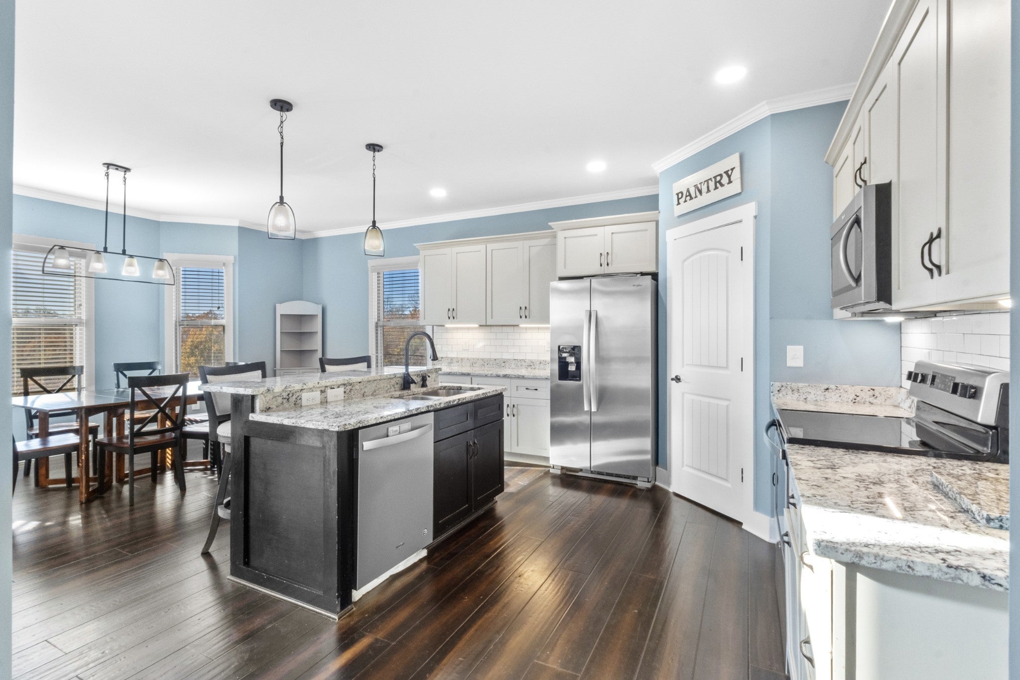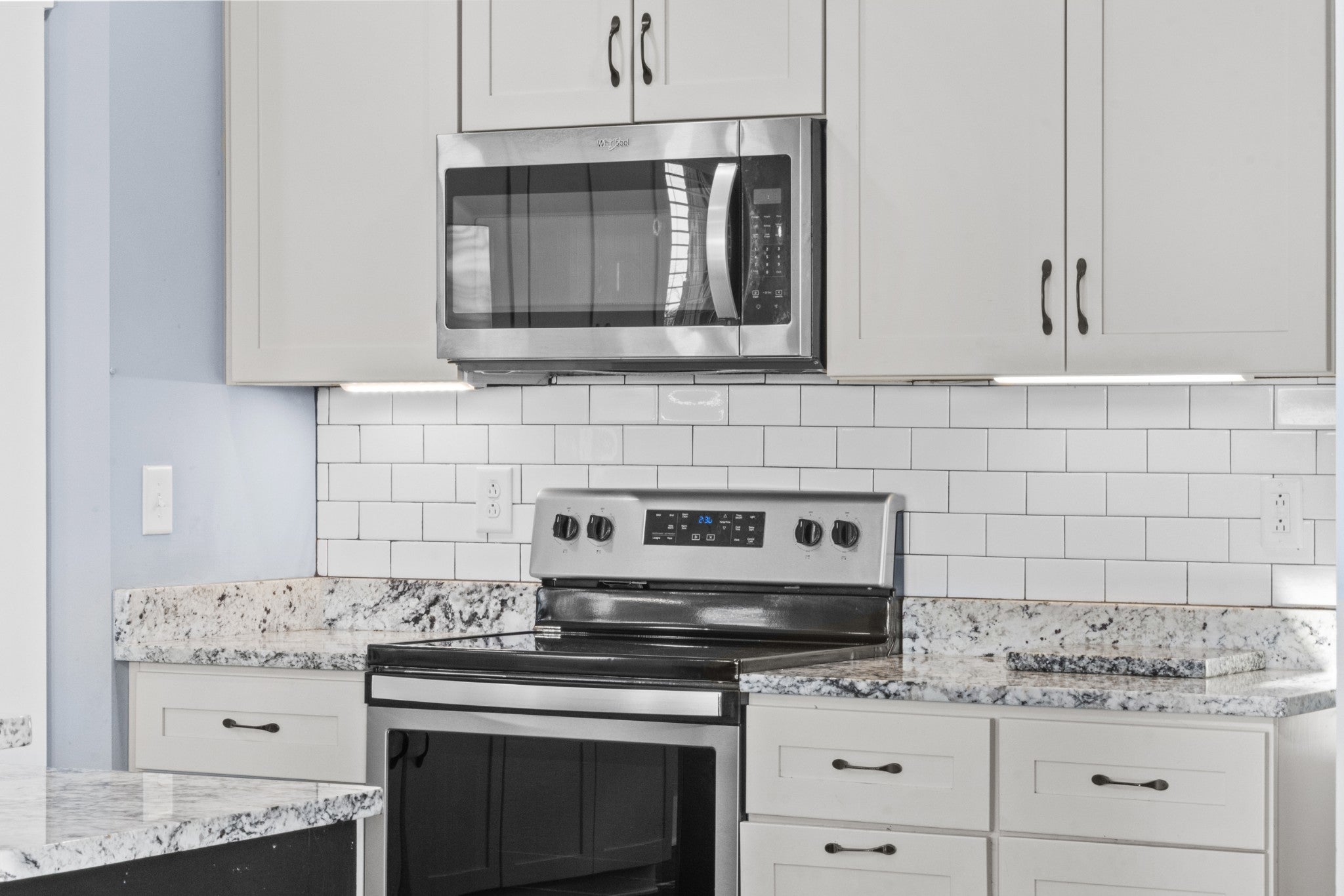 - Electric Oven, Electric Range, Dishwasher, Microwave, Refrigerator, Stainless Steel Appliance(s)