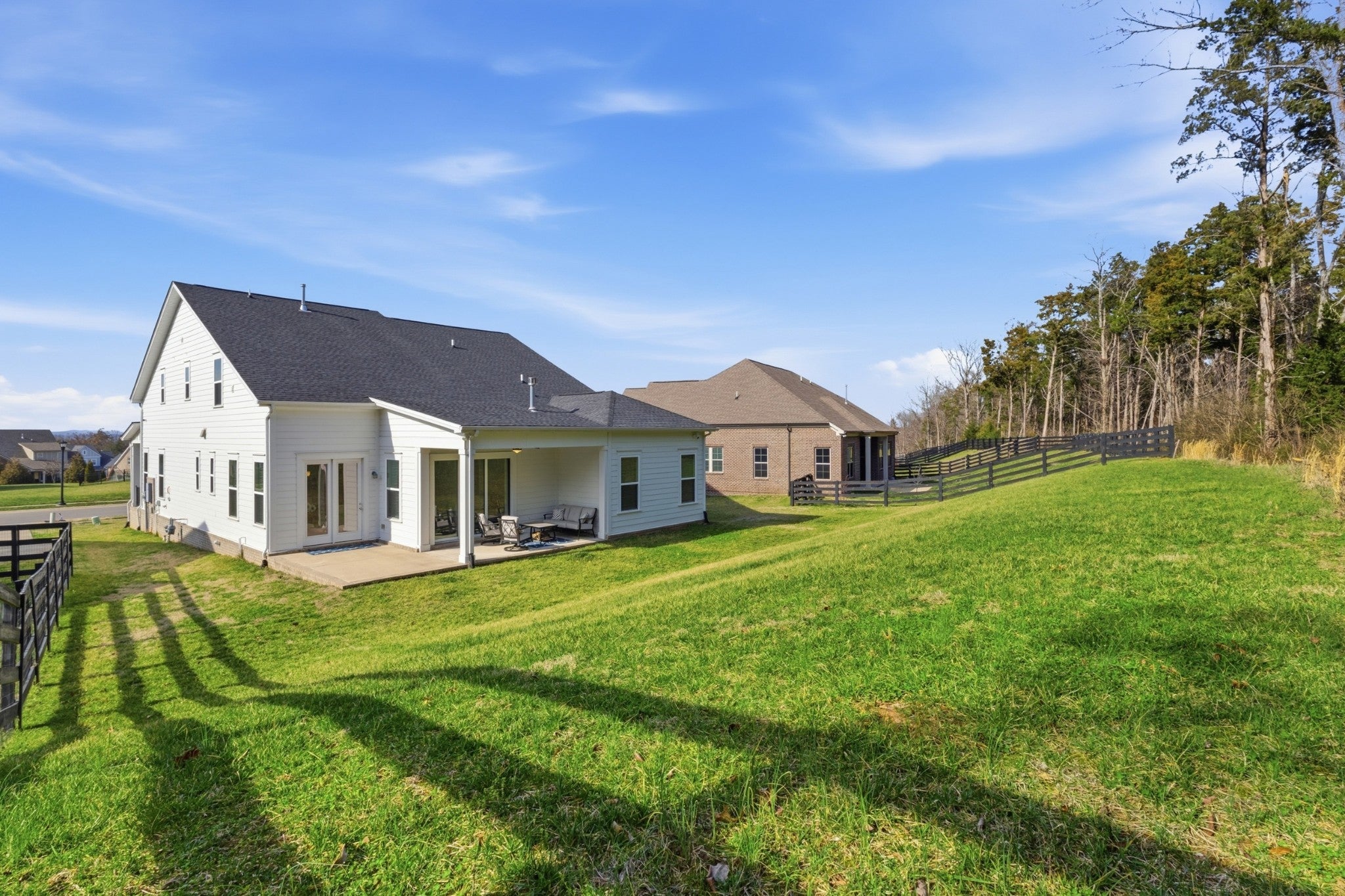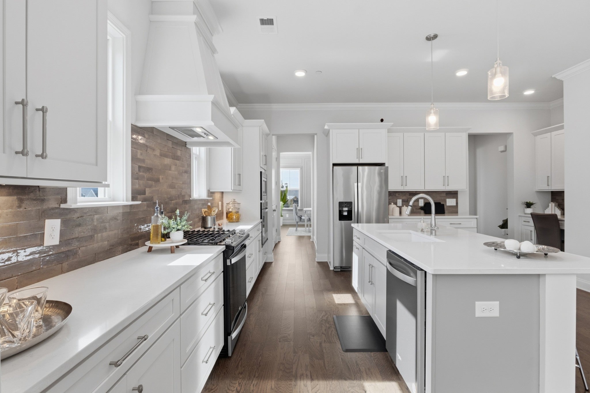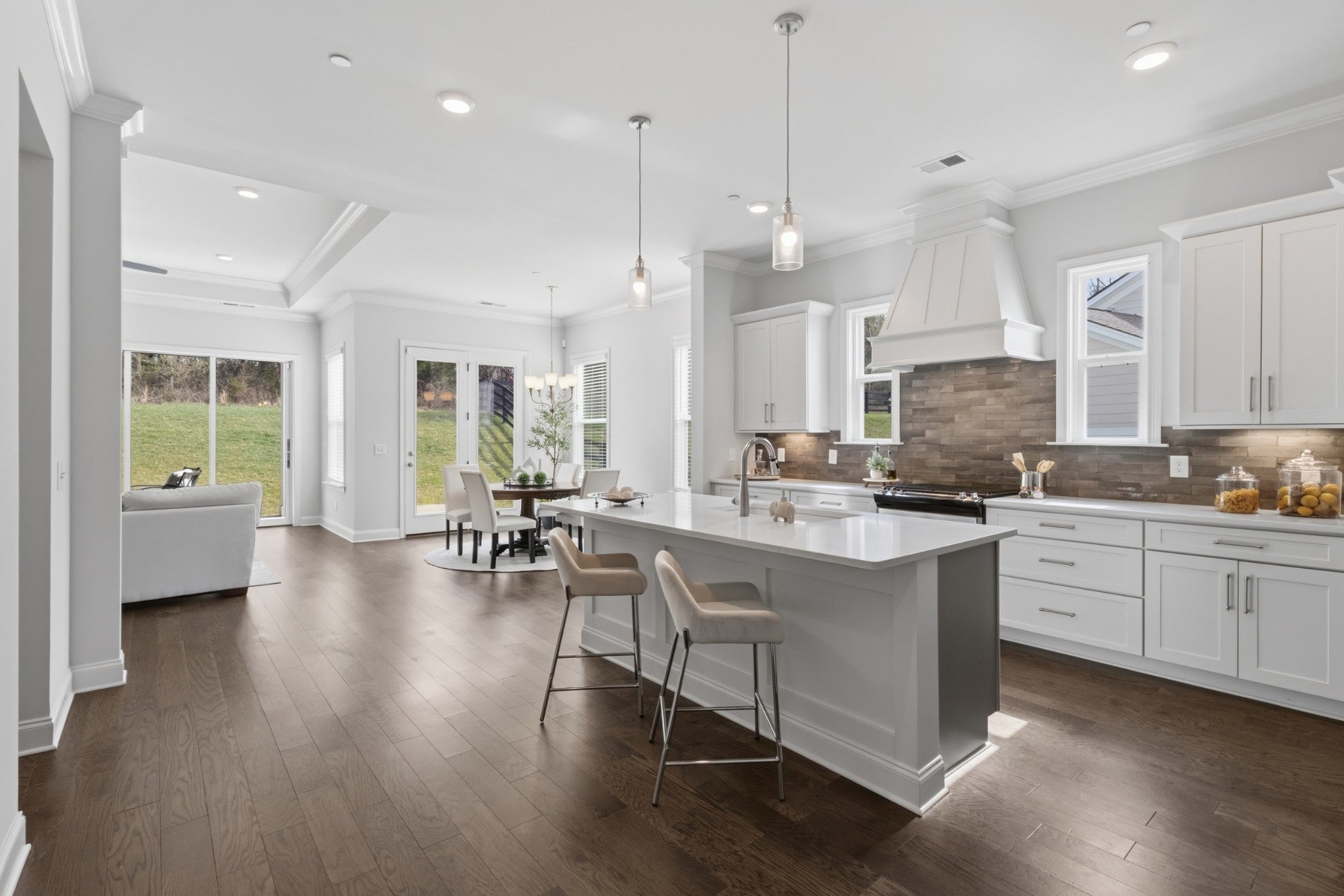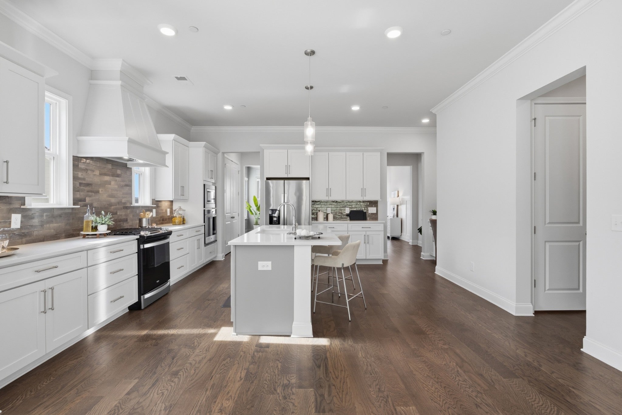 Walk to Mill Creek Elementary & Mill Creek Middle & Nolensville High School. Stunning Coastal-style Landon floorplan by Celebration Homes, features an open, airy design and upscale finishes throughout. Enjoy a rocking chair front porch overlooking a fully irrigated lawn and a home filled with natural light thanks to high ceilings throughout.. Lot is perfectly situated so you do not look directly at a neighbor. The formal entry showcases classic wainscoting, leading to a spacious great room with a gas fireplace, shiplap accent wall, and nano-wall style triple pane doors that fully open to a private, tree-lined backyard...ideal for enjoying nature or quiet evenings watching the rain. Formal dining room includes tasteful wood accents and connects to a large pantry. Open kitchen offers a large center island, stainless steel appliances, gas cooktop, double ovens, and a oversized walk-in pantry—ideal for hosting guests and everyday living. Main-level primary suite features a tray ceiling, ceiling fan, and shiplap accent wall. Primary bath includes a double vanity, soaking tub, and separate walk-in shower. Upstairs you’ll find three additional bedrooms and a large bonus room. Two bedrooms share a full bath and each has a walk-in closet. Third upstairs bedroom has a private en-suite bath and walk-in closet, perfect for guests. Bonus room has a ceiling fan and includes a separate nook ideal for a home office or gaming area. Additional highlights include: Main-level mudroom & laundry w/custom tile flooring, covered patio plus open-air patio w/ceiling fan for enhanced outdoor living, 3 car garage, high-end security system with cameras and recording & dusk to dawn exterior lighting. 3 mounted TVs remain, Located minutes from Publix Village Green, planned Nolensville Kroger, Nolensville Town Square, Arrington Vineyards, Cool Springs, Franklin, and Brentwood,. This home offers the perfect blend of high-end finishes, convenience, and top-rated schools.