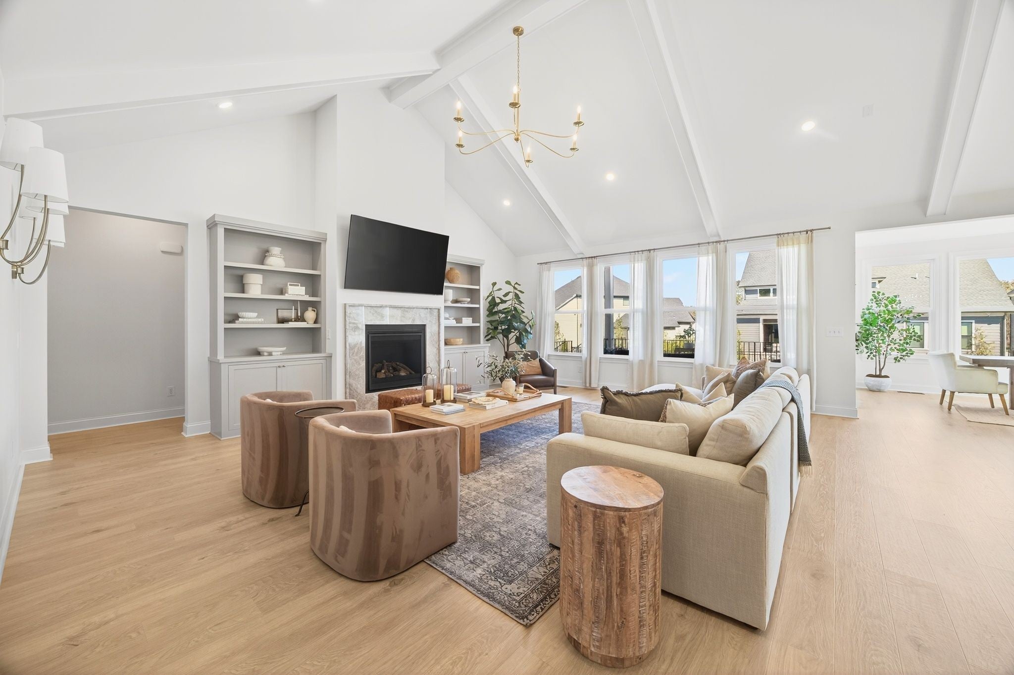 Beautifully designed home featuring an open floor plan that seamlessly connects the living, kitchen, and dining areas—perfect for both everyday living and entertaining. The vaulted living room features a cozy fireplace framed by built-ins, while the stunning kitchen is a true showpiece with a large island, farmhouse sink, quartz backsplash, upgraded appliances, double ovens, and a walk-in pantry. The adjoining dining area overlooks the spacious backyard, offering the ideal backdrop for gatherings. The main-level primary suite is a private retreat with a fireplace, custom walk-in closet, and spa-inspired ensuite featuring double vanities, a soaking tub, and a separate shower. A dedicated office and a guest bedroom with private bath complete the main floor. Upstairs, a versatile loft/bonus room anchors three spacious bedrooms—all with custom closets—including a Jack-and-Jill bath shared by two rooms. Throughout the home, you’ll find lots of upgrades such as roman shades and curtains, designer light fixtures, enhanced bathroom mirrors, surround sound, and a whole-home water filtration system. Additional features include a covered patio and concrete pad in the backyard and a three-car side-entry garage with built ins. Nestled in a scenic community offering tennis/pickleball courts, a playground, and walking trails, this home combines comfort with convenience—just minutes from 840. Homeowners have the option to join Kings Chapel Club, for an extra fee, to have access to a resort-style pool, clubhouse, fitness room, restaurant, and club parties/events..