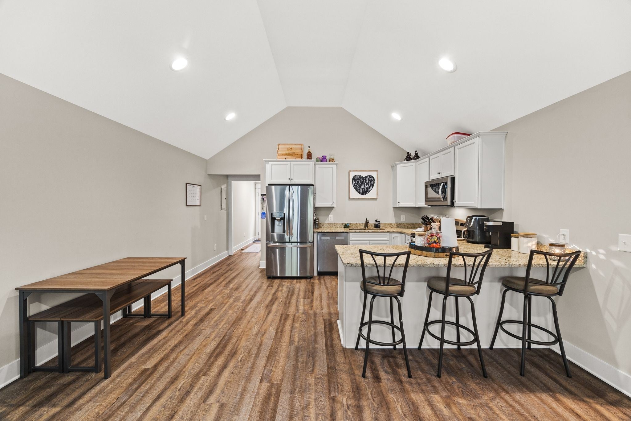Welcome home to this beautiful 3-bedroom, 2-bath single-level home built in 2023, perfectly located just minutes from Buckner Park, Hensley Park, the Dickson splash pad, and all the local favorites near downtown Dickson. Nestled on a level, partially wooded lot, this home offers a bright and open layout designed for both relaxing and entertaining. The kitchen steals the show with crisp white shaker cabinets, soft-close doors and drawers, gleaming granite countertops, and stainless steel appliances — the perfect blend of modern style and everyday function. Unwind in the spacious primary suite featuring a luxurious walk-in shower and thoughtful touches like wood shelving in every closet and a large laundry room with extra storage space. Whether you're hosting friends, enjoying a quiet evening at home, or exploring all the parks and dining nearby, this home puts you right where you want to be — in the heart of Dickson.