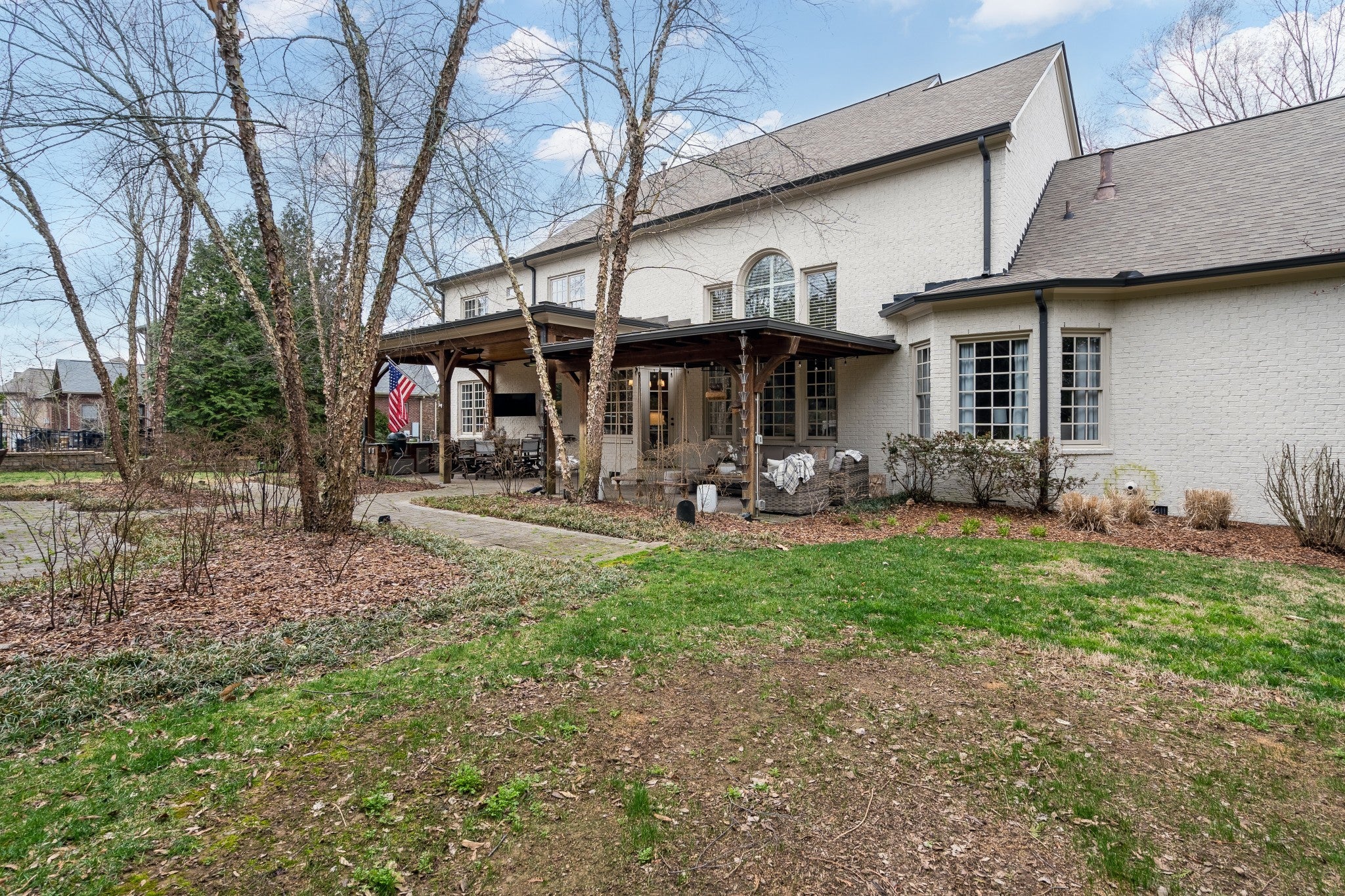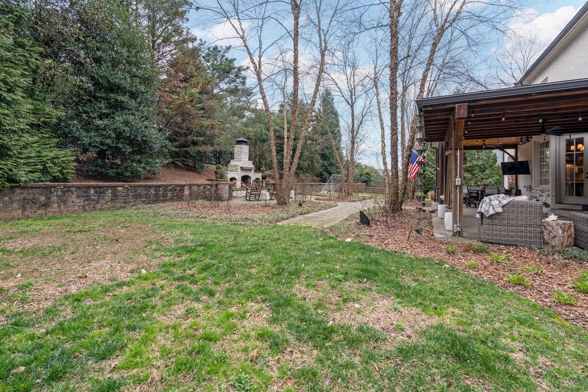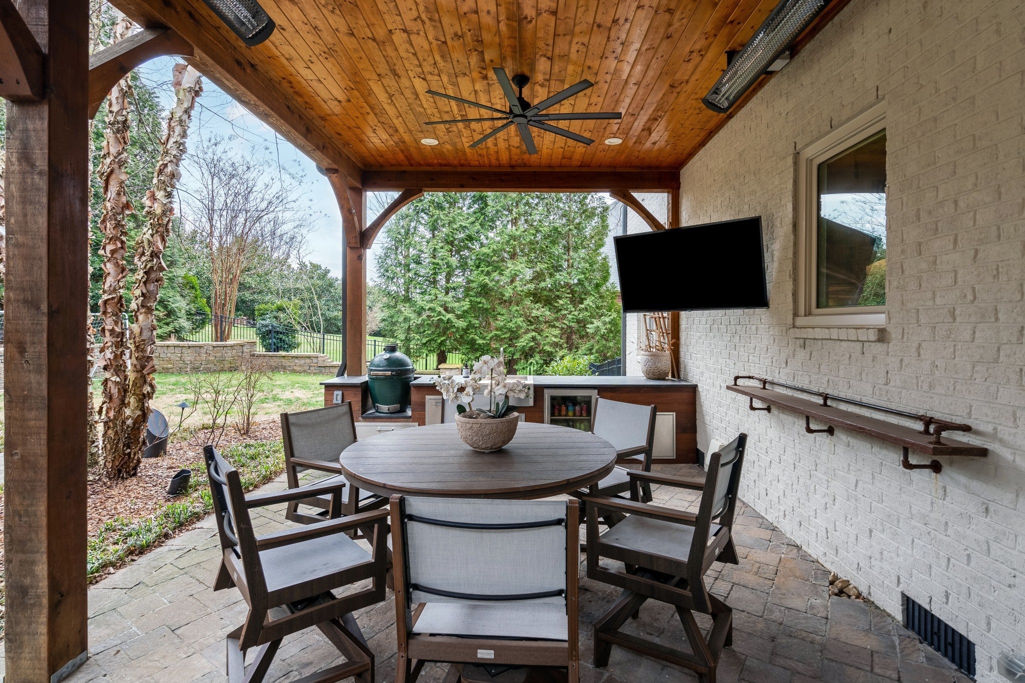 Welcome to elevated living in Brentwood’s highly desirable Taramore community. This beautifully updated home blends refined design with exceptional indoor-outdoor living, creating a space that is both elegant and inviting. Step into your private backyard retreat, thoughtfully designed for entertaining and relaxation. The covered patio features a fully equipped outdoor kitchen with Green Egg, refrigerator, sink, gas line for grill, and gas-start fireplace. Built-in Bromic heaters, mounted TVs, ceiling fans, and ambient café lighting create a warm atmosphere year-round. Professionally maintained irrigation, custom landscape lighting, and a fenced backyard complete this stunning outdoor space. Inside, sophisticated upgrades elevate every room. The media room showcases a striking wood accent wall and an impressive 85” TV that remains with the home. Built-in surround sound flows throughout the interior and backyard, complemented by a fully integrated Google Home system. Designer lighting, custom wallpaper in the dining and laundry rooms, and elegant finishes add style and character throughout. The spacious kitchen is designed for both beauty and function, featuring a five-burner gas range, butcher block island, and entertainer’s bar with beverage and wine refrigerators. Additional improvements include renovated upstairs baths, new washer and dryer (2023), all toilets replaced (2024), fresh white exterior paint (2024), custom drapery, built-in storage in the primary suite, utility sinks in the laundry and garage, and optional inclusion of mounted TVs. Residents enjoy resort-style Taramore amenities including pool with slide, historic mansion clubhouse with fitness center, tennis and pickleball courts, playground, stocked fishing pond, sidewalks, and scenic walking trails. This is Brentwood living at its finest.