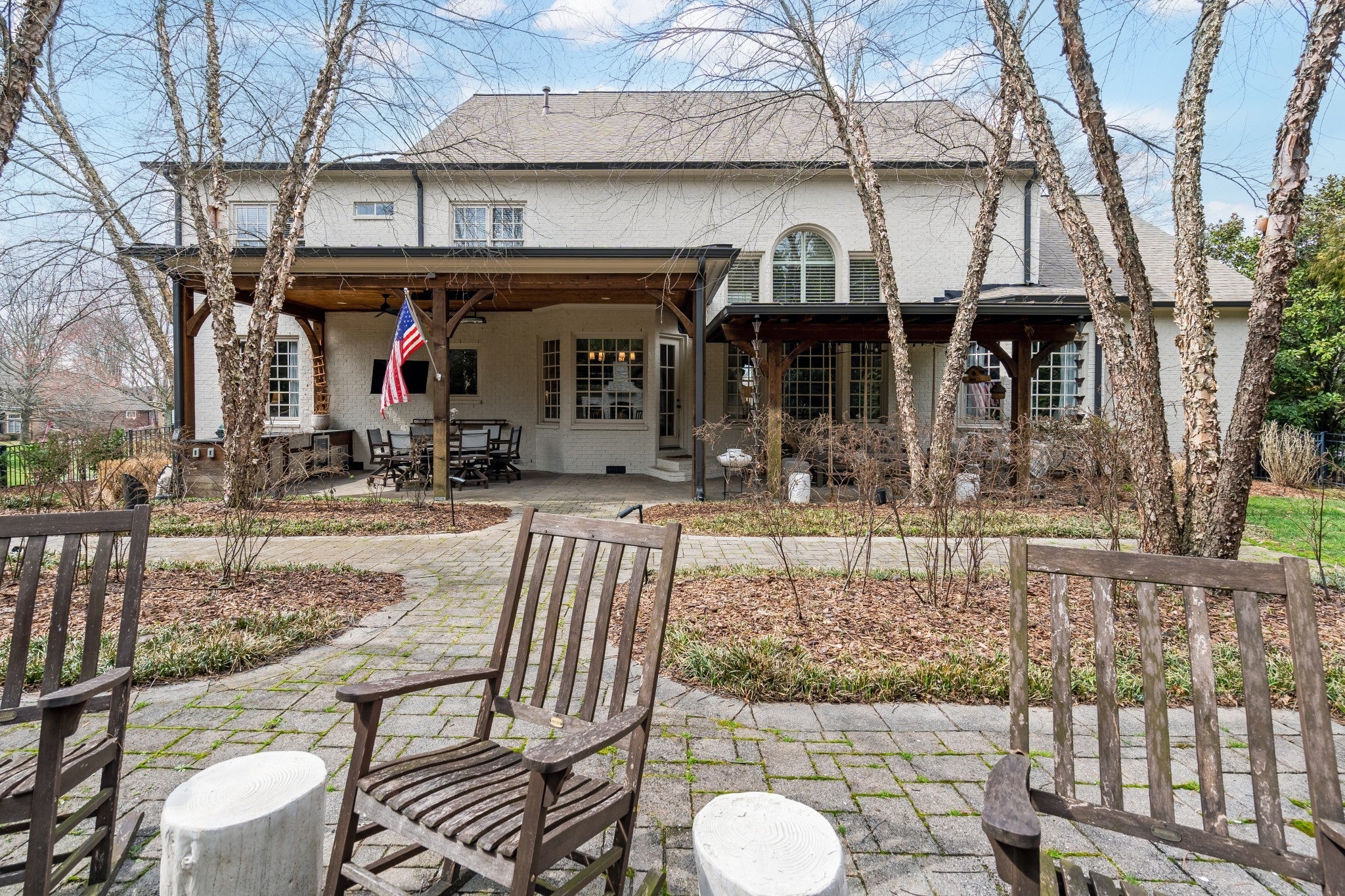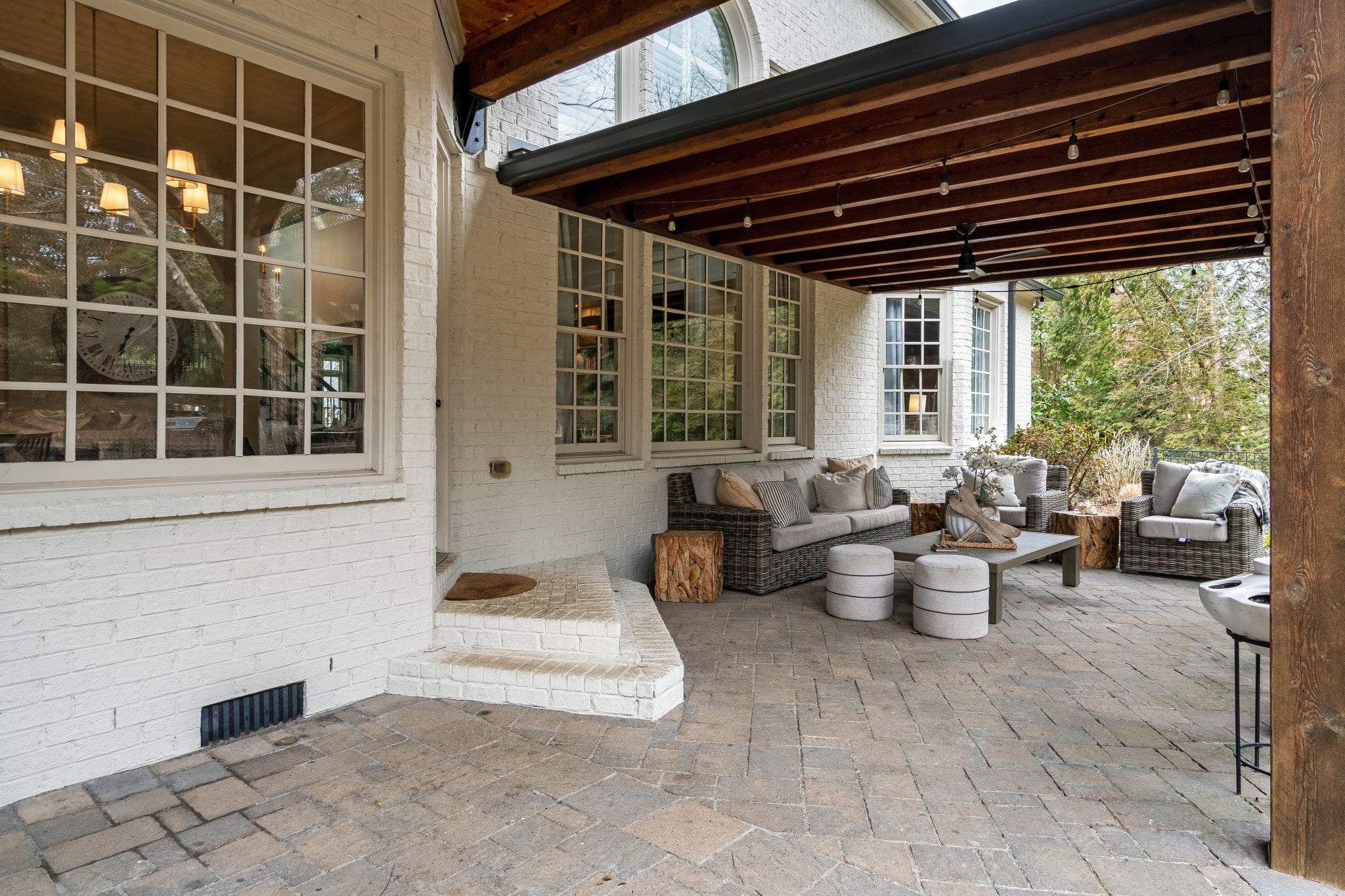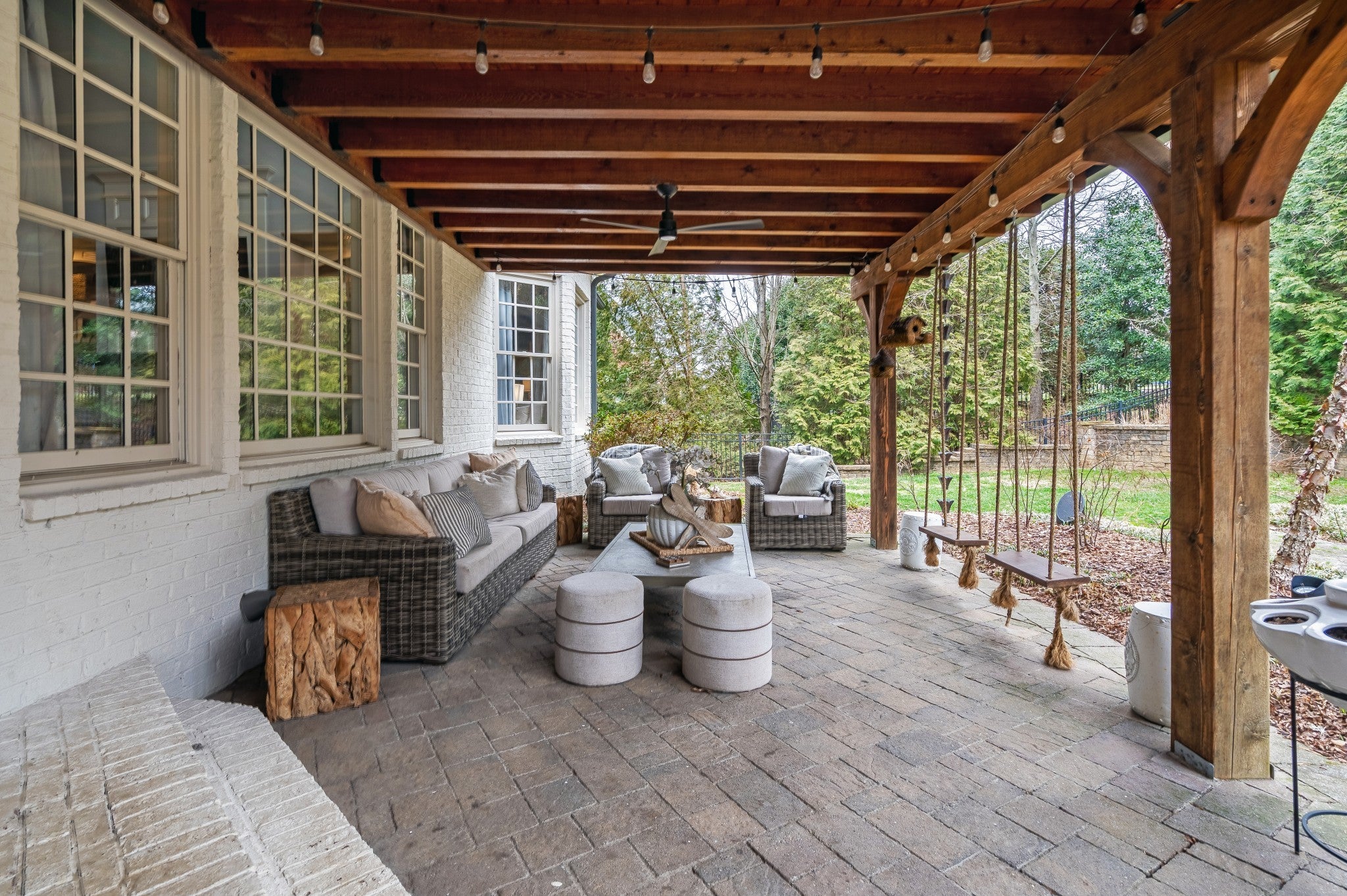 Welcome to elevated living in Brentwood’s highly desirable Taramore community. This beautifully updated home blends refined design with exceptional indoor-outdoor living, creating a space that is both elegant and inviting. Step into your private backyard retreat, thoughtfully designed for entertaining and relaxation. The covered patio features a fully equipped outdoor kitchen with Green Egg, refrigerator, sink, gas line for grill, and gas-start fireplace. Built-in Bromic heaters, mounted TVs, ceiling fans, and ambient café lighting create a warm atmosphere year-round. Professionally maintained irrigation, custom landscape lighting, and a fenced backyard complete this stunning outdoor space. Inside, sophisticated upgrades elevate every room. The media room showcases a striking wood accent wall and an impressive 85” TV that remains with the home. Built-in surround sound flows throughout the interior and backyard, complemented by a fully integrated Google Home system. Designer lighting, custom wallpaper in the dining and laundry rooms, and elegant finishes add style and character throughout. The spacious kitchen is designed for both beauty and function, featuring a five-burner gas range, butcher block island, and entertainer’s bar with beverage and wine refrigerators. Additional improvements include renovated upstairs baths, new washer and dryer (2023), all toilets replaced (2024), fresh white exterior paint (2024), custom drapery, built-in storage in the primary suite, utility sinks in the laundry and garage, and optional inclusion of mounted TVs. Residents enjoy resort-style Taramore amenities including pool with slide, historic mansion clubhouse with fitness center, tennis and pickleball courts, playground, stocked fishing pond, sidewalks, and scenic walking trails. This is Brentwood living at its finest.