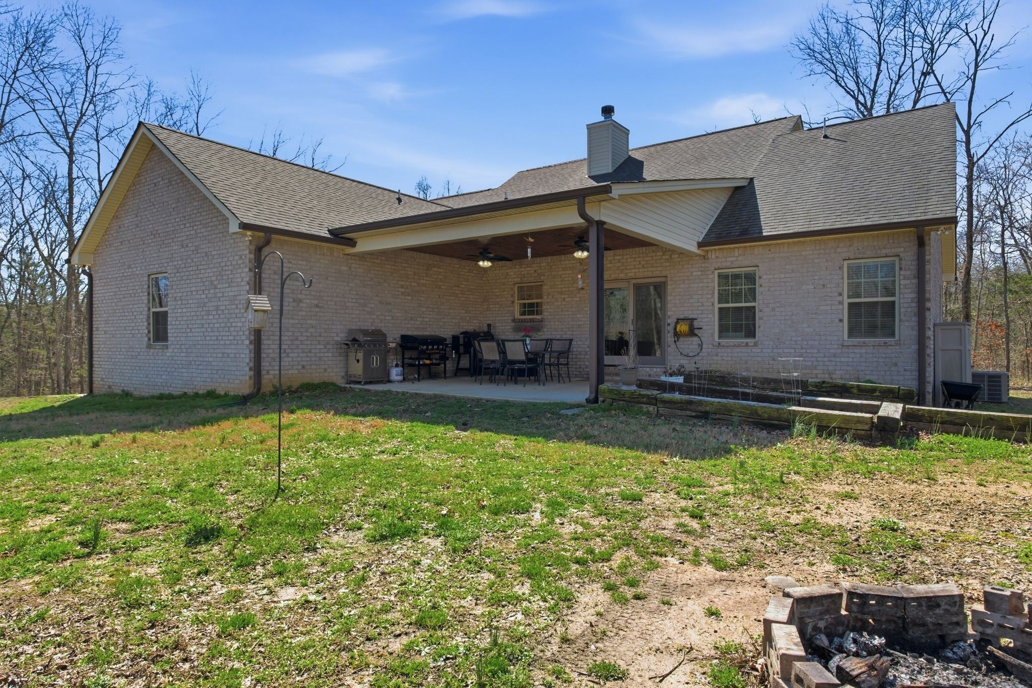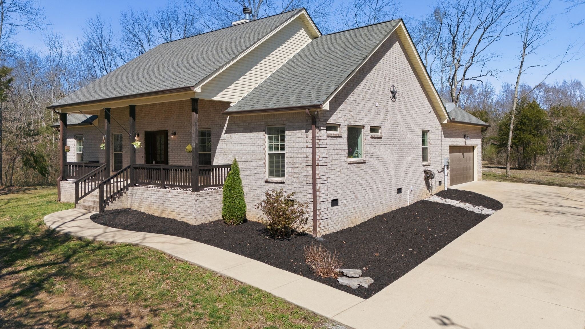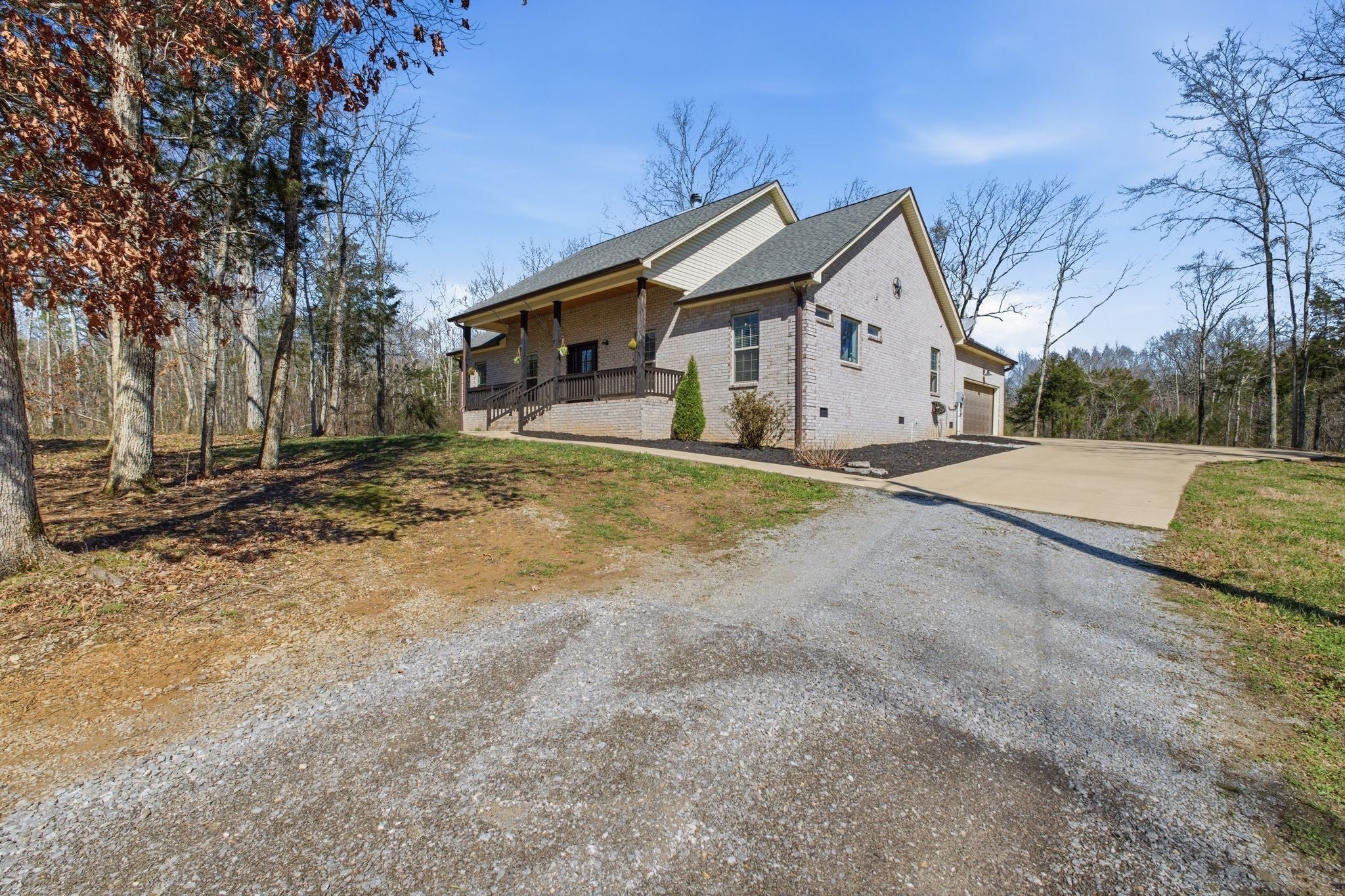 Beautiful all brick home with custom finishes and sits on 16 +/- acs of woods for privacy. Enjoy your mornings or evenings on the back covered patio and look out over your property in the peace and quiet. Home features a 3BR 3BA w/open concept of living. A flex room adds versatility and can be used as a home office, playroom, or additional living space. Kitchen offers white shaker cabinets w/island, stainless appls, granite counter tops & open eat-in kitchen. The living room is warm and inviting with a stacked stone wood-burning fireplace and high ceilings. Retreat to the oversized primary suite with high ceilings, an en-suite bath complete with a tile shower, soaking tub and double vanities and lots of natural light. Hardwoods through out and tile in baths. Country living at its best and just mintues to Carthage or Lebanon.