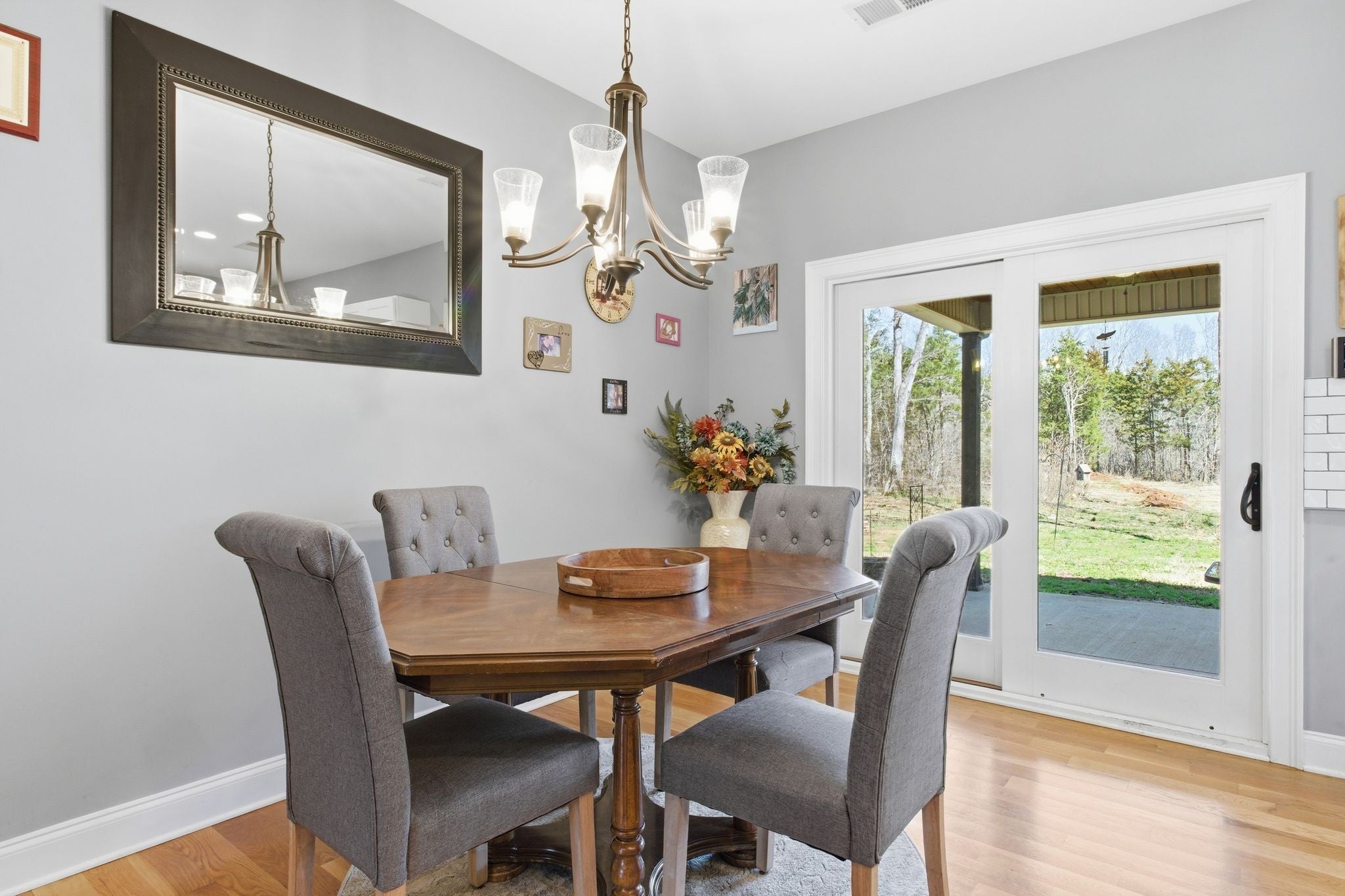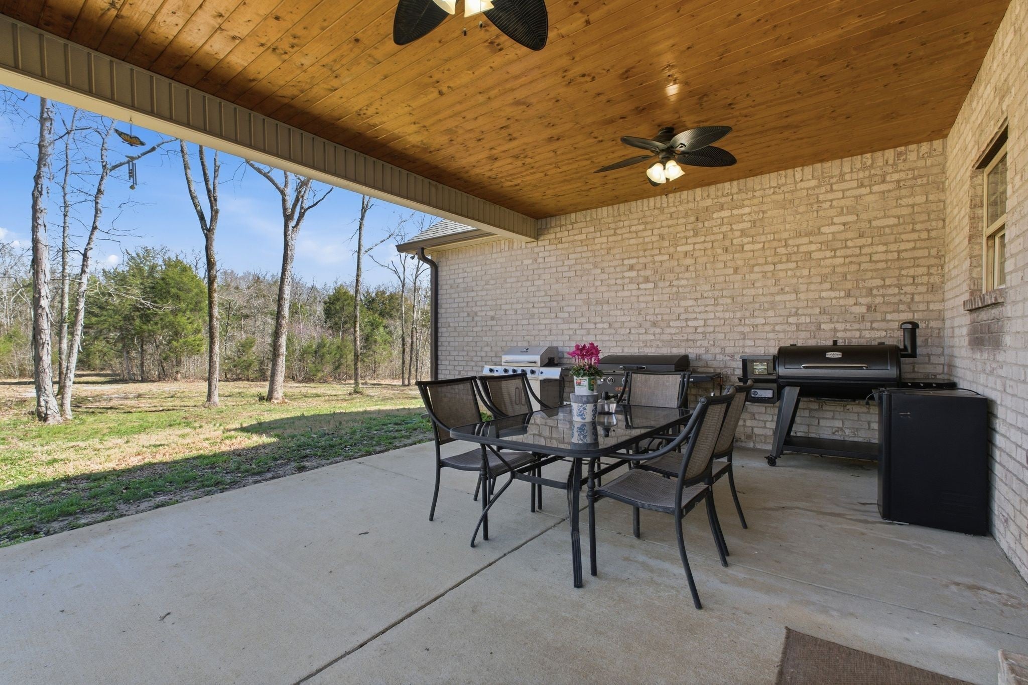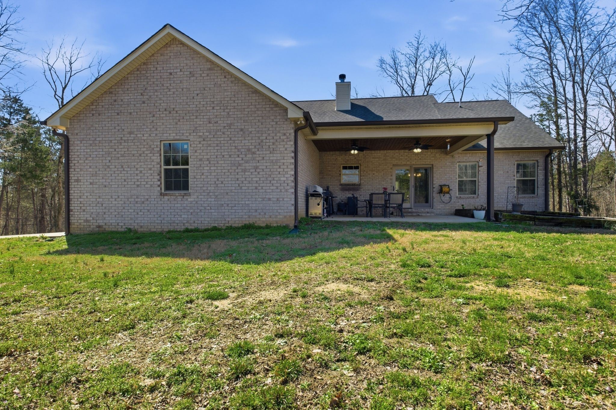 Beautiful all brick home with custom finishes and sits on 16 +/- acs of woods for privacy. Enjoy your mornings or evenings on the back covered patio and look out over your property in the peace and quiet. Home features a 3BR 3BA w/open concept of living. A flex room adds versatility and can be used as a home office, playroom, or additional living space. Kitchen offers white shaker cabinets w/island, stainless appls, granite counter tops & open eat-in kitchen. The living room is warm and inviting with a stacked stone wood-burning fireplace and high ceilings. Retreat to the oversized primary suite with high ceilings, an en-suite bath complete with a tile shower, soaking tub and double vanities and lots of natural light. Hardwoods through out and tile in baths. Country living at its best and just mintues to Carthage or Lebanon.