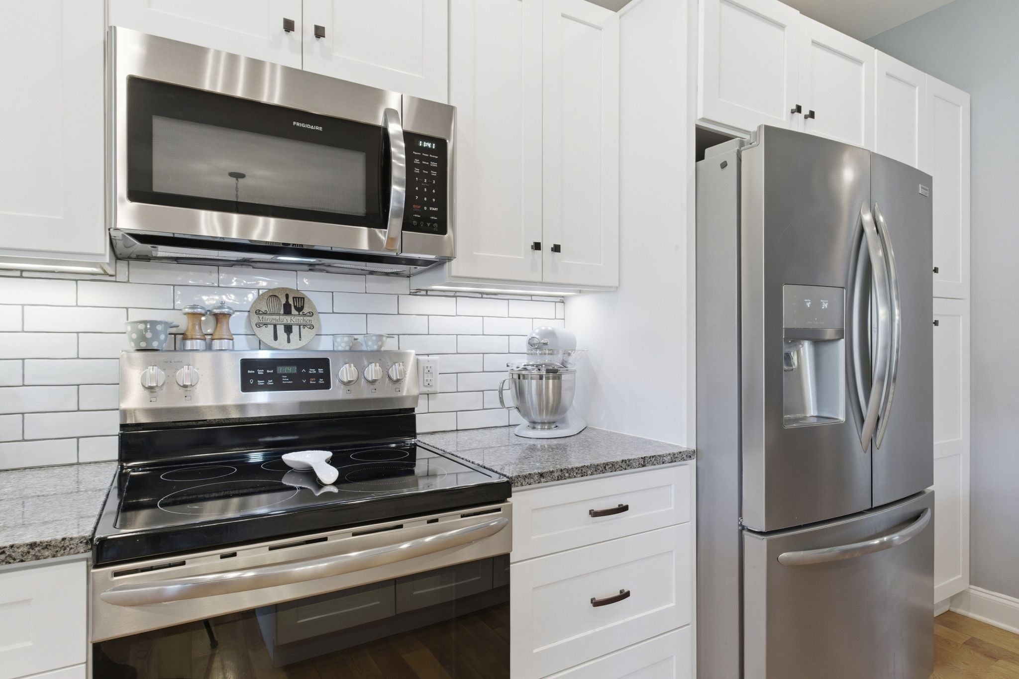 - Built-In Electric Oven, Built-In Electric Range, Microwave, Refrigerator, Stainless Steel Appliance(s)