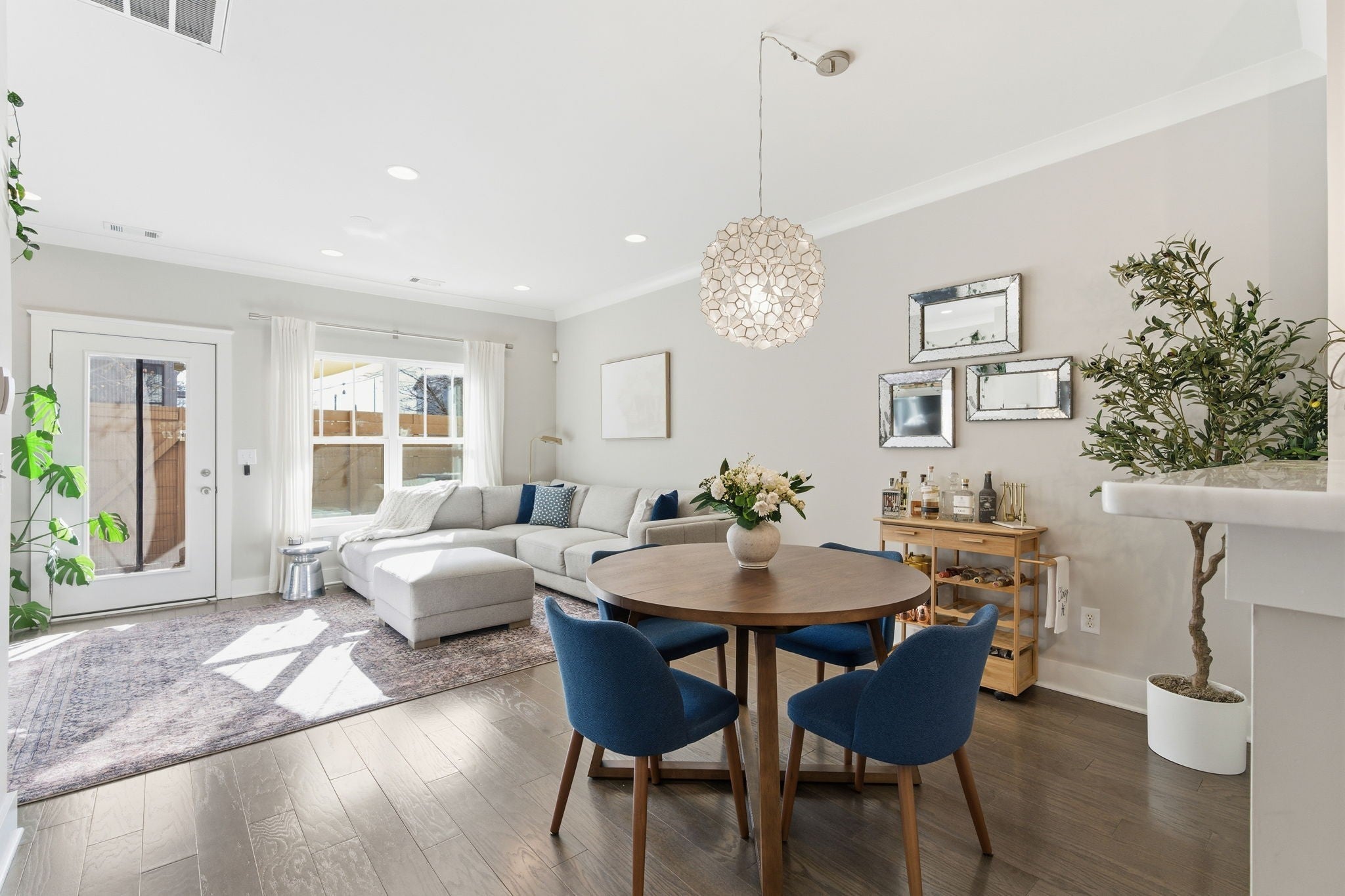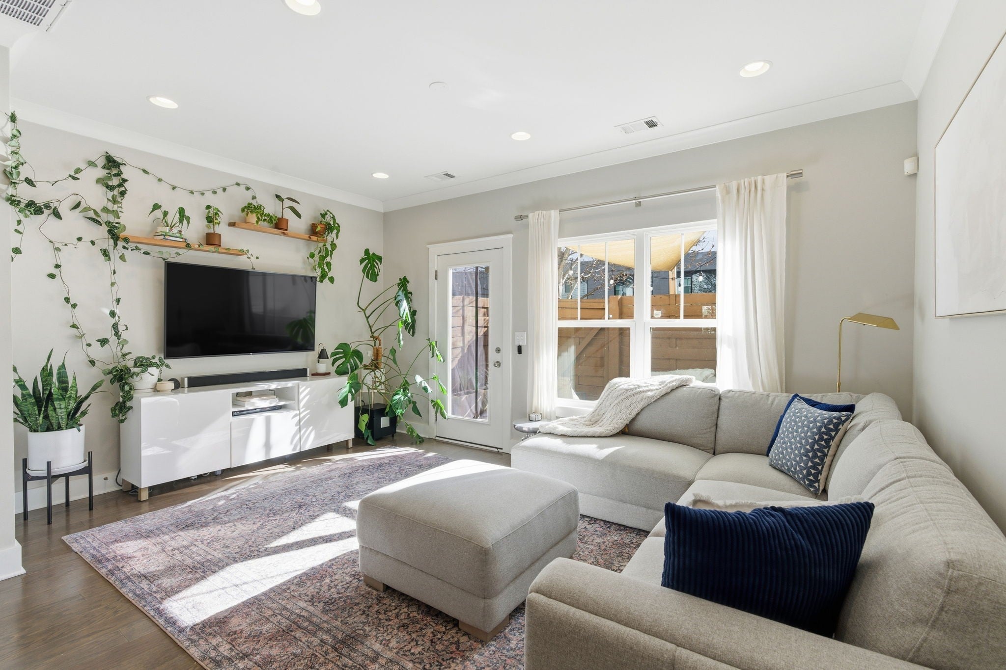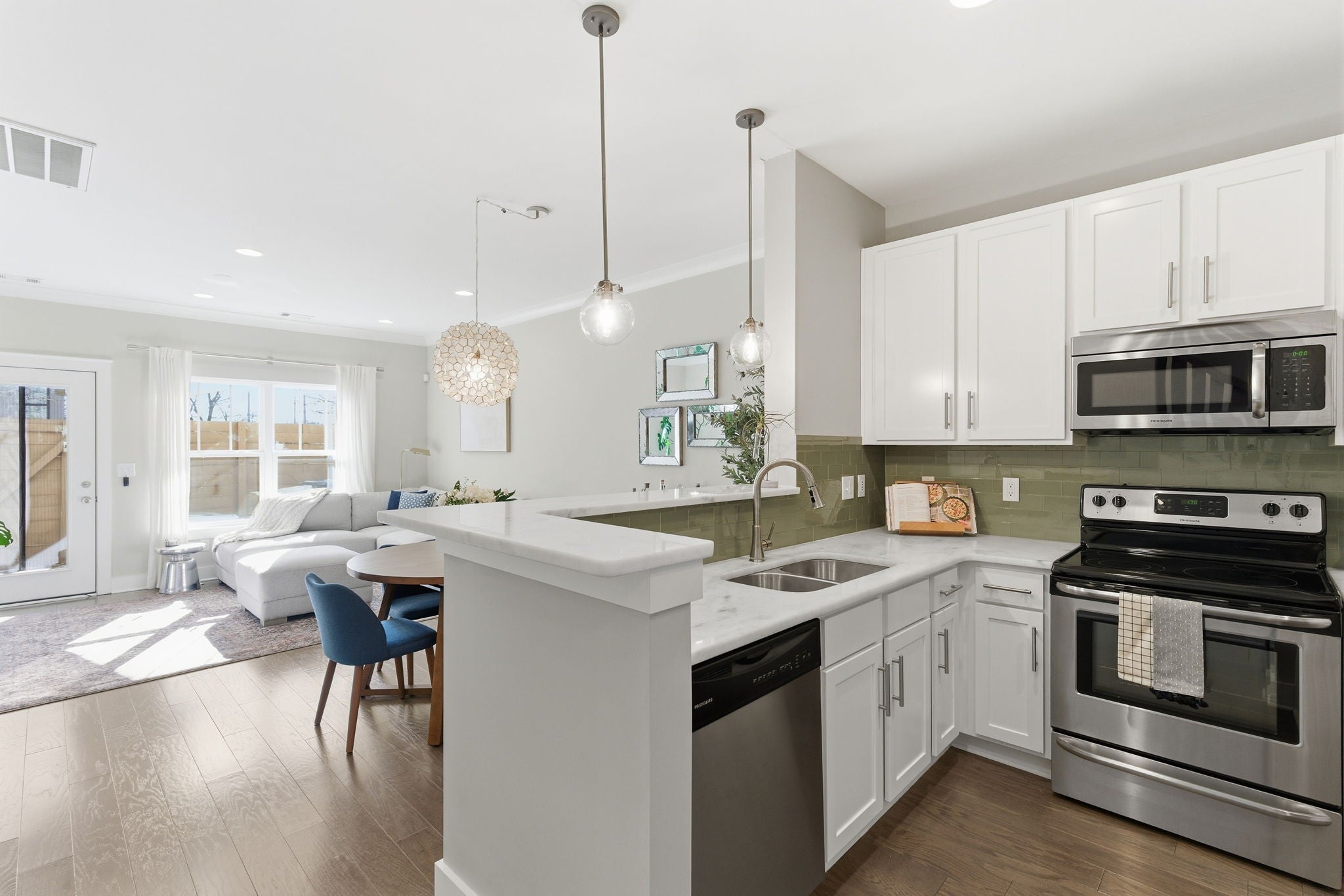 Step inside this beautiful, open townhome in the Nations! Tucked into a quiet corner of the community, this unit offers rare privacy with no other townhomes directly in front of or behind. The main level greets you with a bright kitchen with white cabinets and countertops with a charming green tile backsplash. An open concept layout flows into the dining and the living space from there. Step out to the patio where you can relax, grill and enjoy the sunshine! Upstairs, you will find two bedrooms with an ensuite bathroom and space for privacy with the primary bedroom featuring vaulted ceilings. Upgrades include recessed lighting in the living room and a custom closet in the primary bedroom that's truly an organizer's dream! The perfect spot for walkability to countless restaurants, shopping and coffee shops! Walk to Urban Dog Bar, Maru Sushi, Frothy Monkey, 51st Deli, Nicky’s Coal Fired Pizza, Jeni’s Ice Cream and more than I can list! The neighborhood pool is open for you to enjoy from April to October!