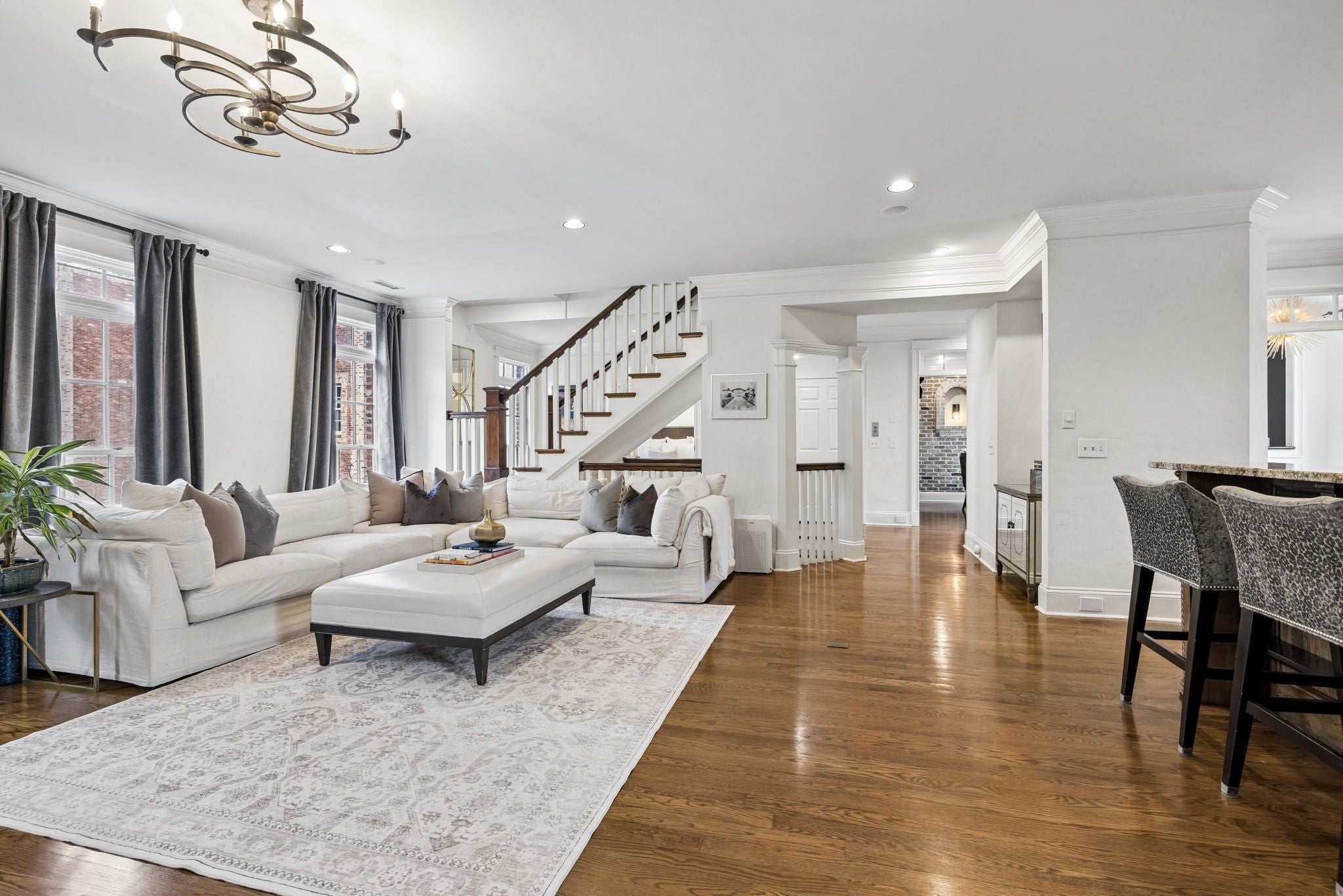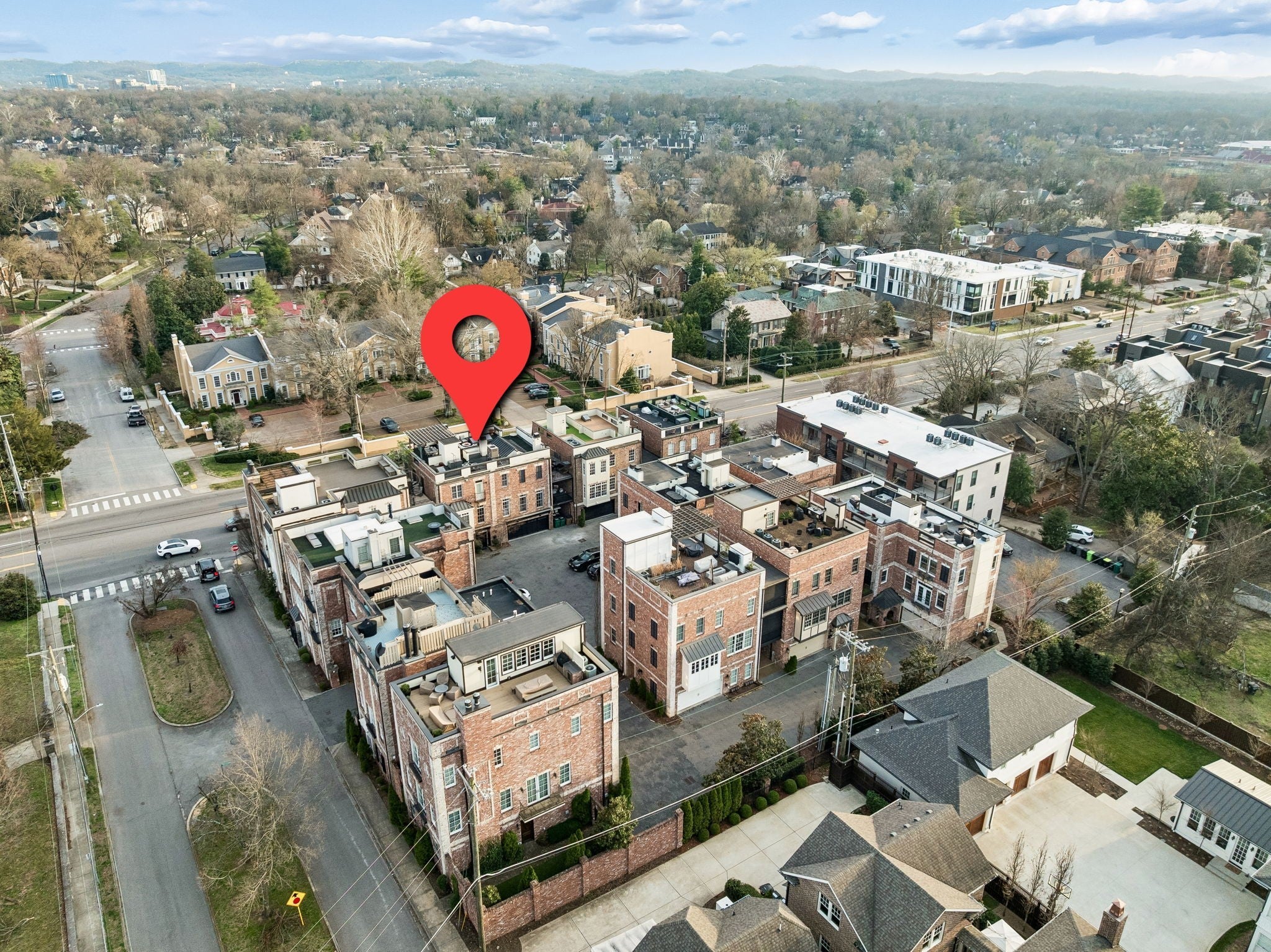 Showings Begin on Saturday, March 14th! Experience refined urban living in this exceptional brownstone located in the highly sought-after West End of Nashville. Offering 4,001 square feet of thoughtfully designed space across three expansive levels, this 4-bedroom, 4 full and 1 half-bath residence blends timeless architectural character with modern luxury—complete with private elevator access to all floors. Rich exposed brick accents and sophisticated finishes set the tone throughout the home, while three wet bars provide the perfect setting for effortless entertaining on every level. Wine enthusiasts will appreciate the impressive 600-bottle wine cellar—an elegant showcase for any curated collection. Outdoor living is equally exceptional, featuring two private porches and a stunning rooftop terrace ideal for hosting gatherings or enjoying serene sunset views. Whether relaxing with friends or entertaining on a grand scale, this home was designed to elevate every occasion. Located within an exclusive gated community in the heart of West End, this brownstone offers privacy, security, and immediate access to premier dining, entertainment, and cultural attractions—truly capturing the Nashville lifestyle at its finest. This is luxury city living without compromise.
