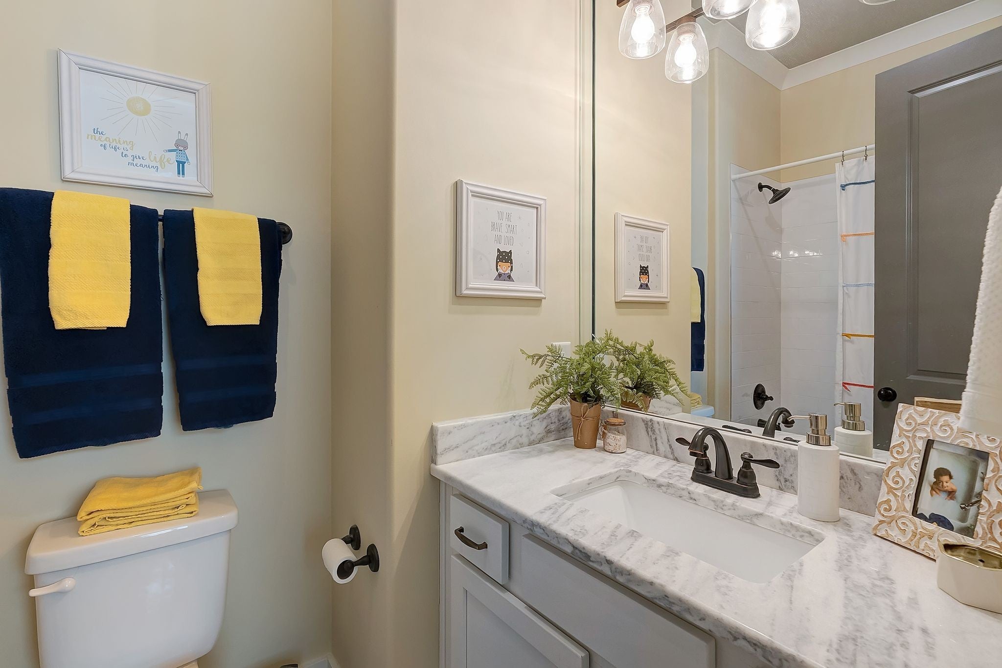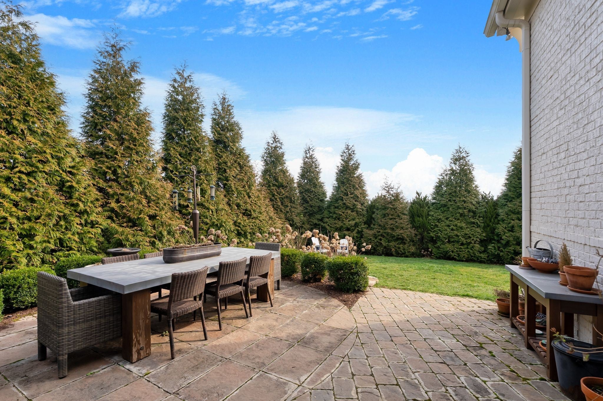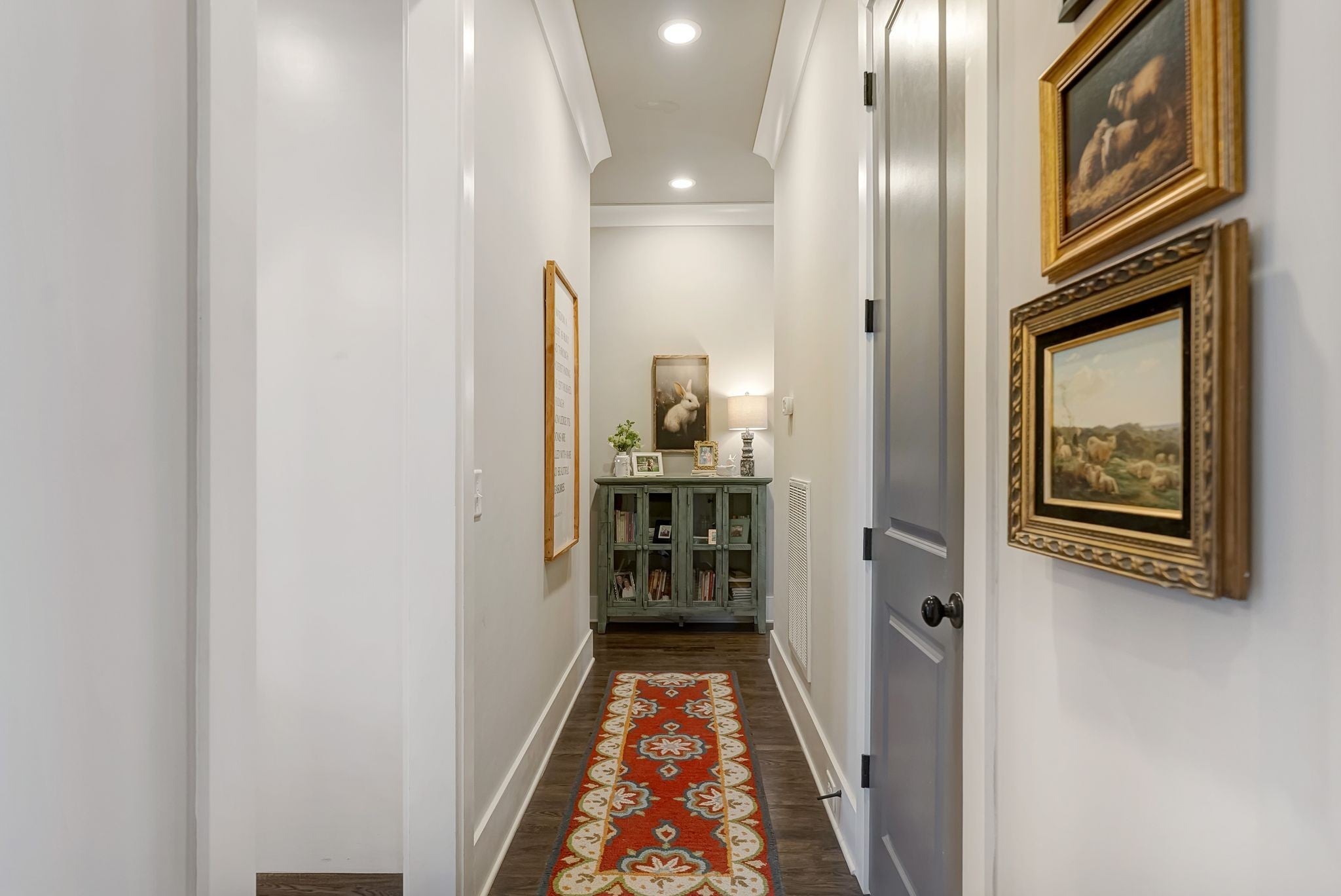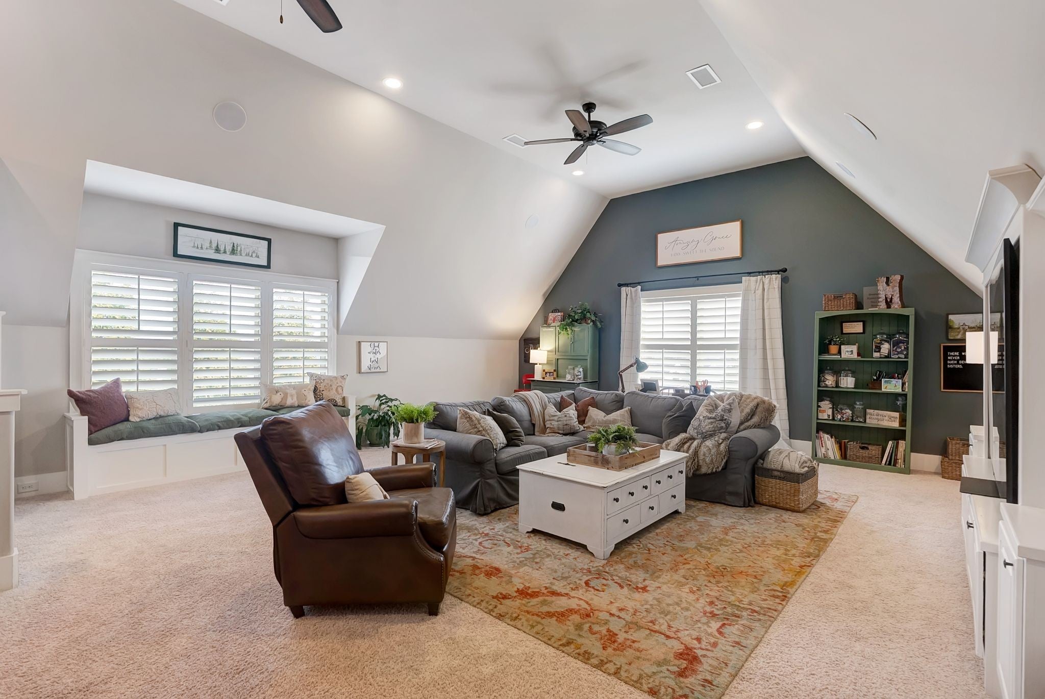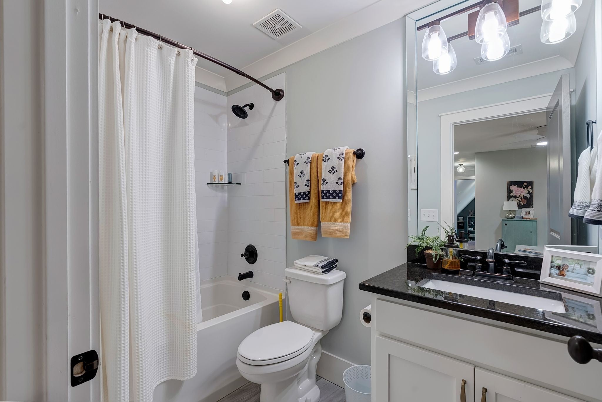 Welcome to timeless elegance in Bridgemore Village, where classic French country architecture meets beautifully curated interiors designed for both everyday living and elegant entertaining. Inside, the home feels serene, calm, and inviting, with gorgeous hardwood floors, custom trim work, designer lighting, and fresh paint and wallpaper throughout. Soaring ceilings, wood beam accents, and a stunning floor-to-ceiling fireplace in the living room create a space that feels both stately and comfortable. The heart of the home is the beautiful kitchen, featuring double ovens and an oversized island perfect for gathering, flowing effortlessly into the main living areas. One of the home’s most memorable spaces is the library-style office, complete with floor-to-ceiling built-in bookcases and a rolling ladder, offering a sophisticated and inspiring place to work or unwind. The thoughtfully designed floor plan includes five bedrooms, with four located on the main level and four en-suite, providing comfort and privacy for family and guests. The primary suite is a true retreat, featuring a peaceful sitting area and a luxurious bathroom with a large soaking tub designed for relaxation. Upstairs, a spacious bonus retreat offers the perfect flex space for a media room, playroom, or additional living area. Step outside to a vaulted screened-in porch featuring its own floor-to-ceiling fireplace, overlooking a backyard that feels like your own private secret garden, surrounded by mature trees that create rare privacy. Elegant yet comfortable, this is a home that feels as beautiful to live in as it is to see.