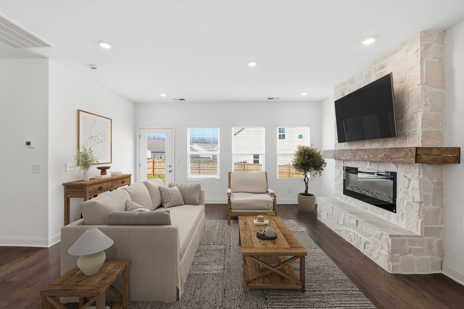 REDUCED! Transferrable builder warranty. Beautifully situated on a corner lot, with fenced back yard, this home features a fenced backyard and a welcoming covered front porch. The open-concept layout offers two bedrooms on the main level and two upstairs, providing a flexible floor plan for a variety of needs. Natural light fills the living spaces, highlighted by a cozy stone fireplace and a spacious kitchen with a large island, quartz countertops, and ample cabinetry. Walk-in closets add generous storage throughout. Upstairs, a loft area creates the perfect space for a rec room or movie night. Located in a charming community with a quaint country feel, yet convenient to Nashville and just minutes from White House shopping, dining, and recreation.