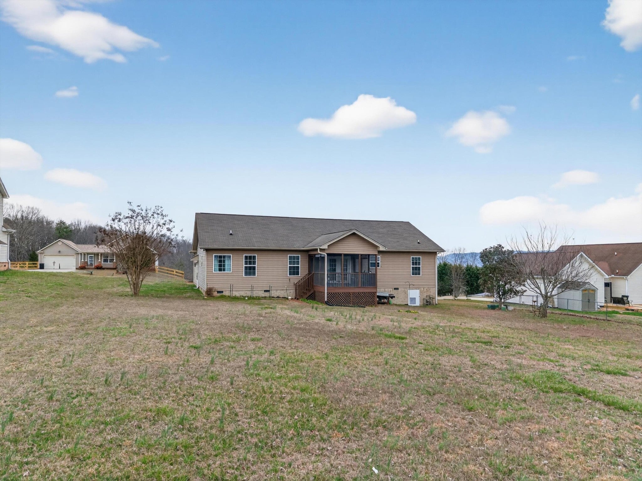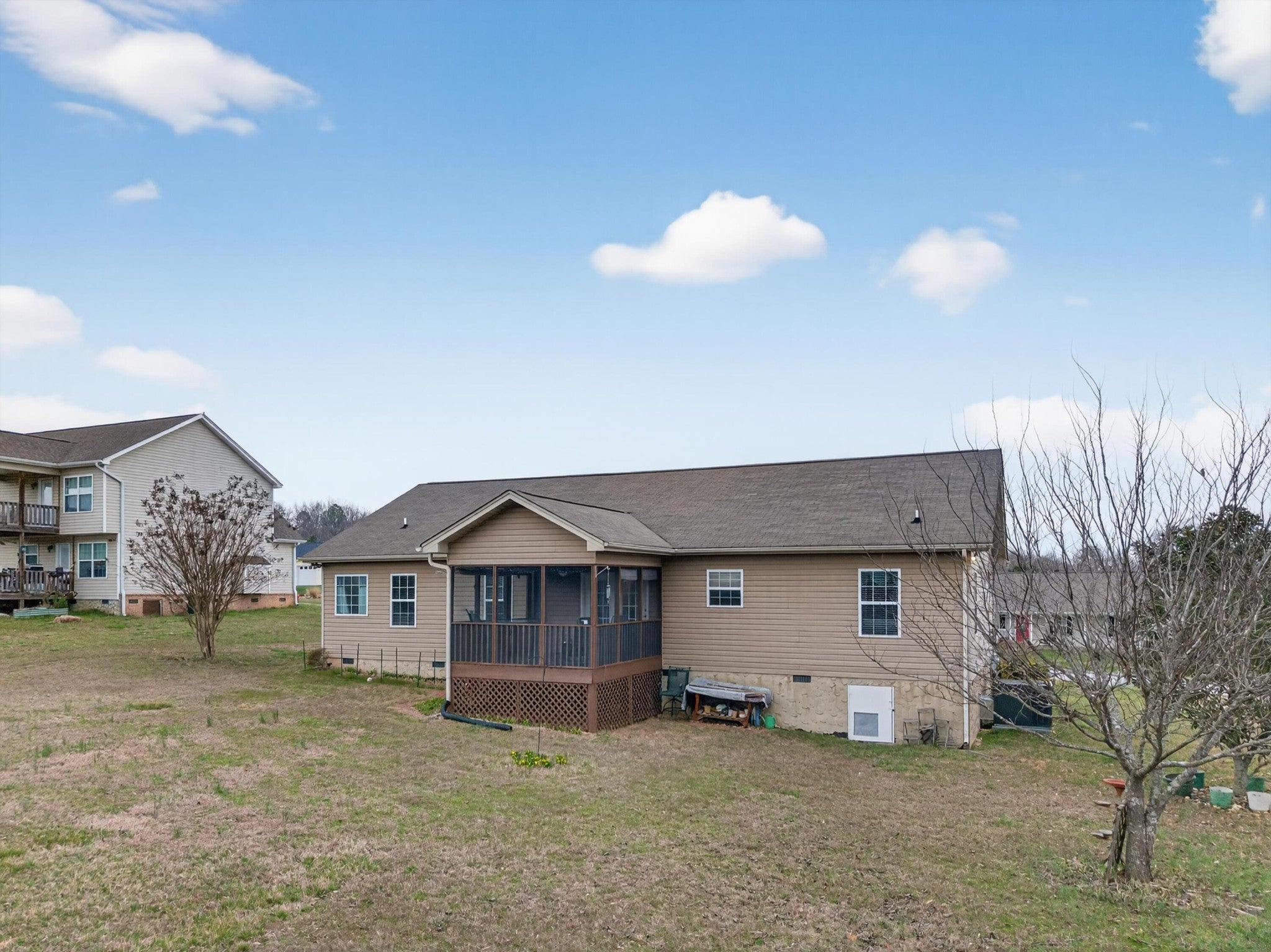 Welcome to 9829 Falcon Crest Drive! This is an extremely well-maintained, custom-built single-level home that perfectly blends comfort, quality, and functionality. The spacious layout offers easy one-level living with a beautifully appointed primary suite. The master bedroom features a large walk-in closet, while the master bath provides a relaxing retreat complete with a soaking tub and a separate walk-in shower. Step outside to enjoy the large, flat backyard. This space is ideal for entertaining, play, gardening, or simply relaxing in your own private outdoor space. The walkable crawlspace provides ample storage room, a rare and highly practical feature for keeping seasonal items and equipment organized. Located in a safe, welcoming neighborhood with multiple law enforcement officers residing in the community, this home offers an added sense of comfort and security. If you're looking for a meticulously cared-for home with modern updates and a fantastic yard in Ooltewah, this one checks all the boxes. **Recent updates include a brand-new HVAC system installed in 2024 and a new built-in microwave, offering added peace of mind for the next owner.