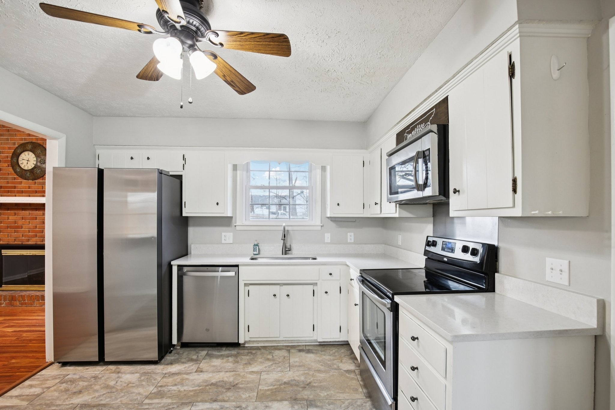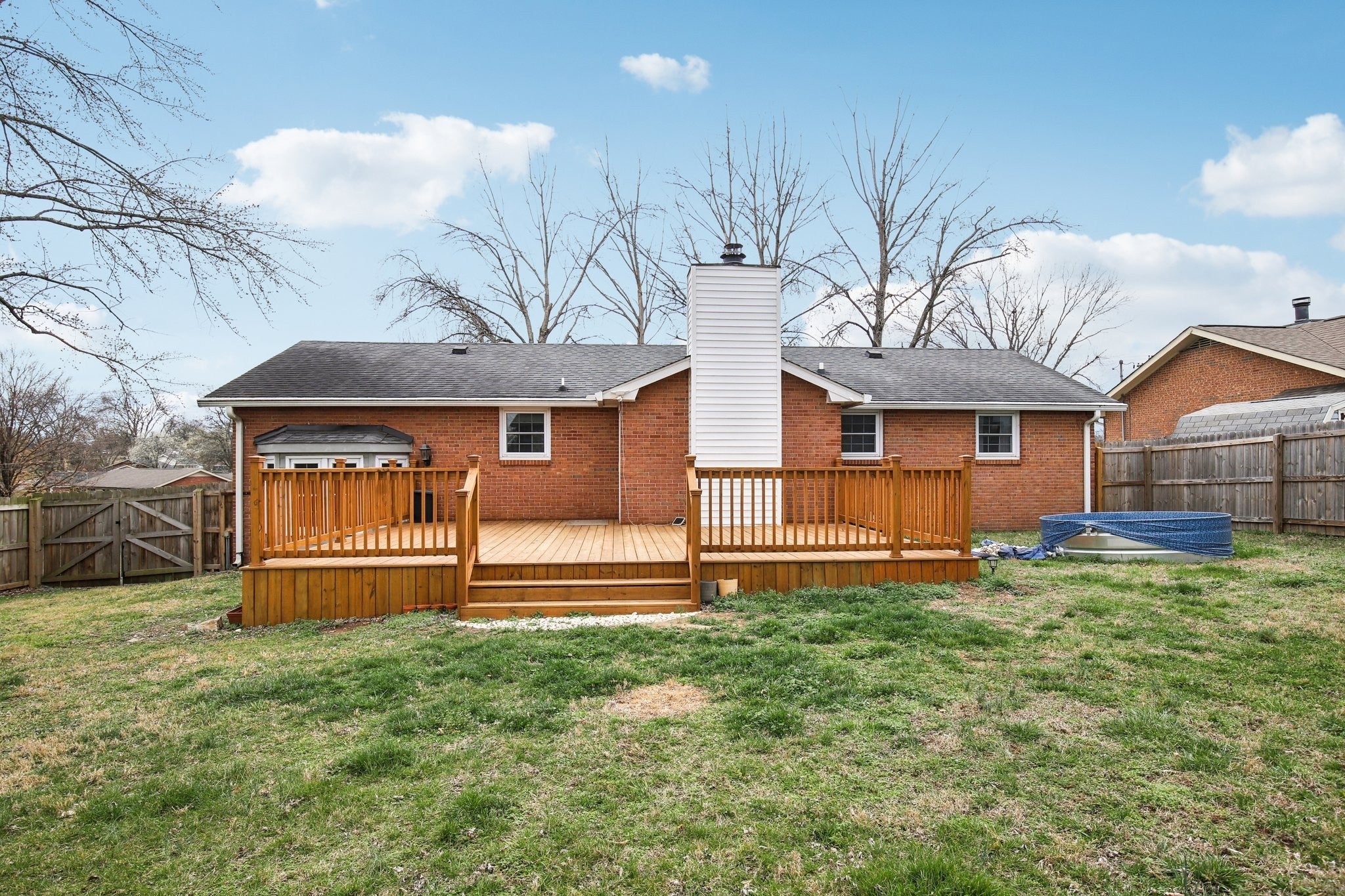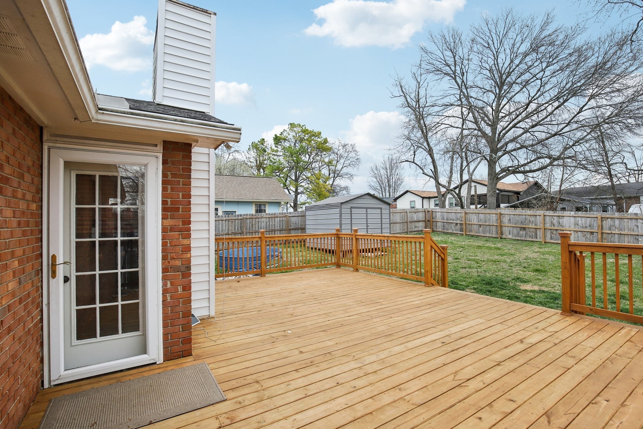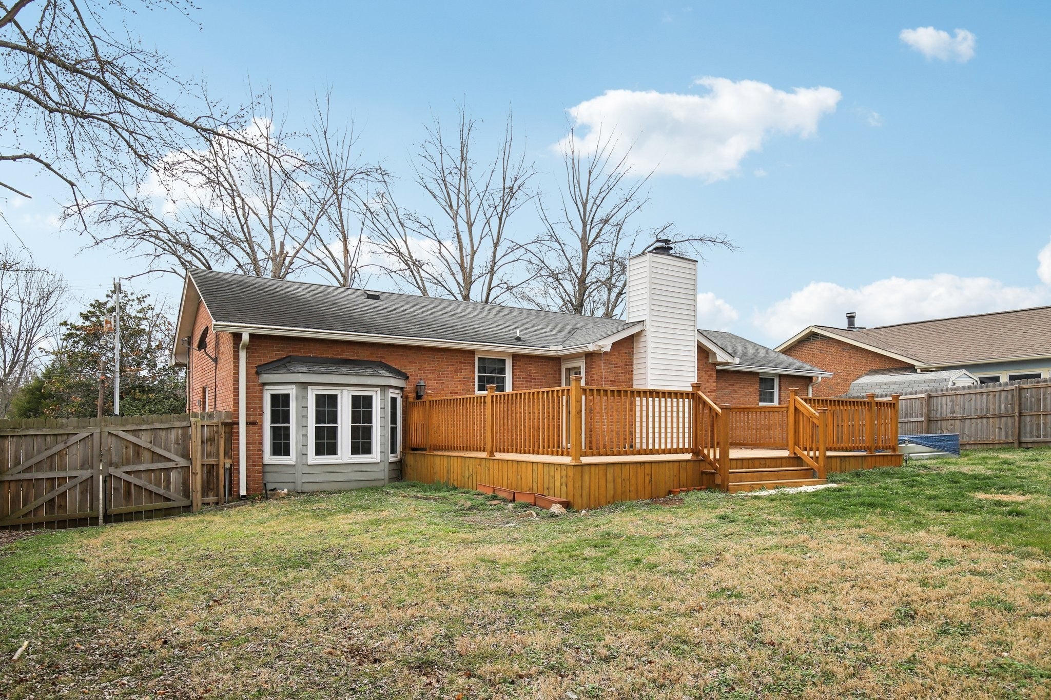 Welcome to this charming 3-bedroom, 2.5-bath home filled with warmth and character! The classic brick exterior and inviting front porch create wonderful curb appeal and set the tone for the comfortable interior. Inside, you'll find beautiful flooring throughout along with elegant crown molding that adds a touch of sophistication. The living room is both cozy and spacious, featuring decorative ceiling beams and a fireplace that creates the perfect gathering space for relaxing evenings or entertaining guests. The bright and open kitchen offers plenty of room for cooking and entertaining while flowing nicely into the main living areas. A versatile bonus room with a bay window and built-in window seat provides the perfect spot for a home office, reading nook, playroom, or additional living space. Out back, enjoy the deck overlooking a large fenced-in backyard, ideal for outdoor gatherings, pets, or simply enjoying your own private outdoor space. A storage shed provides extra room for tools and lawn equipment. HVAC 2024; Water heater approximately 2024; Refrigerator 2024; Kitchen countertops & sink renovated in 2024; West side of roof installed in 2023; East side of roof age is unknown. Plumbing and electrical updates in 2024. Newer windows throughout home! Conveniently located just minutes from a variety of dining and shopping options including Target, Costco, Kohl’s, and Kroger, this home offers the perfect blend of charm, comfort, community, and everyday convenience.
