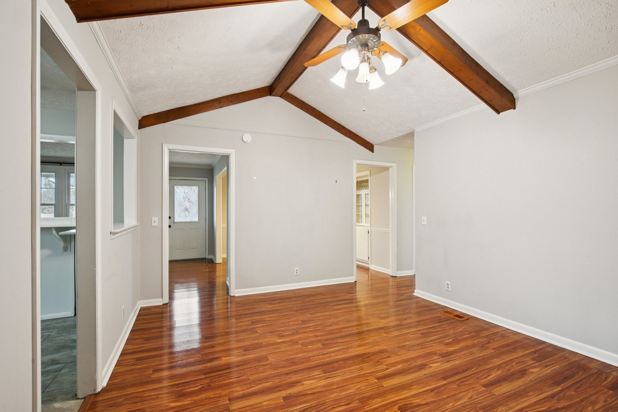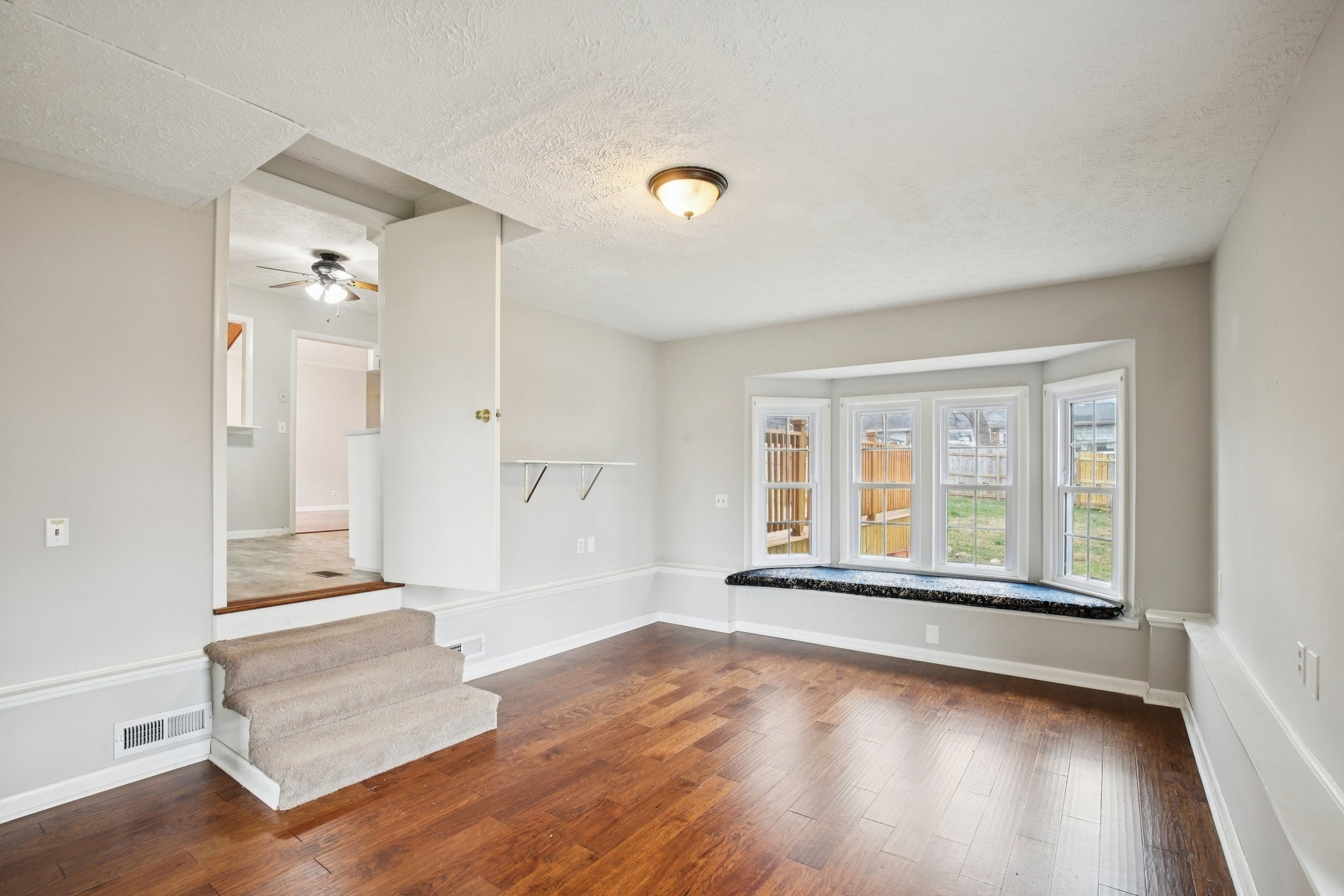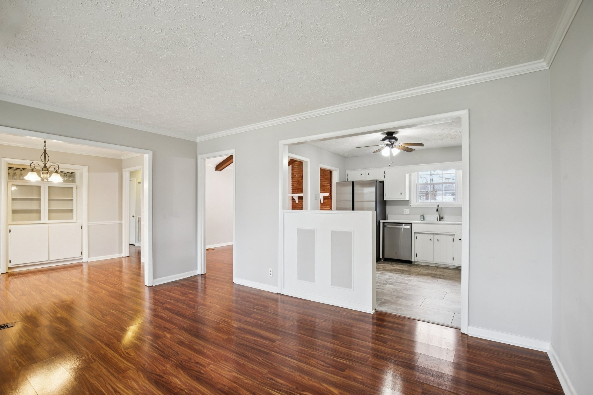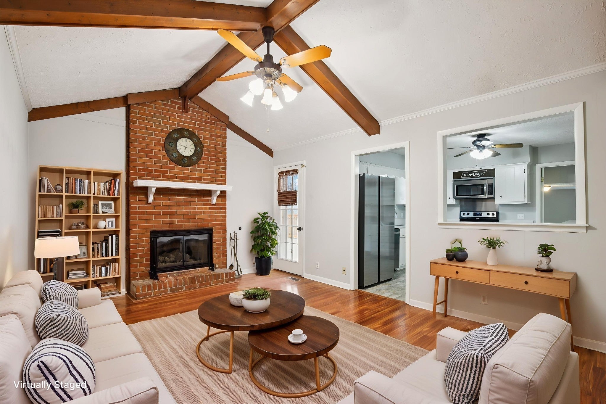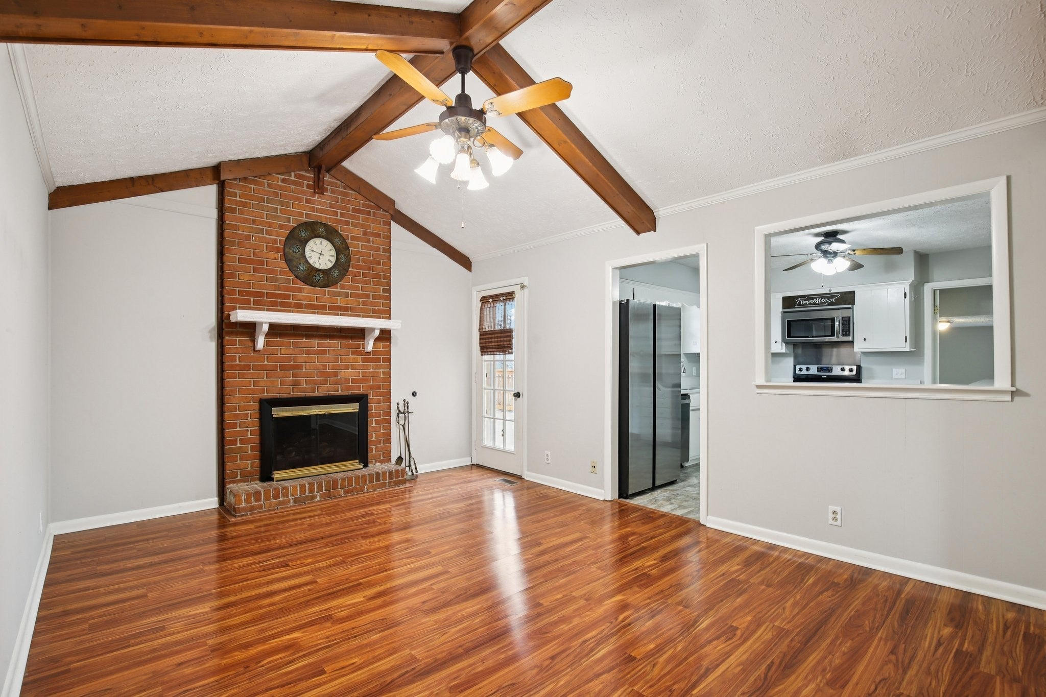 Welcome to this charming 3-bedroom, 2.5-bath home filled with warmth and character! The classic brick exterior and inviting front porch create wonderful curb appeal and set the tone for the comfortable interior. Inside, you'll find beautiful flooring throughout along with elegant crown molding that adds a touch of sophistication. The living room is both cozy and spacious, featuring decorative ceiling beams and a fireplace that creates the perfect gathering space for relaxing evenings or entertaining guests. The bright and open kitchen offers plenty of room for cooking and entertaining while flowing nicely into the main living areas. A versatile bonus room with a bay window and built-in window seat provides the perfect spot for a home office, reading nook, playroom, or additional living space. Out back, enjoy the deck overlooking a large fenced-in backyard, ideal for outdoor gatherings, pets, or simply enjoying your own private outdoor space. A storage shed provides extra room for tools and lawn equipment. HVAC 2024; Water heater approximately 2024; Refrigerator 2024; Kitchen countertops & sink renovated in 2024; West side of roof installed in 2023; East side of roof age is unknown. Plumbing and electrical updates in 2024. Newer windows throughout home! Conveniently located just minutes from a variety of dining and shopping options including Target, Costco, Kohl’s, and Kroger, this home offers the perfect blend of charm, comfort, community, and everyday convenience.
