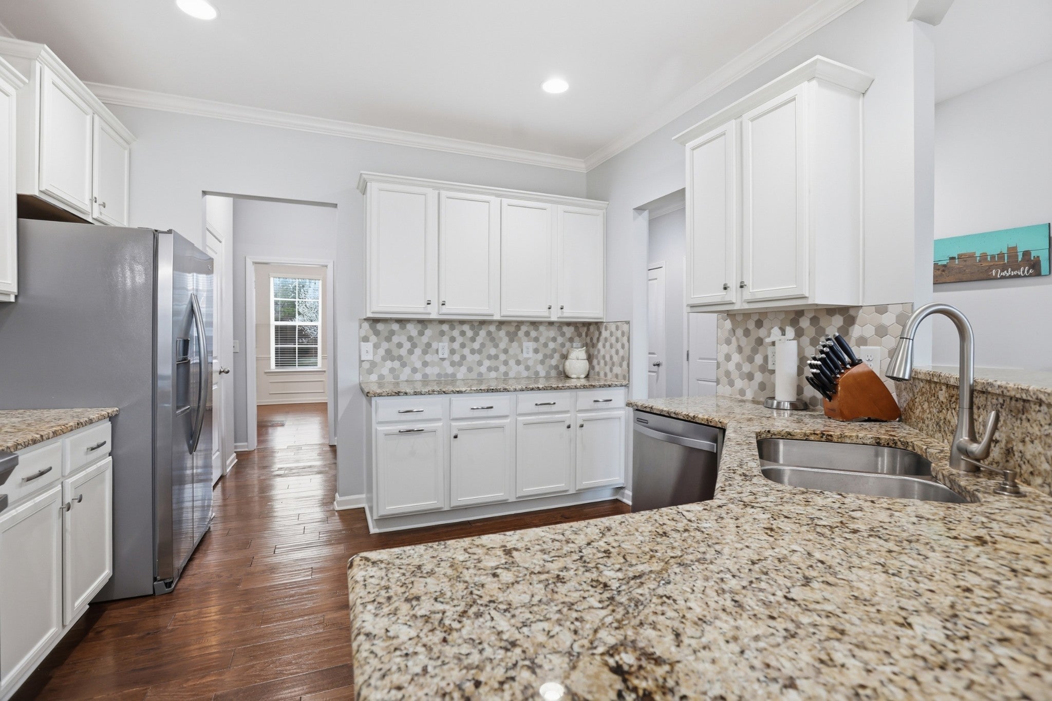 NEW PRICE..It is time for Sellers to move… Located in the peaceful Bridgewater community of Hermitage only 7 min from I-40—just seconds from Mt. Juliet— this beautifully maintained home offers the perfect balance of comfort, convenience, and outdoor living. Step inside to a welcoming foyer that opens to engineered hardwood floors, fresh paint, and brand-new carpet, creating a bright and move-in ready feel throughout. The primary bedroom suite is conveniently located on the main level, providing privacy and easy accessibility. Primary bath includes built in speakers. Downstairs also features a versatile flex space, ideal for a home office, formal dining area, or additional living space. Storage will never be a concern with a huge dedicated storage room and abundant closet space throughout the home. Upstairs, the bonus room is already equipped with a built-in surround sound system, making it the perfect space for movie nights, game days, or entertaining. The real highlight of this home is the exceptional backyard retreat. Enjoy relaxing or hosting guests on the screened-in back porch ready with TV and porch swing bed in place, creating a comfortable entertainment area year-round. Step down to the extended concrete patio, complete with gas grill, fire pit, and hot tub hookups all overlooking a 0.24 acre massive fenced backyard with meticulously maintained grass supported by an irrigation system—perfect for gatherings, pets, or play. Additional features include a 2-car garage with custom shelving and thoughtful upgrades throughout. Residents of Bridgewater enjoy fantastic community amenities including a pool, playground, and scenic walking trails. The location is unbeatable—minutes from all things Providence in Mt. Juliet, offering abundant shopping, dining, parks, Nashville Shores Waterpark, and easy access to Percy Priest Lake and the marina. This home truly offers space, comfort, and an outdoor lifestyle that’s hard to find.