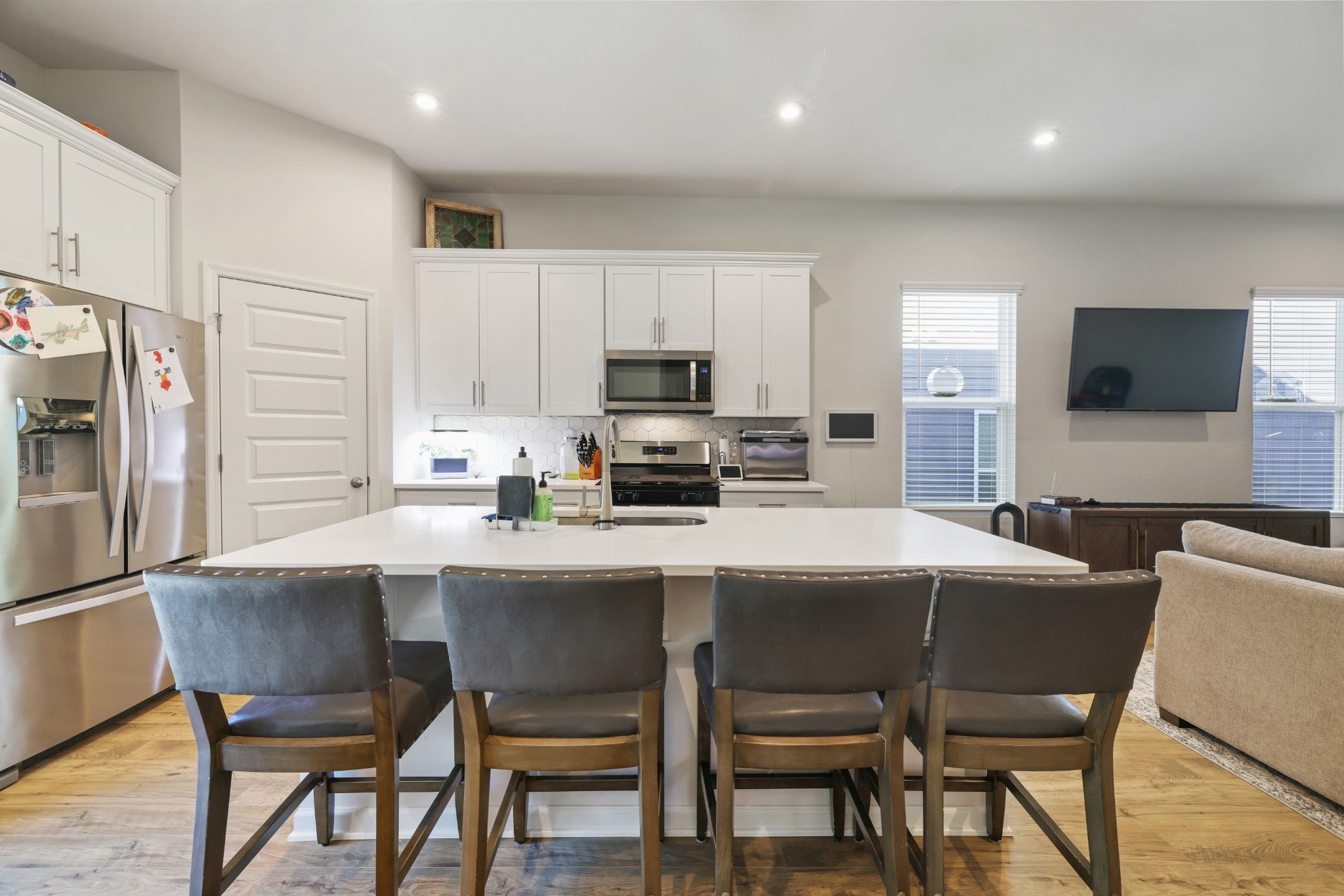 Enjoy low-maintenance living in this beautiful home featuring a primary suite, guest bedroom, and two full baths all on the main level. Upstairs offers an oversized third bedroom with a full bath—perfect for guests or a bonus space! The open floor plan includes a spacious kitchen with an island, pantry, and stainless steel appliances, plus a covered porch and privacy-fenced backyard for outdoor enjoyment. Loaded with upgrades throughout. Resort-style amenities include a clubhouse, pool, state-of-the-art fitness center, sidewalks, and more! Up to 1% lender credit on the loan amount when buyer uses Seller's Preferred Lender.