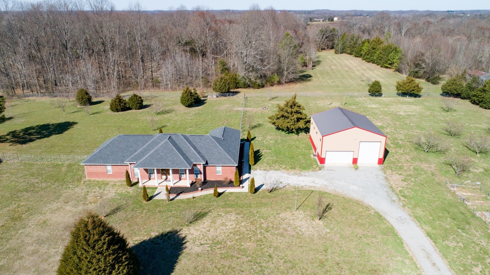 This is an absolutely beautiful all brick 5-bedroom, 3 full bath home serenely located on 10 acres with a detached garage! 2,798 sq ft with tile throughout! Crown molding in most rooms. Great Room has vaulted ceilings & direct access to the covered back porch. Gorgeous kitchen with granite countertops, stove w/double ovens and a huge walk-in pantry! Detached 40x30 garage, including 16 ft high side walls, 14x11 RV roll-up door, front & back garage roll-up doors, 30 amp plug on the RV side and side windows. Mostly level acreage with pastureland, some wooded area & a fruit orchard with peach trees, apple, pear trees, plum trees and cherry trees! There are also grape vines and wild blackberries!