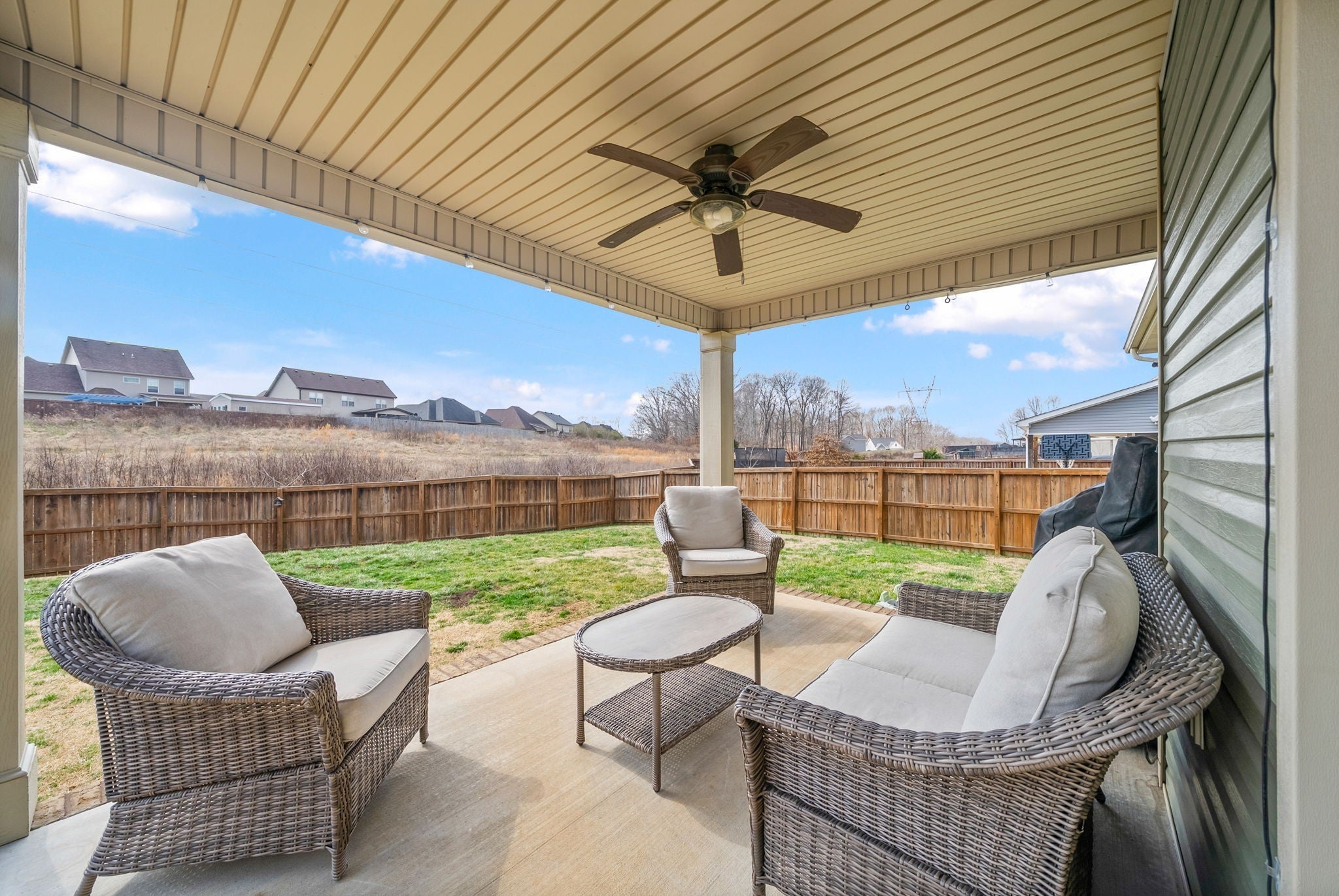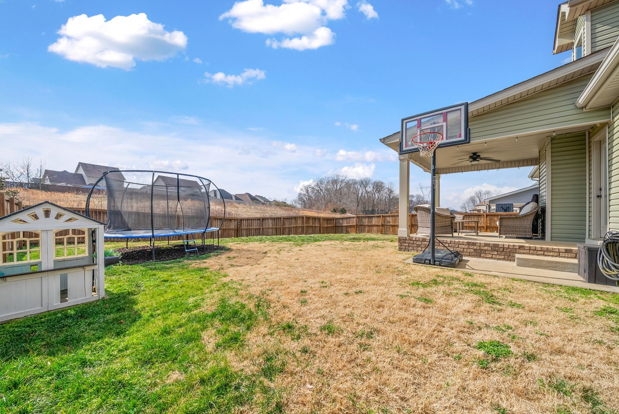 Welcome to 349 Rye Dr in the desirable Bentley Meadows subdivision. This well-designed home offers an open and spacious floor plan with the owner’s suite conveniently located on the main level. The main living areas feature beautiful wood flooring, with tile in the wet areas and comfortable carpet in the bedrooms and bonus space. The home includes a separate formal dining room, perfect for hosting family dinners or special gatherings. Upstairs provides additional spacious living areas ideal for recreation, hobbies, or guests. Step outside to enjoy a privacy-fenced backyard with a covered patio and outdoor ceiling fan—perfect for relaxing or entertaining guests of all ages. Located in a neighborhood with sidewalks and underground utilities, this home combines comfort, functionality, and community charm.